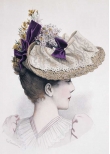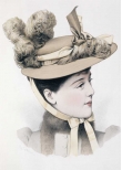 Открытки представляют иллюстрации раскрашенных гравюр дамских шляп из модных журналов «Модистка» и «Вестник моды для модисток», издававшихся в конце XIX столетия в Санкт-Петербурге.