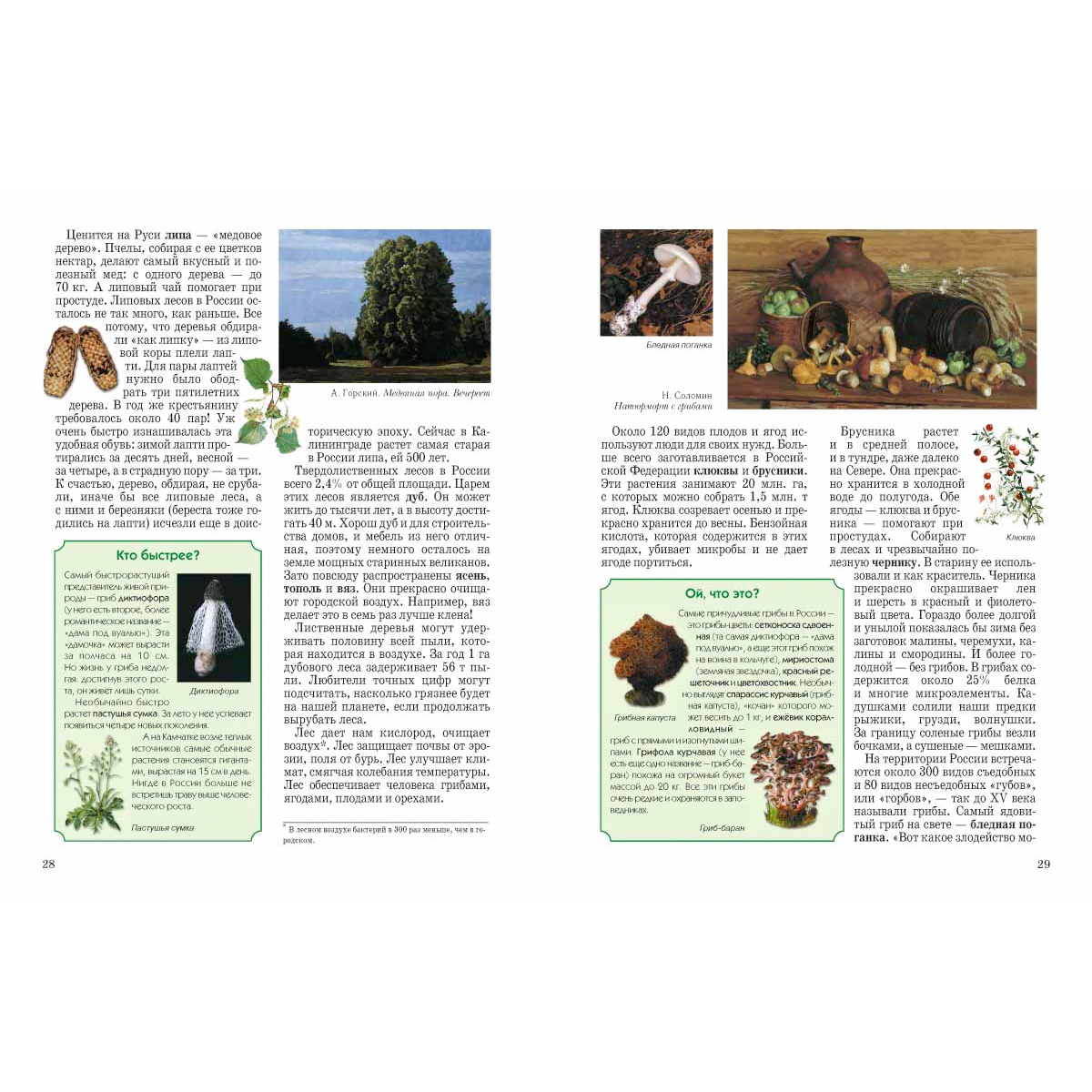 Природа нашей страны вдохновила многих русских художников на создание великих произведений, так что именно полотна живописцев украсили эту книгу. В издании есть и фотографии, которые так или иначе иллюстрируют главную мысль автора – тратить ресурсы природы надо с умом, заботясь о завтрашнем дне, оставляя потомкам здоровую, а не больную планету. Содержание Природа — живая 2 Северная страна 8 Живая и мертвая вода 16 Зеленое море 24 «Мы — одной крови… » 34 Природа — Родина — народ 42 Художники - А. Афонин, М. Боскин, Л. Бродская, А. Васнецов, М. Вишняк, Е. Волков, А. Герасимов, А. Горский, Г. Гуркин, В. Казанцев, П. Корин, А. Куинджи, И. Левитан, И. Лысенко, Г. Мясоедов, И. Прянишников, В. Поленов, Н. Рерих, Н. Соломин, Ф. Сычков, А. Шильдер, И. Шишкин. В. Щербаков и др об авторе Колпакова Ольга Валериевна родилась в Алтайском крае. Живет и работает в Екатеринбурге. Закончила Уральский государственный университет, факультет журналистики. Работала преподавателем масс-медиа в педагогической гимназии № 116 (г. Екатеринбург), редактором первого в России журнала «для любознательных детей и заботливых родителей», публикующего игры и методики для раннего развития и обучения детей «Витаминка». За разработку и осуществление проекта обучающего издания для малышей награждена благодарственной грамотой губернатора Свердловской области и премией «Профессиональный успех» (журнал «Космополитен»). Как начинающий автор в 1990 году была поощрена стипендией губернатора области и отделения Союза писателей Свердловской области. Является составителем и одним из авторов серии «Умные игры» (издательство «У-Фактория»), автором развивающей серии «Игра – дело серьезное» (по заказу губернатора Свердловской области и Федерации детских организаций), автором развивающих игр «Тайны Екатеринбурга» (по заказу администрации города) и «Святые места Урала» (по заказу Екатеринбургской епархии). Публикуется в литературных сборниках и в периодических изданиях («Костер», «Кукумбер», «Почитай-ка», «Ералаш», «Спокойной ночи, малыши», «Ежик» и др.). Первая книга выпущена в издательстве «Дрофа» в 2001 году. В данный момент является редактором газеты для детей «Тихая минутка», альманаха «Летучий кораблик», ведущей рубрики «Дети» в журнале «Будьте счастливы» и активным автором издательства «Белый город». |