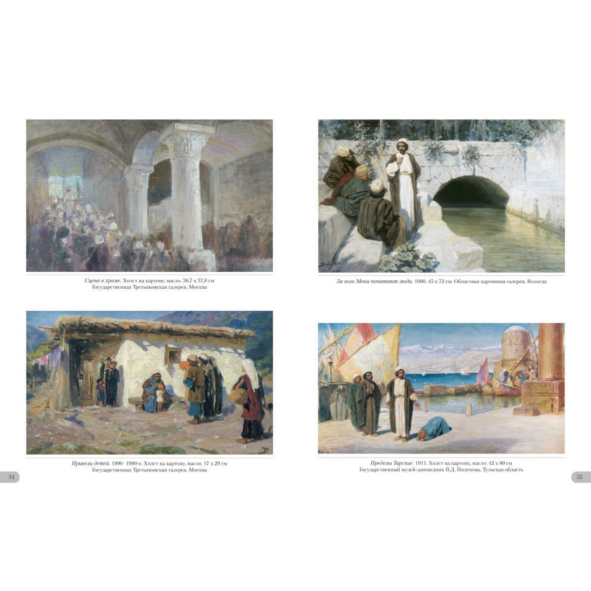 - Список художников и их полотен или именной указатель (если есть) УКАЗАТЕЛЬ ПРОИЗВЕДЕНИЙ «Возвратился в Галилею в силе духа». 1890–1900е 46 «Поселился в капернауме Приморском». 1907–1908 40 Был в пустыне. 1909 53 В Назарете. 1882 24–25 В Палестине. 1899 7 Возвестила радость плачущим. 1899–1909 68–69 Воскрешение дочери Иаира. 1870–1871 28 Воскрешение дочери Иаира. 1871 30–31 Генисаретское озеро 41 Генисаретское озеро. 1880е 38–39 Генисаретское озеро. 1899 41 Голгофа 66 Голгофа («Стояли в дали») 64–65 Голова фарисея. Этюд. 1884 59 Дорога в Назарет 8 Дочь Пилата 67 За кого Меня почитают люди. 1900 55 И был там. 1890–1900е 26 Иерихонский поток. 1882 5 Иерусалим с западной стороны. Яффские ворота и цитадель. Этюд. 1882 6–7 Избиение первенцев египетских. 1865 4 Иоанн и Иаков. 1900е 27 Исполнялся премудрости. 1896–1909 9 Кана. 1883 23 Левий Матфей. 1900е 52 Марфа приняла Его в дом свой. 1890–1900е 60 Мертвое море. 1882 5 Мечты (На горе). 1890–1900е 48 Мечты. 1894 49 Мечты. Этюд. 1894 47 На Тивериадском (Генисаретском) озере. 1888 44–45 Отречение Петра 66 Палестина. Нагорная проповедь. 1890–1909 22 Палестинский пейзаж. 1880е 42 Палестинский этюд. Камни на Генисаретском озере. 1887 37 Повинен в смерти. 1906 62–63 Пошла в Нагорную страну. 1894 35 Пределы Тирские. 1911 55 Привели детей. 1890–1900е 54 Сидящий Христос. Этюд. 1888 58 Среди учителей. 1896 10–11 Среди учителей. Эскиз. 1890–1900е 9 Сцена в храме 54 Тайная вечеря 61 Тивериада. 1882 6 Тивериадское (Генисаретское) озеро. 1881–1882 43 Тивериадское озеро 43 У подножия горы 23 Учитель, где Ты живешь? 1900–1910е 53 Христос в Гефсиманском саду. 1890–1900е 61 Христос и грешница (Кто без греха?). 1888 56–57 Христос и Мария Магдалина 34 Христос на берегу Генисаретского озера. 1890е 36–37 Христос на Генисаретском озере. 1910е 27 Христос Спаситель 70