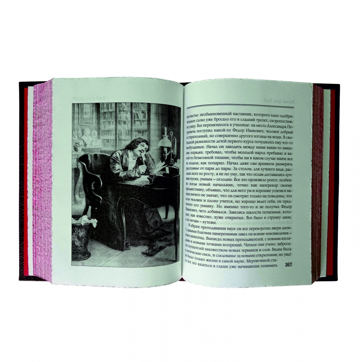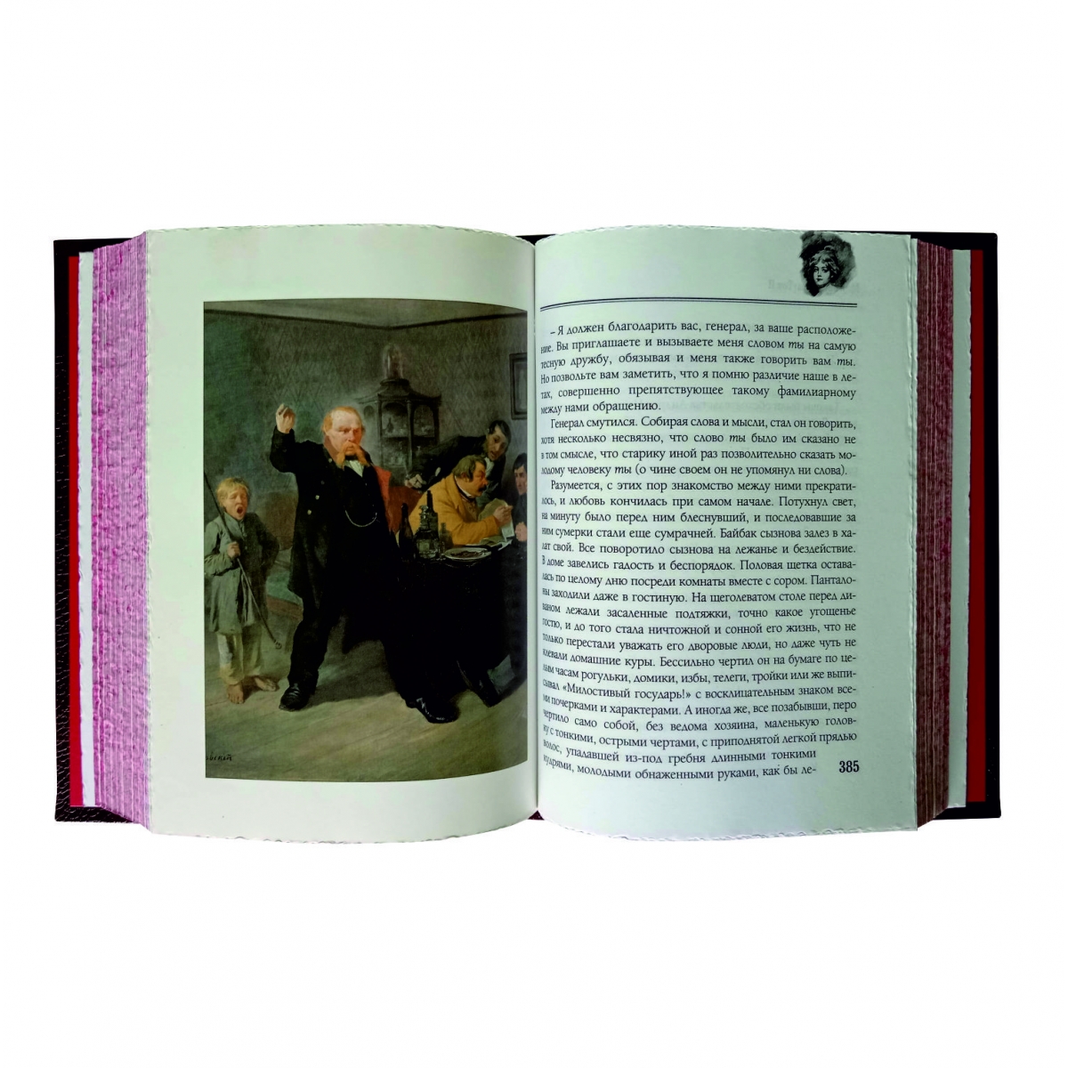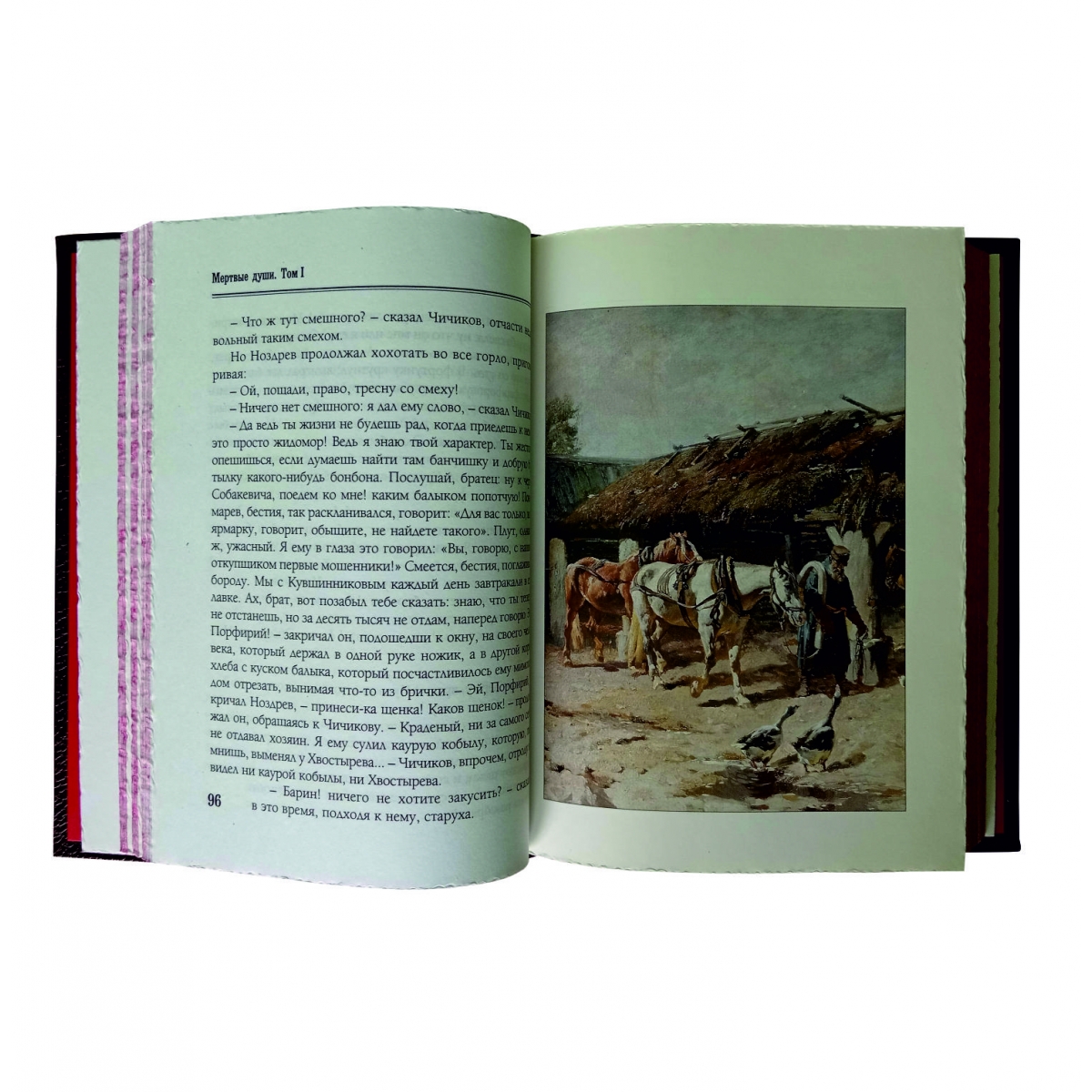 Французский цельнокожаный переплет ручной работы на шнурах. Натуральная переплетная кожа. Форзац составной на кожаной слизуре. Дизайнерская бумага. Каптал двойной наборный, ручное плетение из шелковых нитей. Обрез торшонированный. Ляссе шелковое. Тиснение полиграфической фольгой. «Мертвые души» – великое творение Гоголя, вошедшее в золотой фонд русской и мировой литературы. Издание подготовлено к 200-летнему юбилею со дня рождения писателя. В книгу включены статьи о творчестве Н.В. Гоголя, современные комментарии, которые дополняют статьи Н. Полевого и К. Аксакова, которые хорошо знали писателя и чьи статьи по праву вошли в золотой фонд русской литературной критики и публицистики. В качестве иллюстраций к книге тщательным образом подобраны работы А. Агина, А. Афанасьева, Н. Бажина, Е. Бернардского, П. Боклевского, Ф. Брокгауза, В. Быстренина, Г. Гагарина, М. Далькевича, М. Добужинского, К. Зеленцова, А. Иванова, П. Ковалевского, В.Е. Маковского, К. Маковского, И. Маньковского, А. Михайлова, С. Мурзина, Н. Пирогова, А. Попова, Е. Самокиш-Судковской, Н. Сверчкова, С. Светославского, С. Соломко, Г. Сороки, К. Трутовского, Р. Френца, Н. Хохрикова, А. Шрейера. Высокое качество подобранных иллюстраций и великолепное полиграфическое исполнение книги – традиционная «визитная карточка» нашего издательства. Данное издание будет интересно всем любителям великой русской классической литературы и творчества Н.В. Гоголя. Благодаря тому, что в книгу включены современные комментарии и творческая история произведений, а также статьи о жизни и творчестве Гоголя, принадлежащие перу лучших критиков классического периода русской литературы, она будет полезна школьникам для подготовки к урокам по литературе и русскому языку, к сочинениям, а также студентам для подготовки к семинарским занятиям. Автор комментариев – доктор филологических наук, профессор МГУ, знаток и исследователь творчества Н.В. Гоголя – В.А. Воропаев. Книга предназначена для широкого круга читателей.
