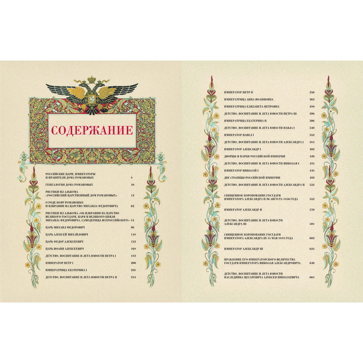 Французский цельнокожаный переплет ручной работы на шнурах. Натуральная переплетная кожа. Форзац составной на кожаной слизуре. Дизайнерская бумага. Каптал двойной наборный, ручное плетение из шелковых нитей. Обрез торшонированный золотой фольгой. Ляссе шелковое. Тиснение полиграфической фольгой. Ювелирная накладка - художественное литье, эмаль. Ценность книги в том, что автор современник Александра III и Николая II, писатель, историк, биограф, виднейший публицист своего времени И.Н. Божерянов. Текст печатается в соответствии с современными орфографическими нормами. Издание раскрывает историю России через призму царствования дома Романовых на фоне тщательно подобранных иллюстраций (живопись, старинные гравюры, предметы интерьера, памятники архитектуры, реликвии, археологические находки и много других интересных материалов). Отделка бархатом, накладка корона Российской империи. Драгоценное оформление драгоценного содержания.