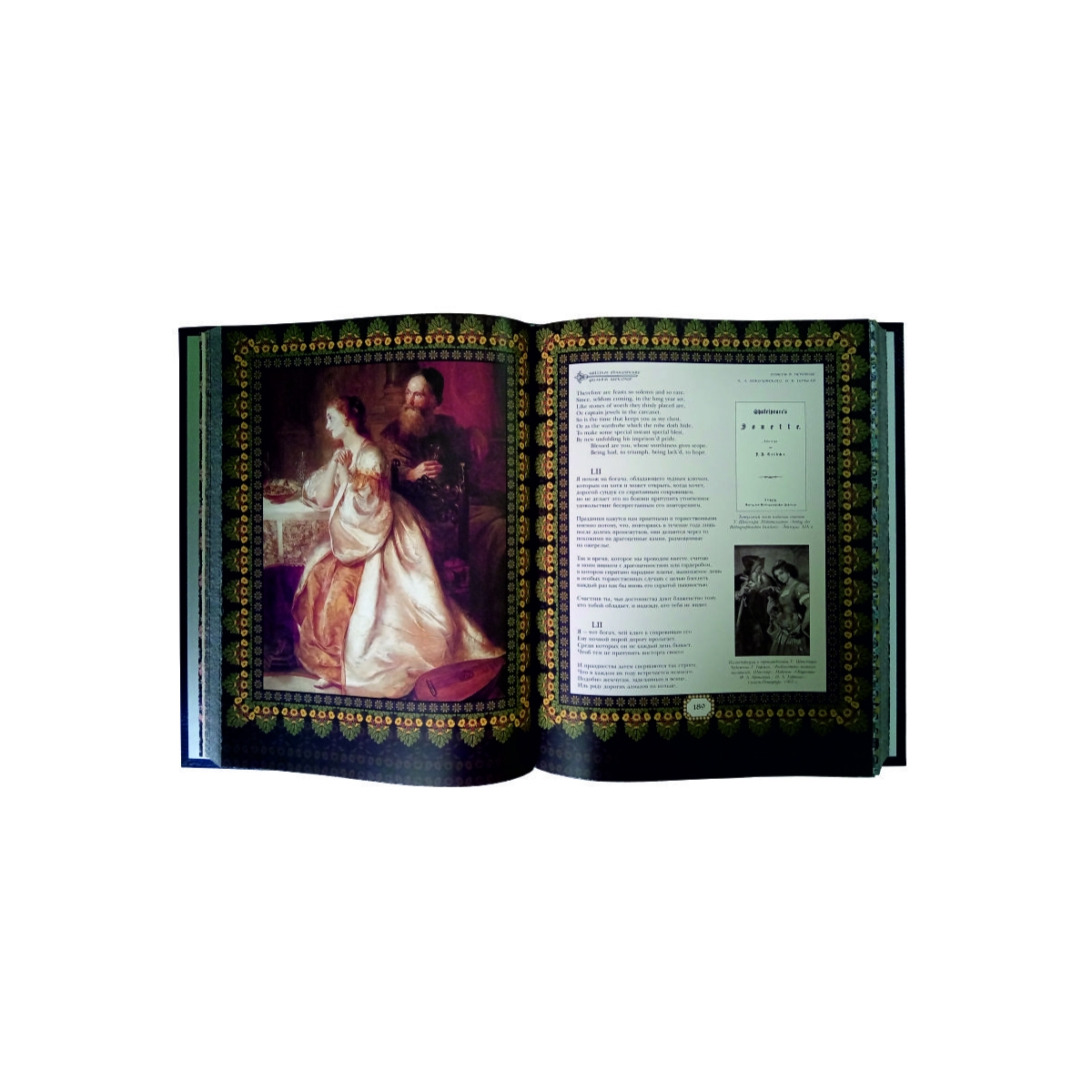 Шекспир – драматург охватил своим гением весь мир, представил его в виде театра, в котором все актеры. И тем не менее, Шекспир прежде всего поэт. Таково его первопризвание: драматургом он стал по необходимости, так сложилась его жизнь. И как бы ни была грандиозна работа Мастера, суть его гения – в произведениях, написанных в первые годы не отягощенной творческой свободы. Полторы сотни сонетов Шекспира как раз и есть эта составляющая его наследия. Это издание сонетов Шекспира вряд ли удастся превзойти. Кроме сонетов (несколько лучших вариантов перевода на русский язык (М.И. Чайковский, Н.В. Гербель), в том числе прозаический перевод, исключающий неизбежные искажения смысла, английский текст и факсимильные воспроизведения первого издания XVII века), в книгу включены приложения: завещание Уильяма Шекспира (на русском и английском языках, в том числе и факсимиле), статьи о сонетах, предисловия из лучших дореволюционных изданий, подробные примечания к каждому сонету, указатель первых строк сонетов (на русском и английском языках), предметный, именной, географический указатели, хронология жизни и творчества Шекспира. 1 200 иллюстраций включают в себя почти все известные портреты Шекспира, портреты его современников, иллюстрации из лучших изданий, репродукции живописи прерафаэлитов, факсимиле первых изданий XVII века…