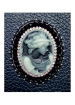 Оформление переплёта дополнено тиснением полиграфической фольгой. Декоративная накладка ручной работы выполнена из бисера, страз и шпинеля.