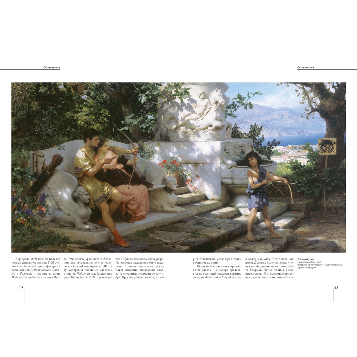 Почти каждая из картин Г. Семирадского будоражила умы людей, привлекала внимание художников, критиков и любителей искусства – и не только в нашей стране, но и за рубежом. За полотно «Светочи Нерона» Императорская Академия Художеств присудила Семирадскому звание профессора, а французское правительство наградило его кавалерским орденом Почетного легиона. Тогда же он получил дипломы на звание члена от берлинской, стокгольмской и римской академий, флорентийская же Академия оказала ему честь просьбой прислать ей собственной работы его портрет для исторического собрания портретов знаменитых художников в галерее Уффици. В данной работе собраны наиболее значимые работы мастера – полотна, по поводу которых скрещивали свои «шпаги» его современники.