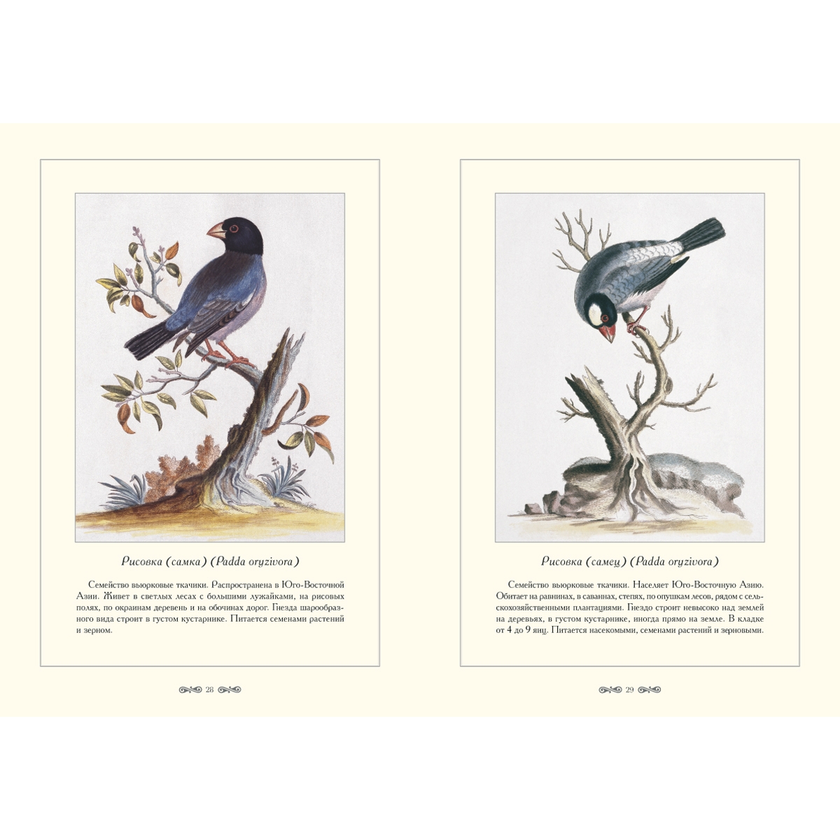 Селигманн старался показать каждого пернатого в естественной среде обитания, домысливая ландшафт, отсутствовавший в оригинальном изображении (как правило, акварели). После исполнения этой работы Иоганн Михаэль Селигманн приобрел общеевропейскую известность.
