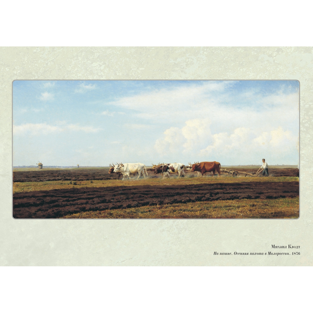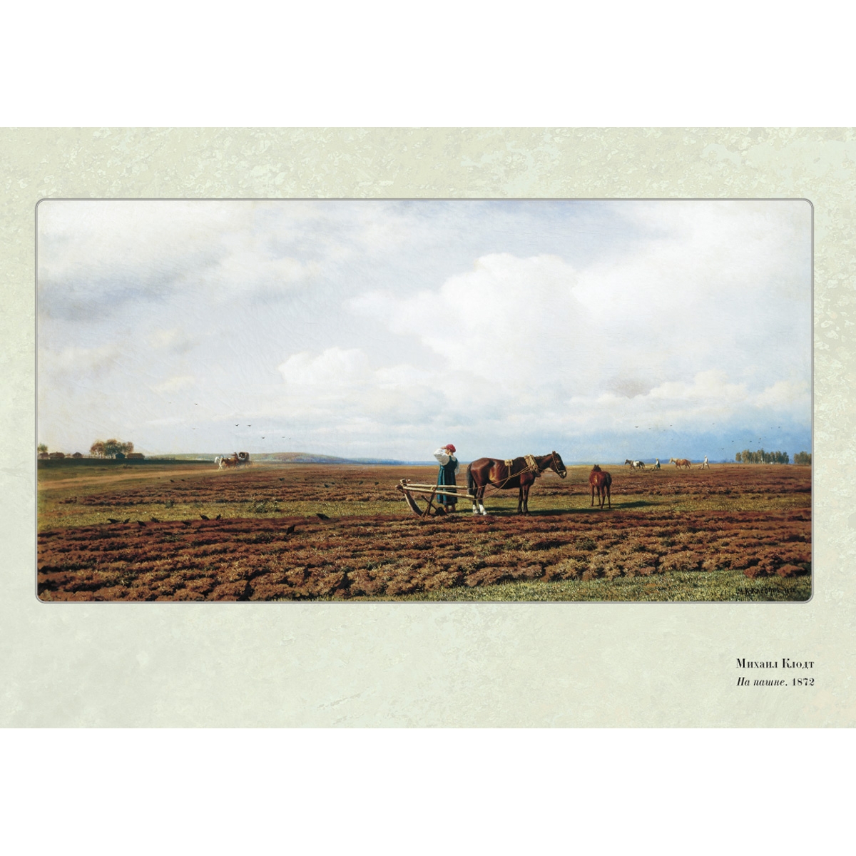 М.К. Клодт родился в Санкт-Петербурге и с детства впитывал творческий дух, свойственный членам его художественно одаренного семейства: его дядей был знаменитый скульптор П.К. Клодт. Художник много путешествует по России, плодотворно работает, воспевая в своих полотнах красоту российских просторов. Для его работ характерны четкий рисунок, стройность композиции и эпическая широта. Он был одним из учредителей Товарищества передвижных художественных выставок, и это оказало влияние на его творчество: в нем появились темы и образы крестьянской России. Его нередко сравнивают с Венециановым – полотна обоих живописцев дают любителям пейзажной живописи «ощущение радости крестьянского труда, плодовитой щедрости природы».