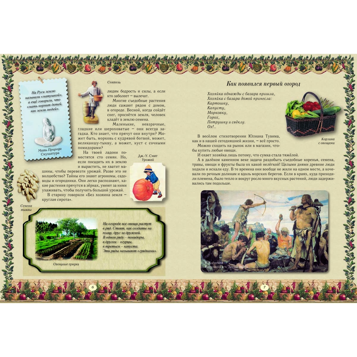 В книге «Семь ворот на огород» вы найдёте много интересных историй, сказок, легенд о хорошо всем знакомых огородных растениях, а также познакомитесь с экзотическими «заморскими» овощами. Старинные ботанические иллюстрации, древние фрески и мозаики, репродукции картин русских и зарубежных мастеров, а также современные фотографии сделают нашу «овощную грядку» цветной и яркой.
