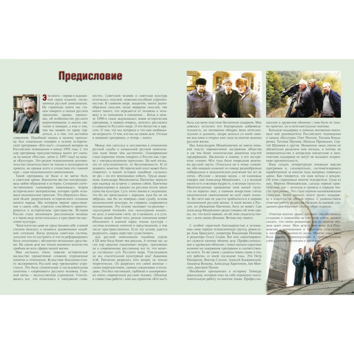 Данное издание – литературная версия программы Ф. Разумовского «Кто мы?», выходящей сначала на Российском телевидении (1991 г.), а затем (с 1997 г.) – на канале «Культура». Это первая книга из серии книг, посвященных русской цивилизации. Автор книги, известный историк и телеведущий Ф. Разумовский, рассуждает об особенностях русского национального самосознания. Вследствие большевистского «эксперимента» Русский мир оказался на краю гибели. Что мы потеряли и что нам необходимо возродить, кто мы на самом деле – вот главные темы данного издания.
