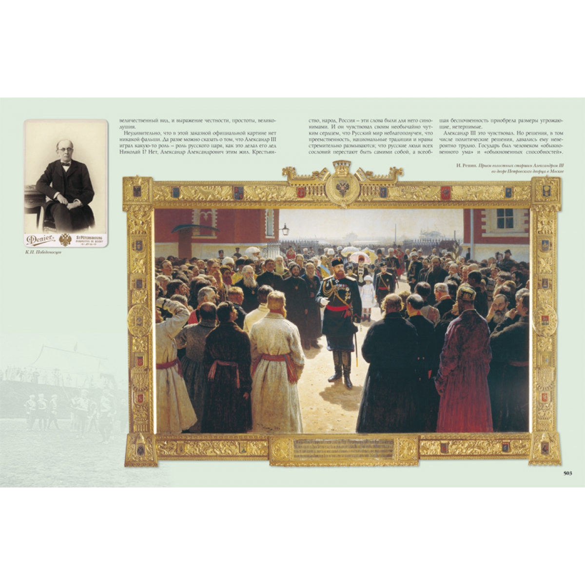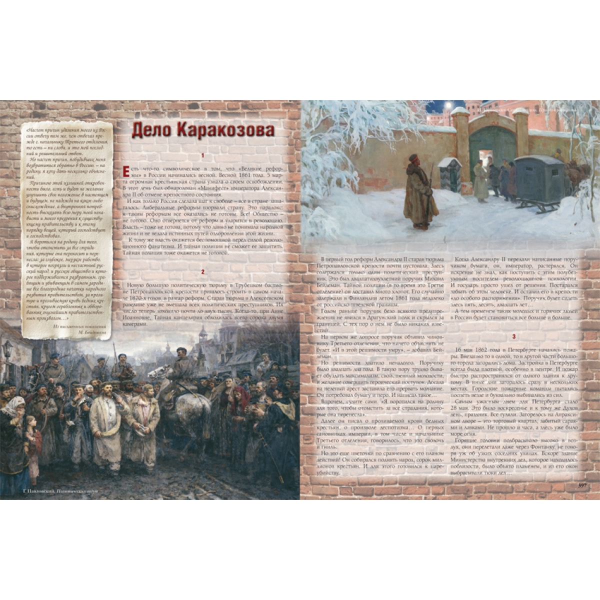 Вопросы, поднимающиеся в книге, – испытание русского человека пространством, занимающим 1/7 часть мира, наши государственные идеи и символы, реформы по-русски, история русской тайной полиции и политического сыска, очерки из истории русского самопознания, – нужны людям, интересующимся русской историей, Русским миром. Вставки на полях книги – выписки из подлинных исторических документов и литературных источников – дополняют картины событий, так ярко и полно представленных автором. Издание великолепно проиллюстрировано более 800 картин русских и зарубежных художников, редкими фотоснимками.
