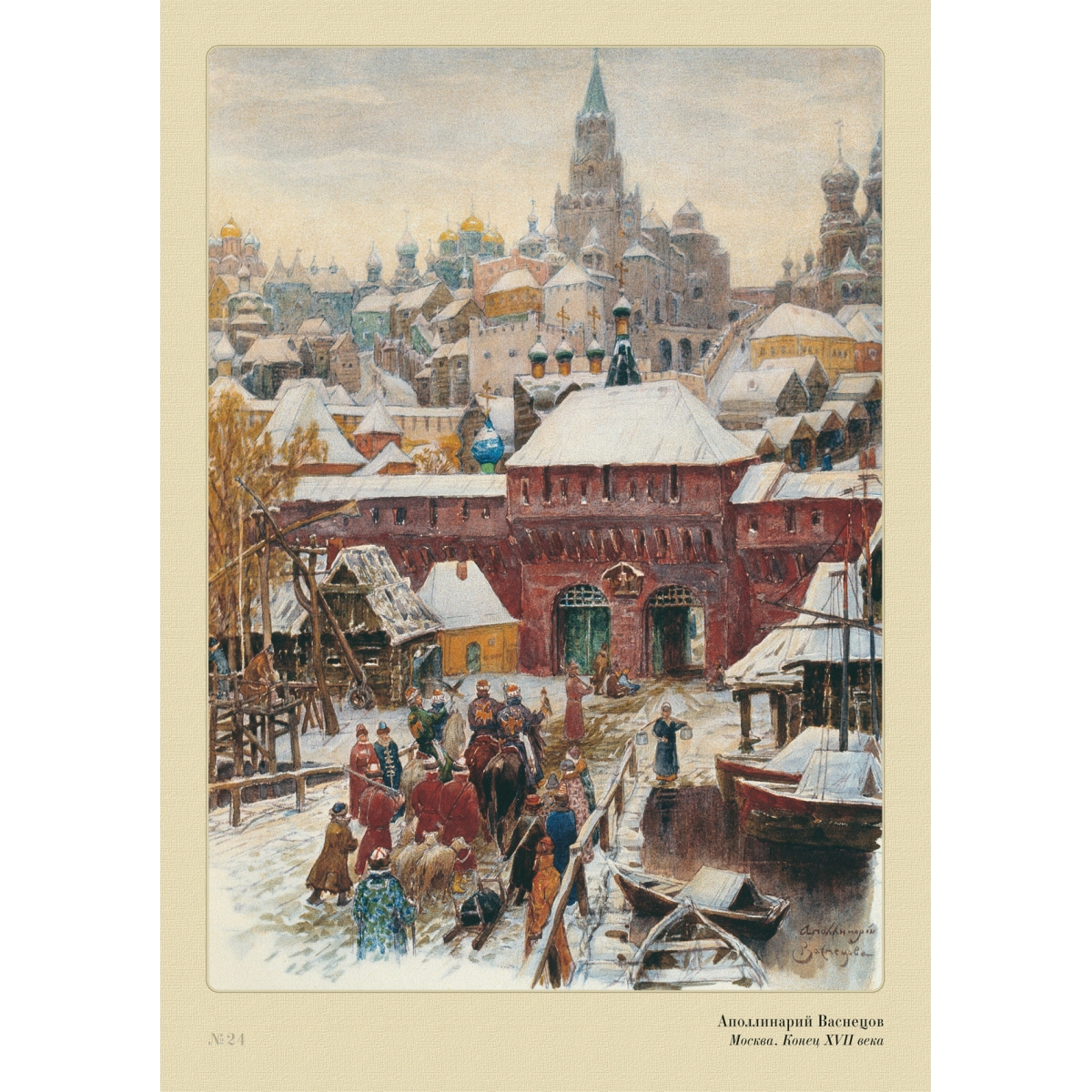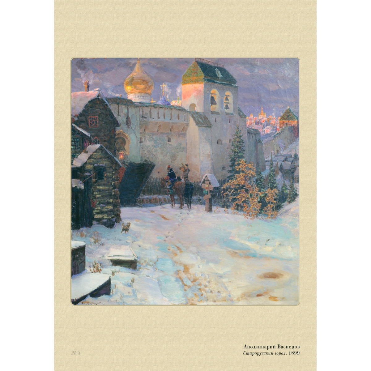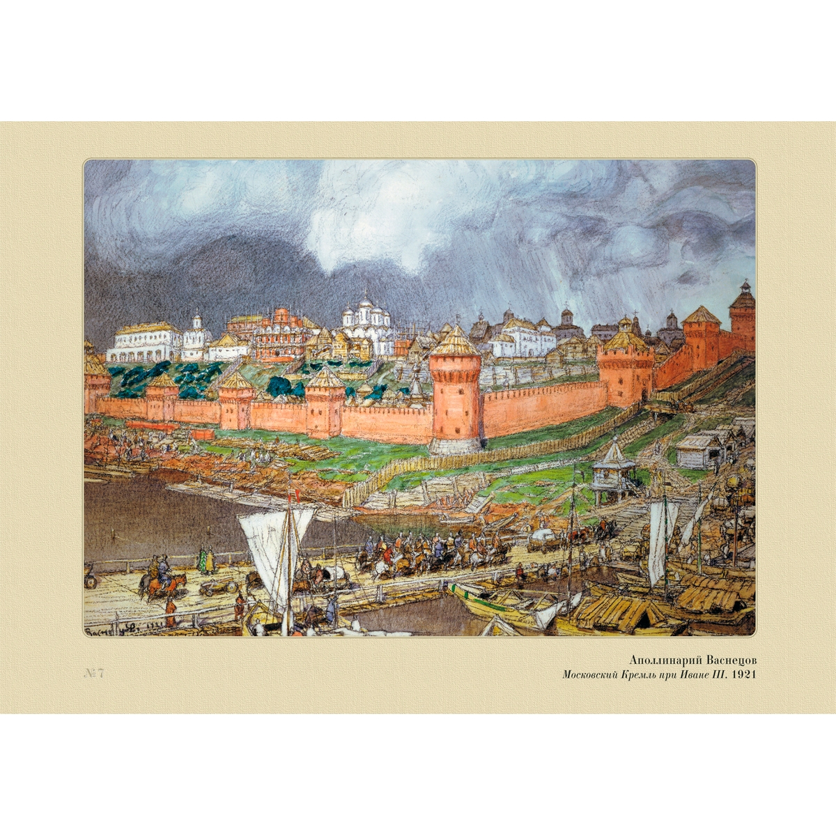 Передвижник и один из основателей Союза русских художников, Аполлинарий Михайлович Васнецов (1856–1933) всерьез был увлечен изучением истории и археологии, являясь также членом Археологического общества и участником различных комиссий по сохранению памятников русской культуры. Представленные в наборе картины отличает археологическая точность талантливого живописца, нашедшего свой уникальный путь, что, возможно, позволило ему состояться как мастеру, не попадая в тень именитого брата.