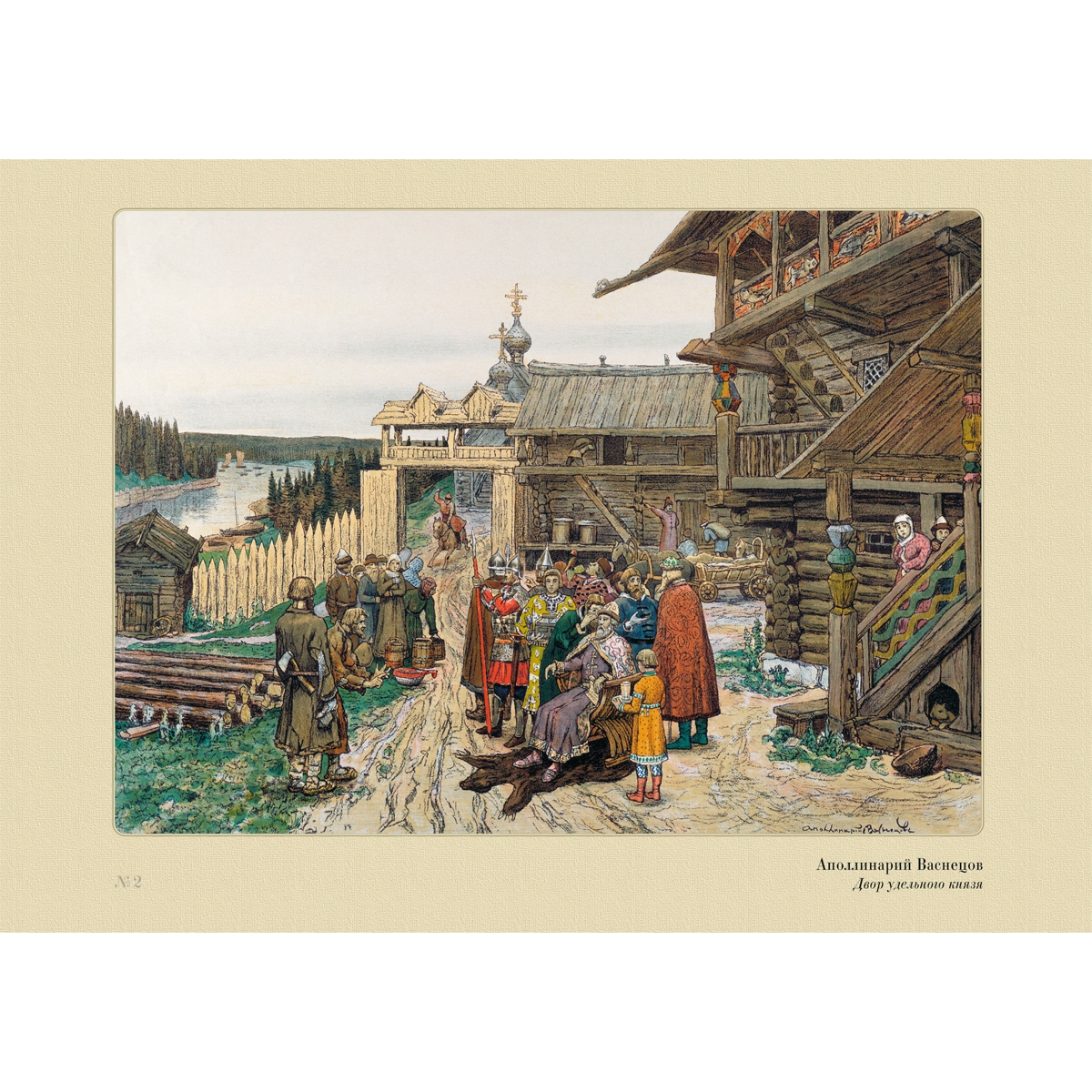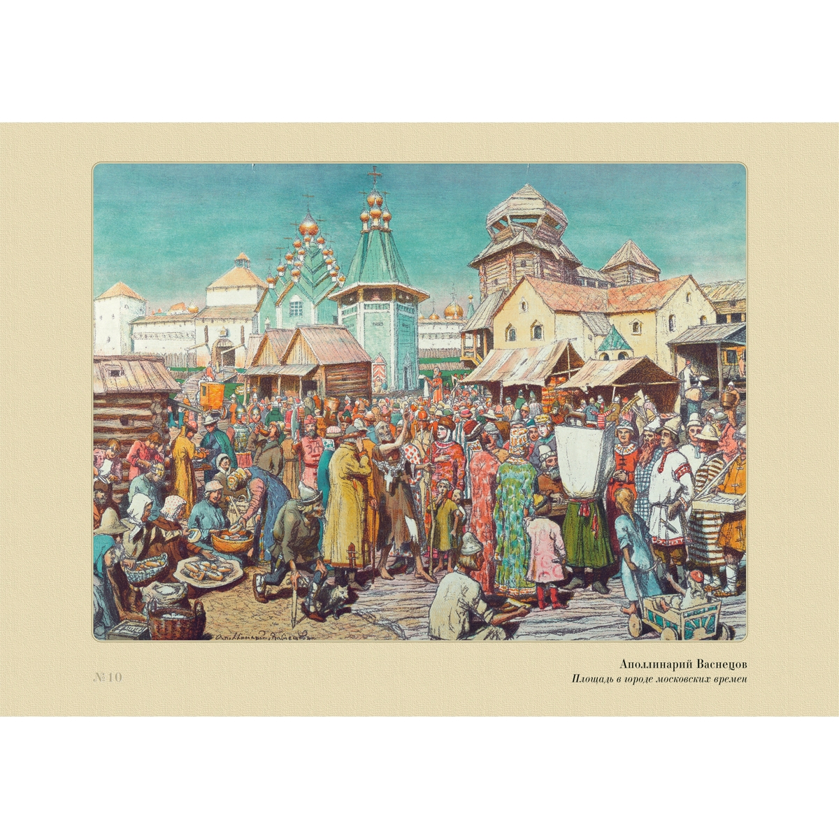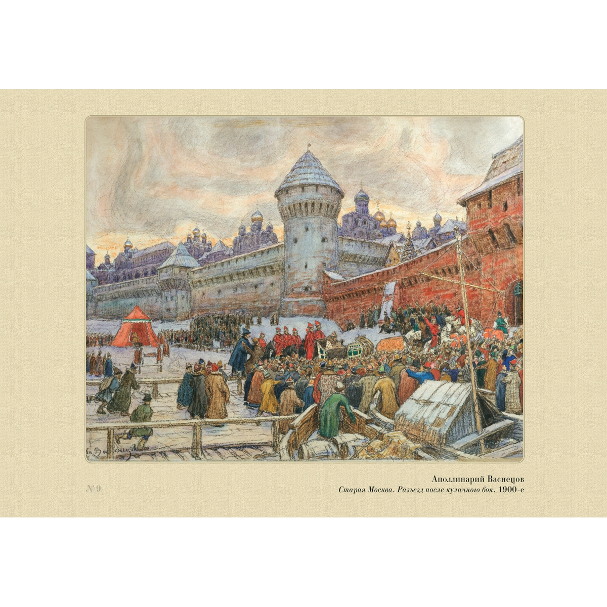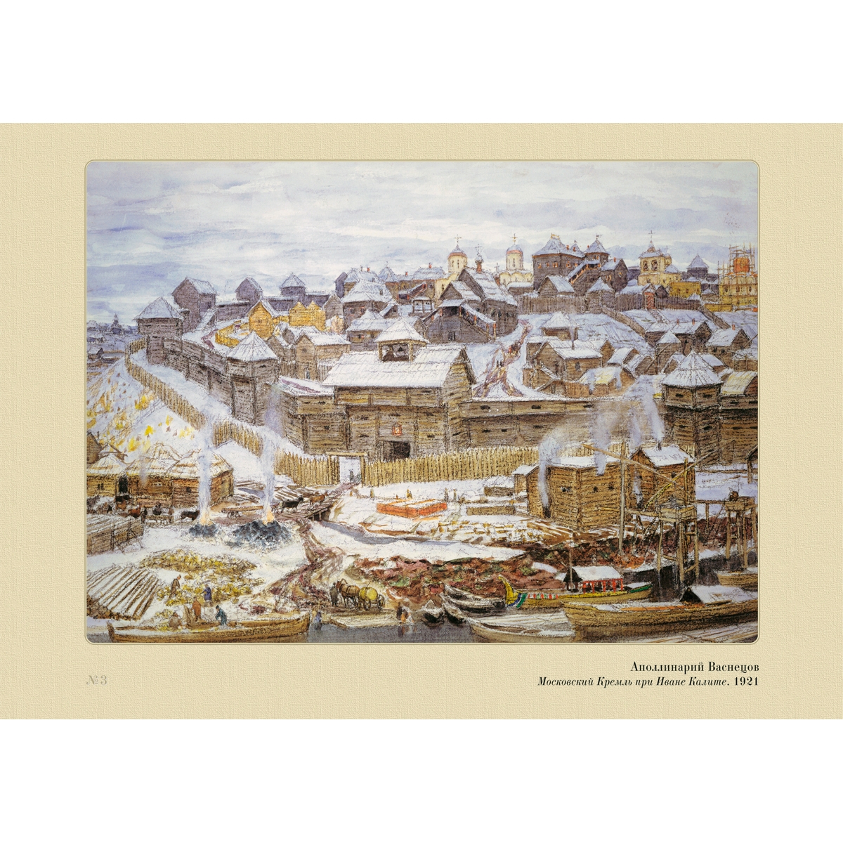 Передвижник и один из основателей Союза русских художников, Аполлинарий Михайлович Васнецов (1856–1933) всерьез был увлечен изучением истории и археологии, являясь также членом Археологического общества и участником различных комиссий по сохранению памятников русской культуры. Представленные в наборе картины отличает археологическая точность талантливого живописца, нашедшего свой уникальный путь, что, возможно, позволило ему состояться как мастеру, не попадая в тень именитого брата.