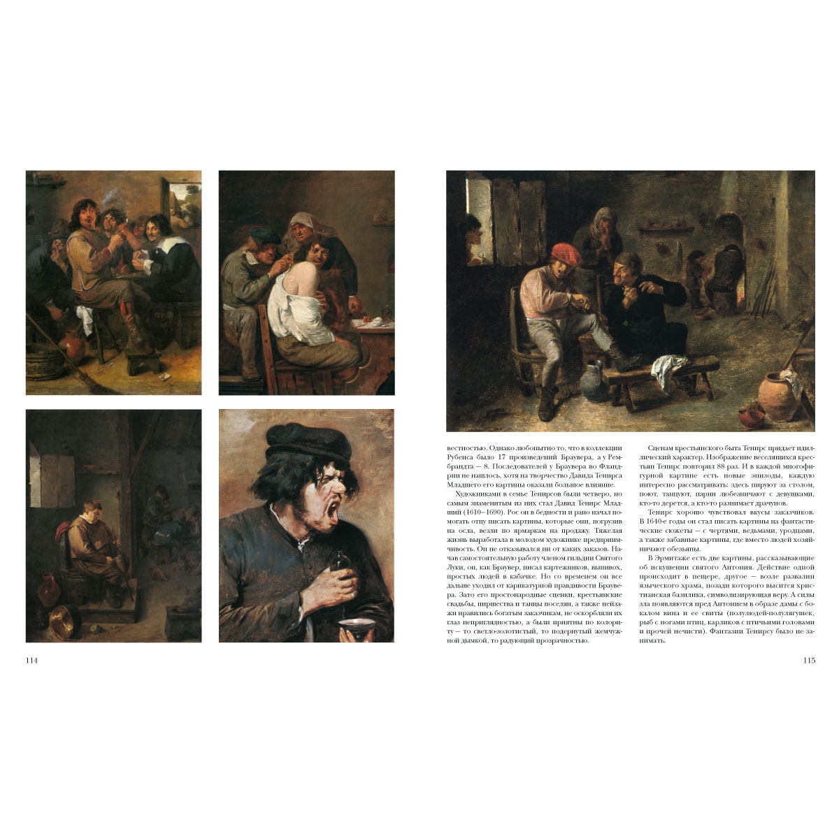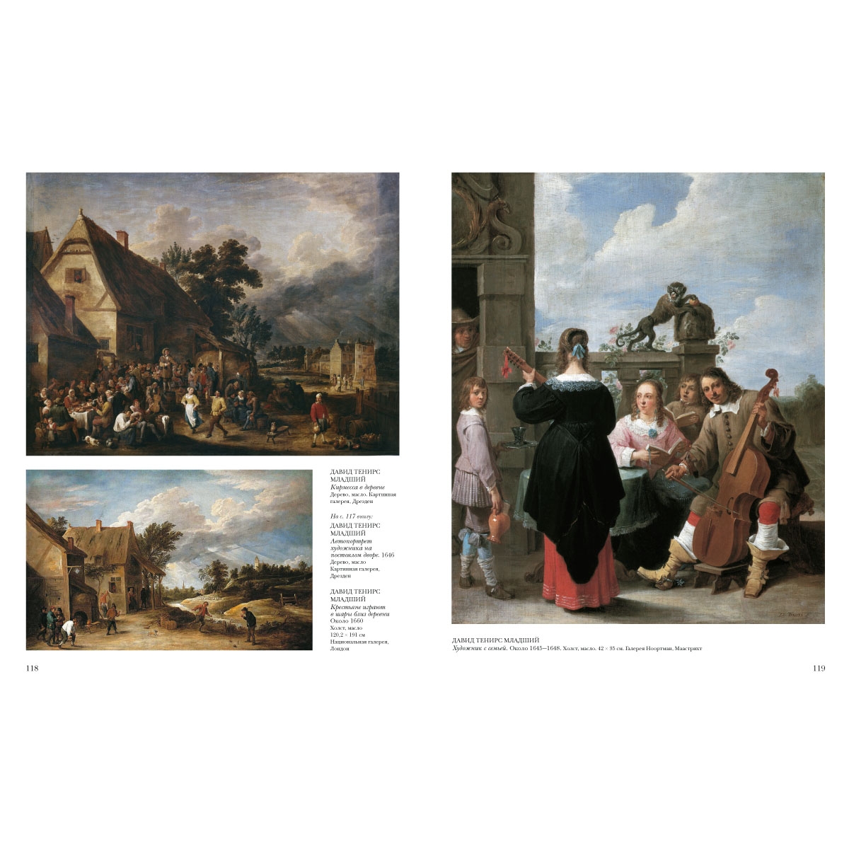 Автопортрет художника на постоялом дворе; Алхимик; Богач в аду; Вид на Хет Стерксхоф около Антверпена; Искушение святого Антония; Картежники; Кирмесса в деревне; Крестьяне играют в шары близ деревни; Отбелка белья; Художник с семьей; Эрцгерцог Леопольд Вильгельм в своей картинной галерее в Брюсселе