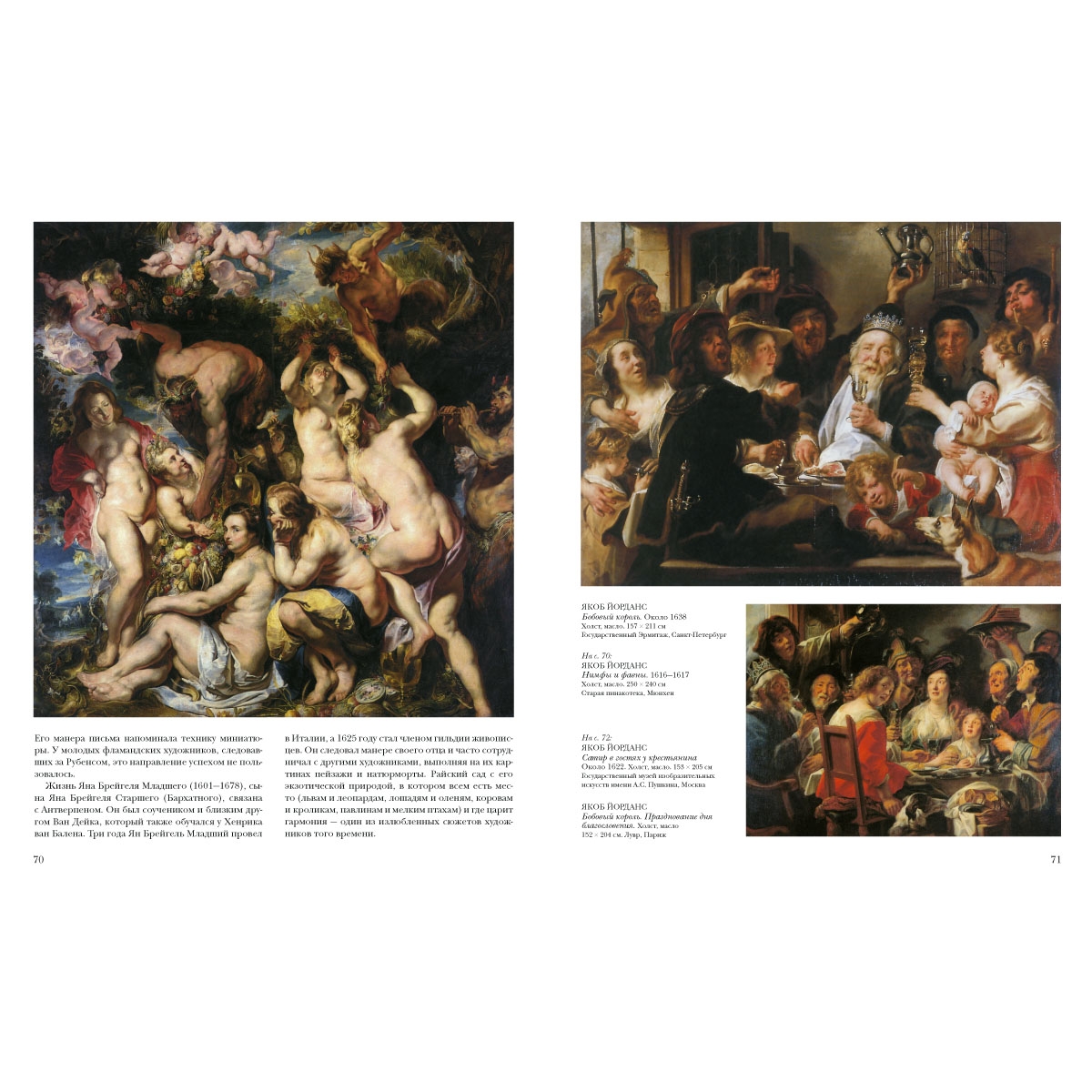 Автопортрет с родителями, братьями и сестрами; Аполлон сдирает кожу с Марса; Бегство в Египет; Бобовый король; Бобовый король. Празднование дня благословения; Возвращение Святого семейства из Египта; Изгнание торгующих из храма; Мелеагр и Аталанта; Нимфы и фавны; Оплакивание Христа; Оплакивание Христа; Портрет Говарта ван Сурпеле с женой; Портрет старика; Сатир в гостях у крестьянина; Сатир в гостях у крестьянина; Свадьба Пелея и Фетиды; Святое семейство; Святое семейство и святой Иоанн Креститель; Семейный портрет
