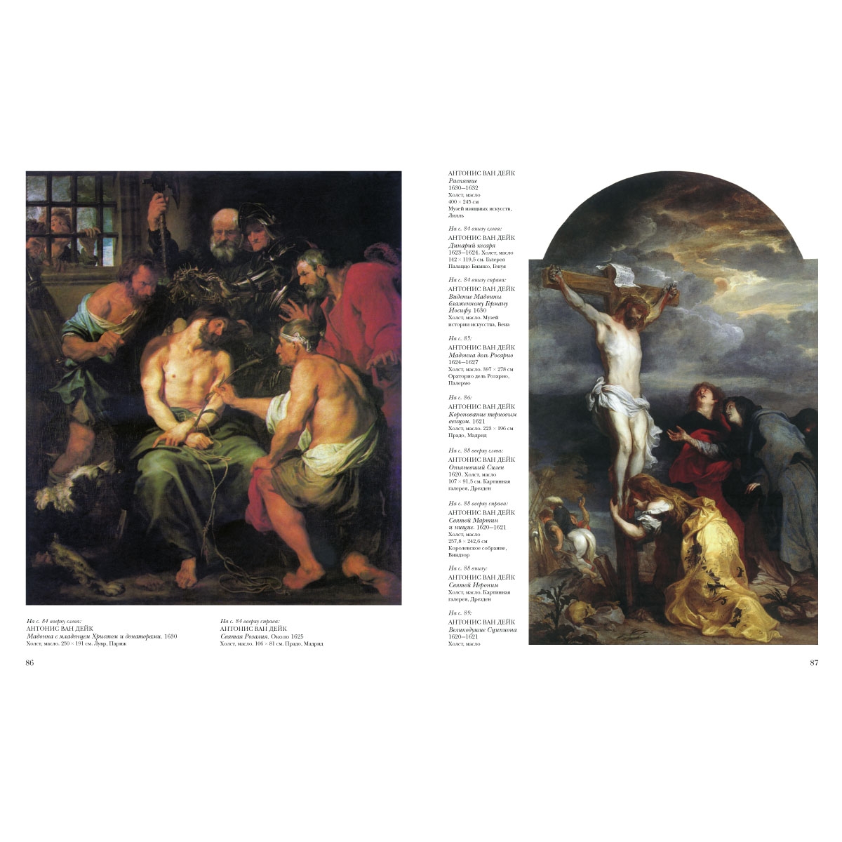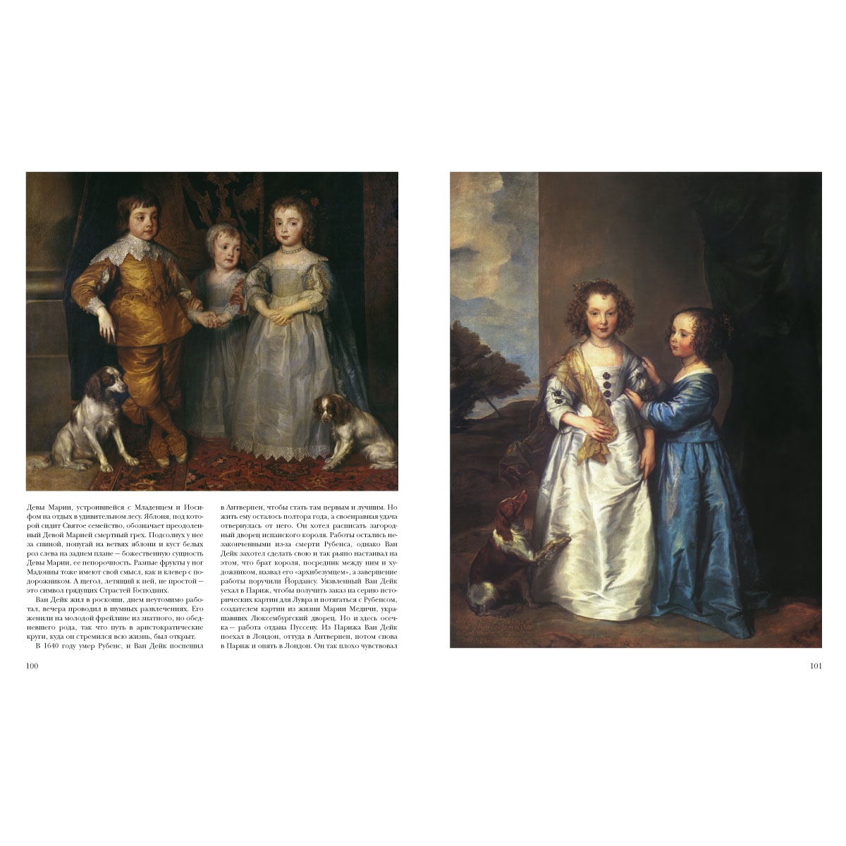 Автопортрет; Амур и Психея; Великодушие Сципиона; Видение Мадонны блаженному Герману Иосифу; Голова старика; Дети Карла I; Дети Карла I; Дети Карла I; Джеймс Стюарт, герцог Леннокса и Ричмонда; Динарий кесаря; Изабелла Брант; Конный портрет Карла I; Коронование терновым венцом; Леди Элизабет Тимбелби и Дороти, виконтесса Андоверская; Мадонна дель Росарио; Мадонна с младенцем Христом и донаторами; Медный змий; Мужской портрет; Опьяневший Силен; Отдых на пути в Египет; Отдых на пути в Египет (Мадонна с куропатками); Портрет Агостино Паллавичино; Портрет Адриана Стевенса; Портрет воина в латах с красной повязкой на руке; Портрет Генри Денверса, графа Денби; Портрет Генриетты Марии; Портрет дамы в черном на фоне красного занавеса; Портрет детей Бальби; Портрет Джорджа Дигби и Уильяма Рассела; Портрет кардинала Гвидо Бентивольо; Портрет Карла I; Портрет Карла I на охоте; Портрет Корнелиса ван дер Геста; Портрет леди Венеции Дигби, олицетворяющей Благоразумие; Портрет Лукаса и Корнелиса де Валь; Портрет Марии Босхарт; Портрет маркизы Бальби; Портрет маркизы Елены Гримальди Каттанео со слугой-негритенком; Портрет мужчины в черном, стоящего у колонны; Портрет дамы; Портрет придворных дам Анны Далькит, графини Мортон (?), и Анны Керк; Портрет семьи Ломеллини; Портрет Филиппа Уортона; Портрет Франса Снейдерса; Портрет Яна ван ден Ваувера; Распятие; Самсон и Далила; Святая Розалия; Святой Иероним; Святой Мартин и нищие; Се-мейный портрет; Сусанна и старцы; Томас Уэнтворт, граф Страффорд, и сэр Филипп Мейнворинг; «Тройной портрет» короля Карла I; Уильям Фидлинг, граф Денби; Филадельфия и Елизавета Уортон; Филипп Герберт, граф Пемброк, с семьей;