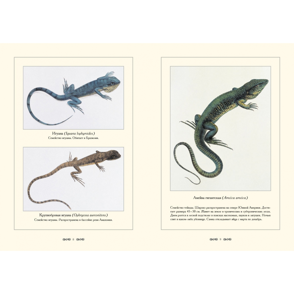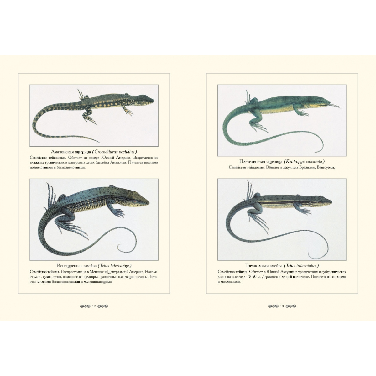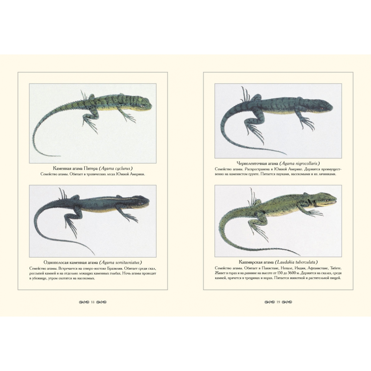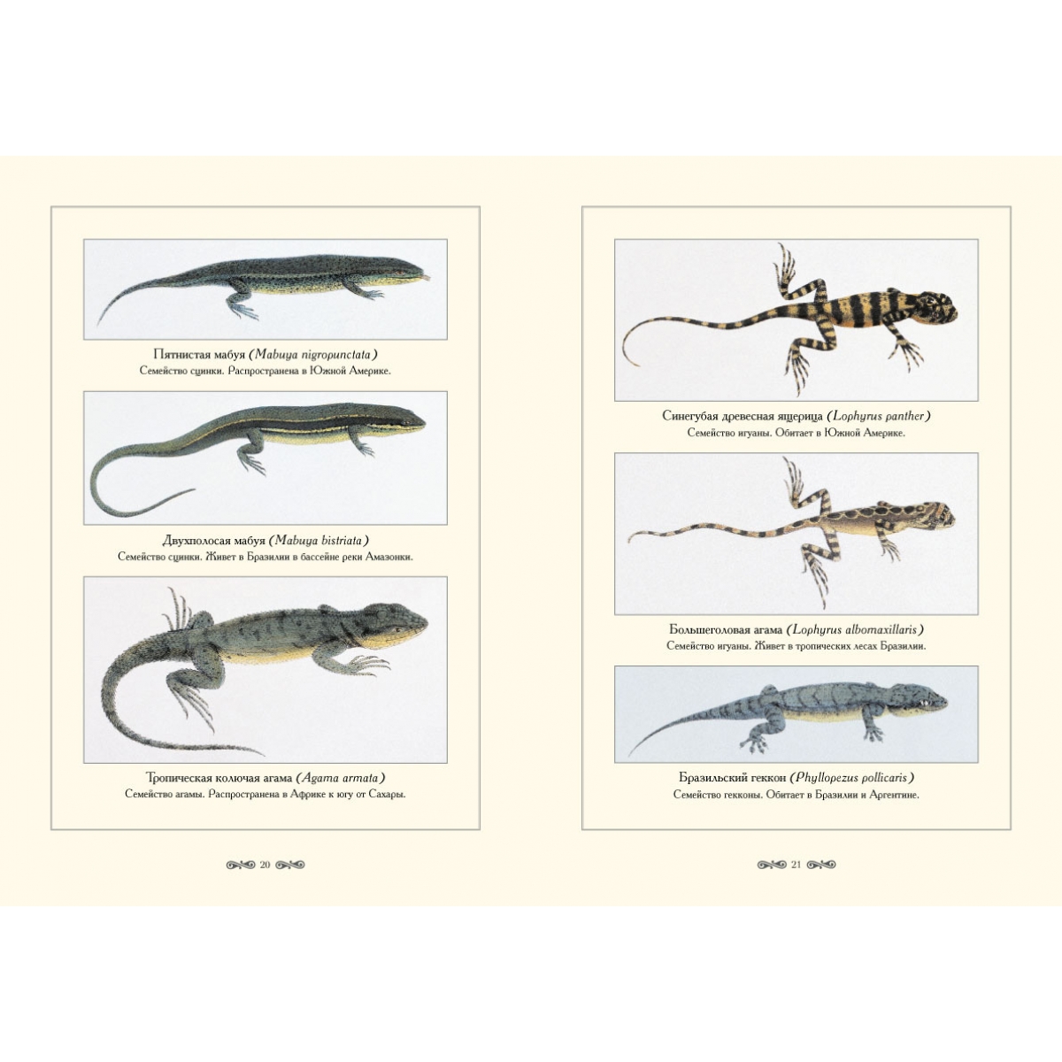 В настоящее время насчитывается около 6000 видов рептилий, а когда-то они являлись настоящими «хозяевами» нашей планеты. Наиболее многочисленный отряд чешуйчатых (Squamata), включающий около 5500 видов, – самая распространенная ныне на земном шаре группа пресмыкающихся. Она составляет основную массу рептилий нашей фауны. К этому отряду относятся ящерицы, хамелеоны, амфисбены и змеи. Отдельный отряд пресмыкающихся составляют крокодилы (Crocodylia). Их известно около двадцати видов. Они населяют материковые и прибрежные водоемы тропиков и представляют собой прямых потомков древних высокоорганизованных пресмыкающихся мезозоя. Для большинства пресмыкающихся характерным видом движения является ползание. Крокодилы и ящерицы хорошо бегают и плавают. Летающие рептилии известны только из ископаемых останков. Данное издание знакомит читателя с ящерицами и крокодилами.