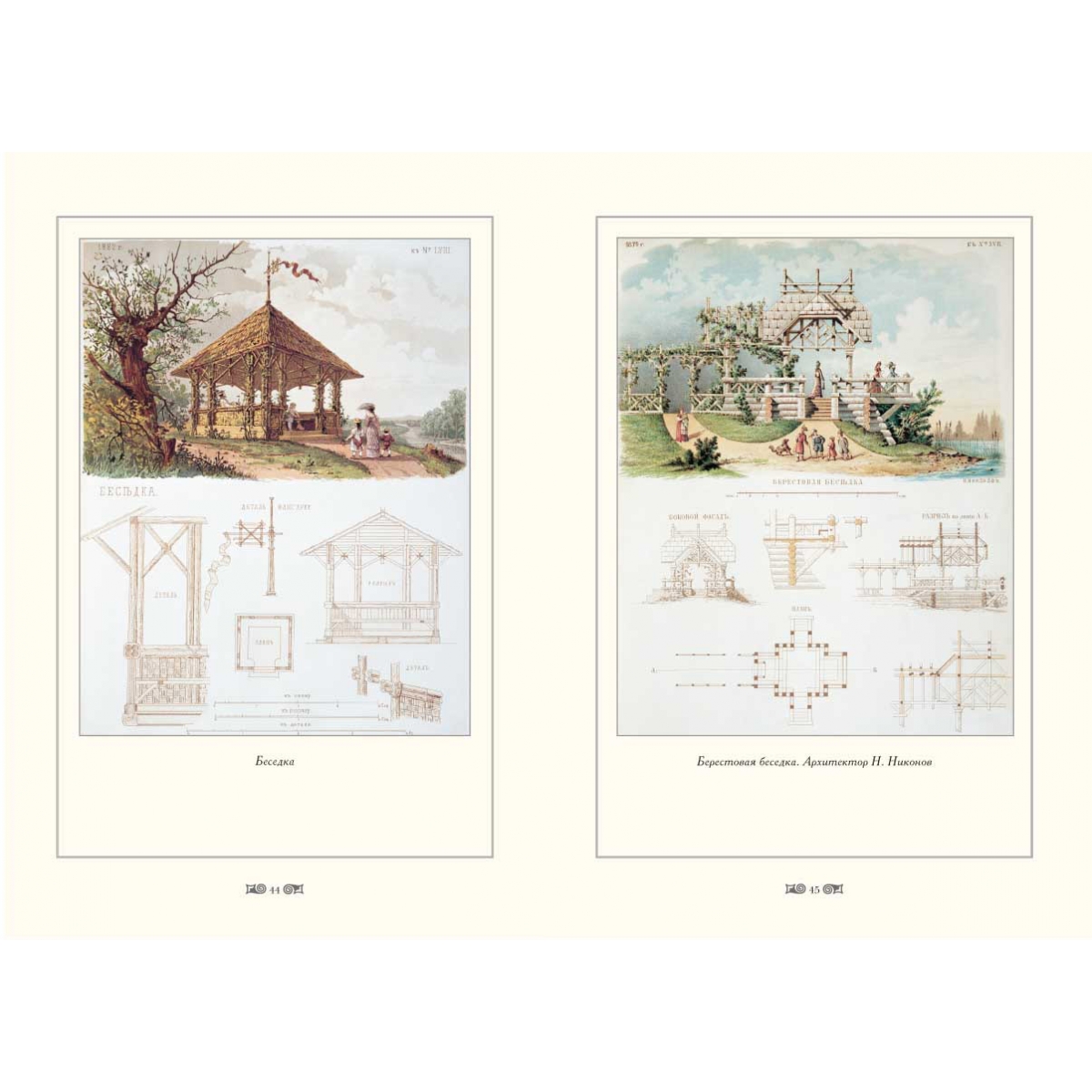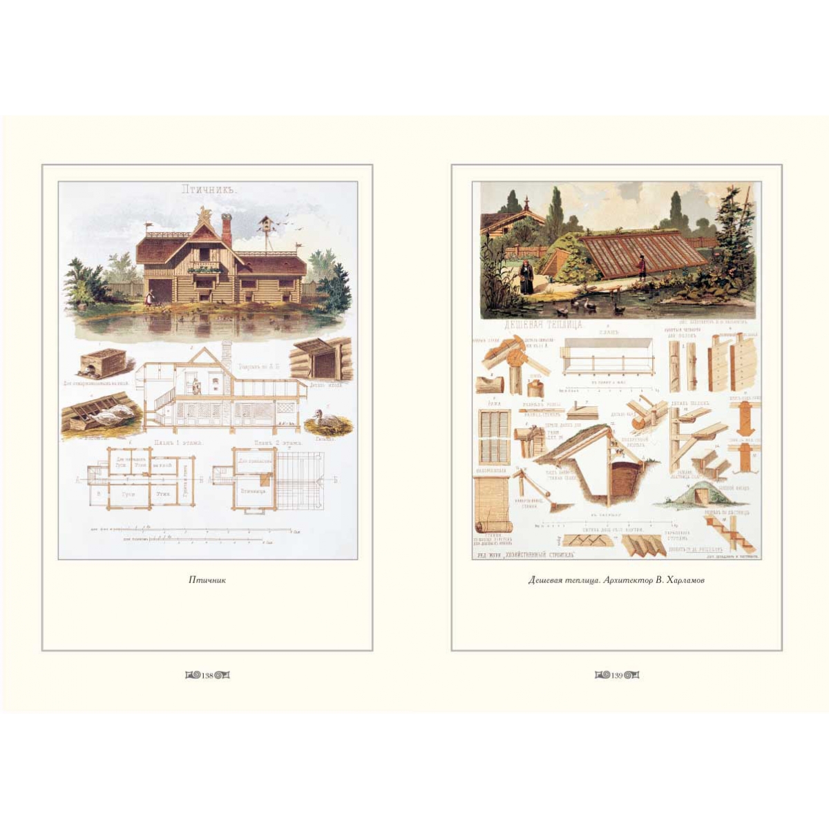 Вообще тема жилья в «Хозяйственном строителе» освещалась основательно, в том числе по стройматериалам. Можно было узнать, как строить дома из самана, сырца и даже из кизяка. В конце века вокруг больших городов развернулось строительство дач. Проекты нарядных дач в «русском стиле», думается, могут быть полезны любителям этого стиля до сих пор. К дачам предлагались и элегантные беседки, и купальни-раздевальни, и набор гимнастических снарядов и т. п. Жизнь на даче или в малом городе не повод отказаться от культурных запросов, и журнал помещает проекты музыкальных павильонов и даже театра.