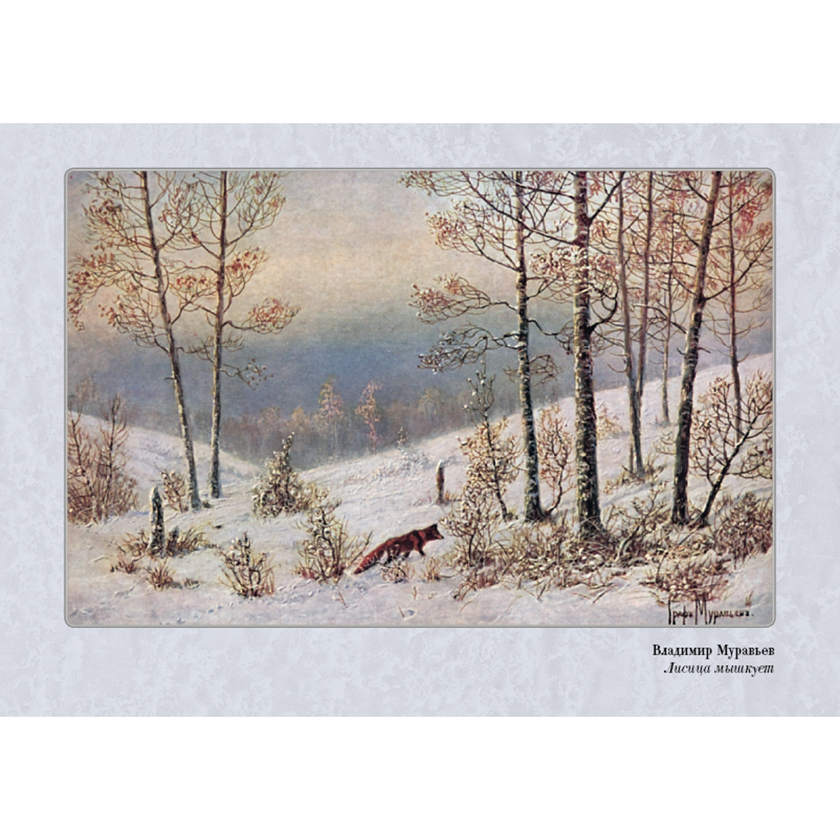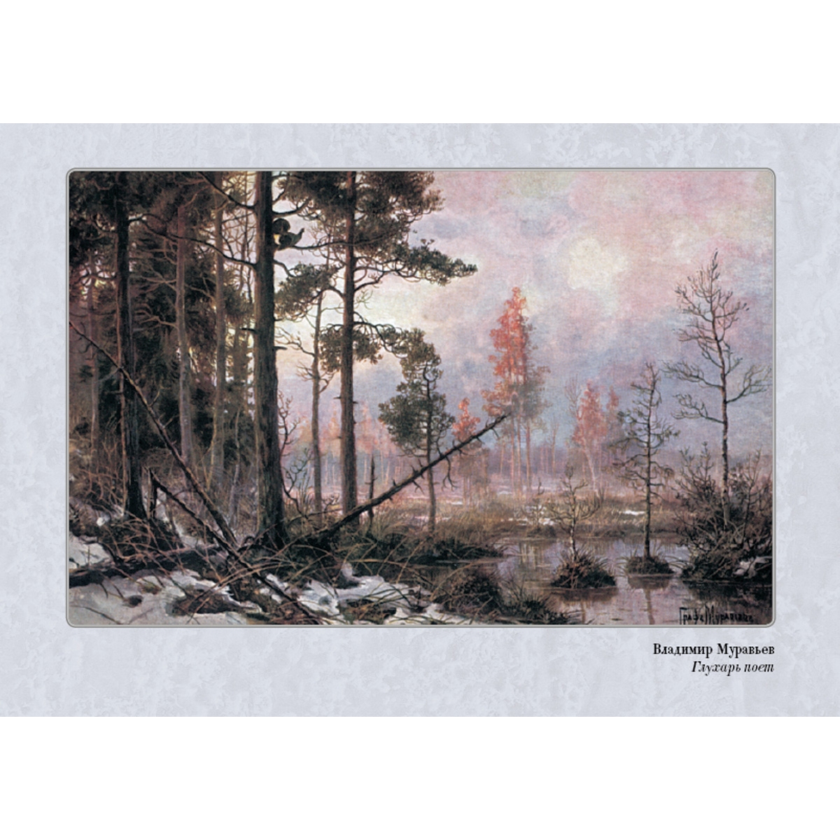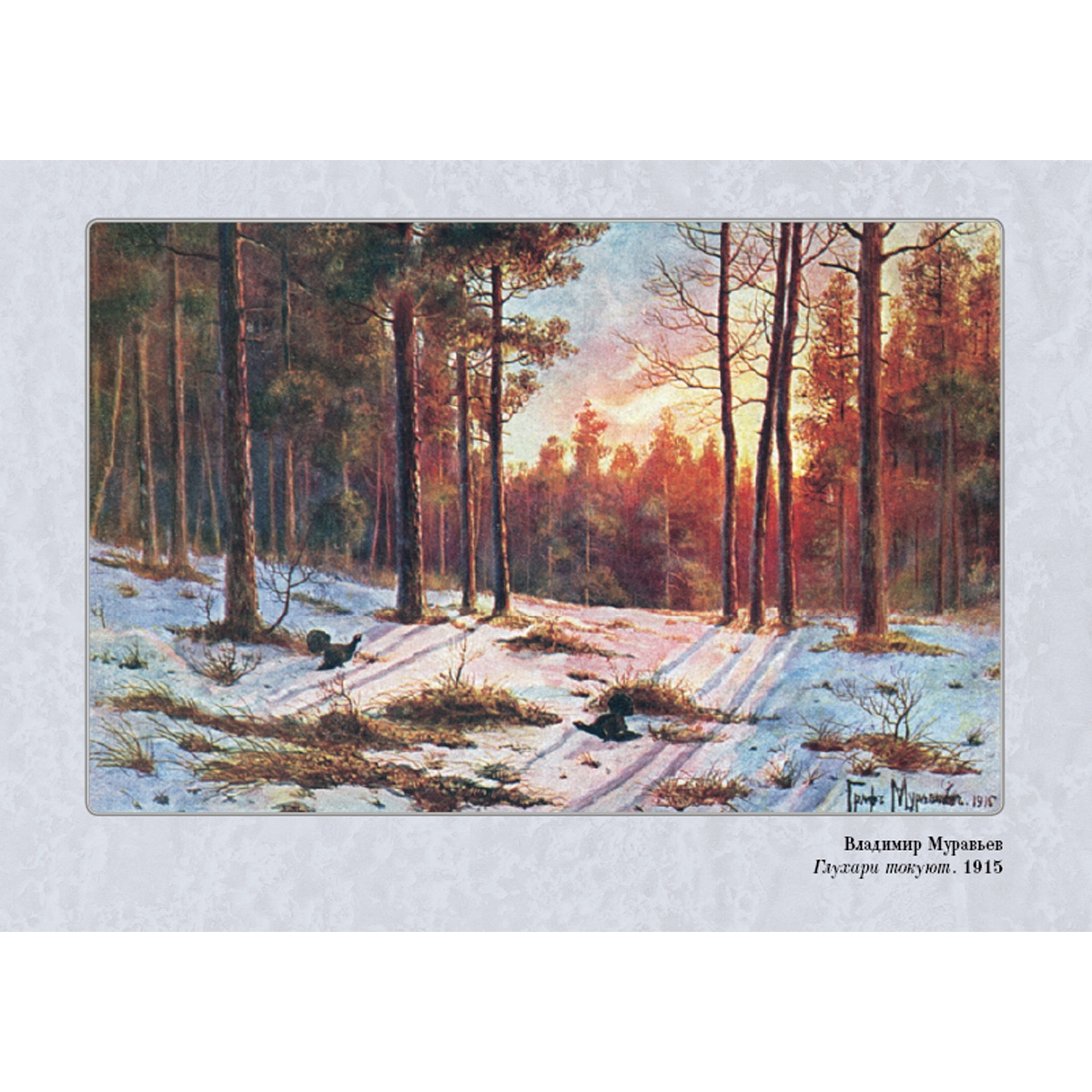 Прекрасный художник В.Л. Муравьев всем сердцем любил русскую природу и писал красочные пейзажи. Несправедливо забытый, он своей поэтической кистью рассказывал о повадках зверей и птиц, и его «медвежьи охоты и тетеревиные тока» нравились любителям охоты.