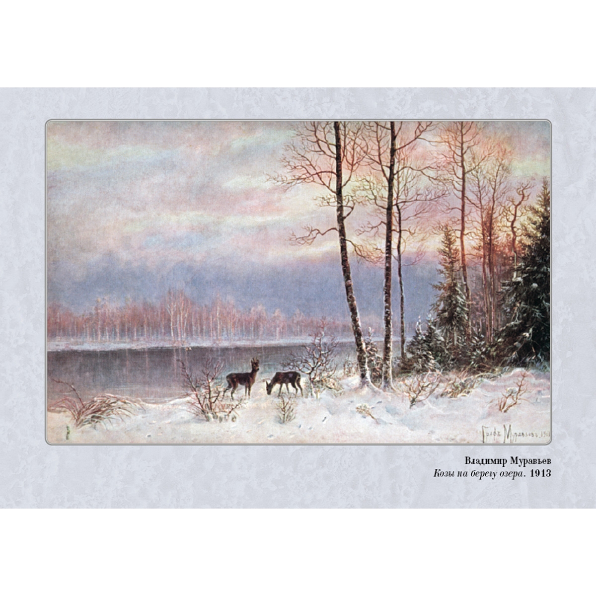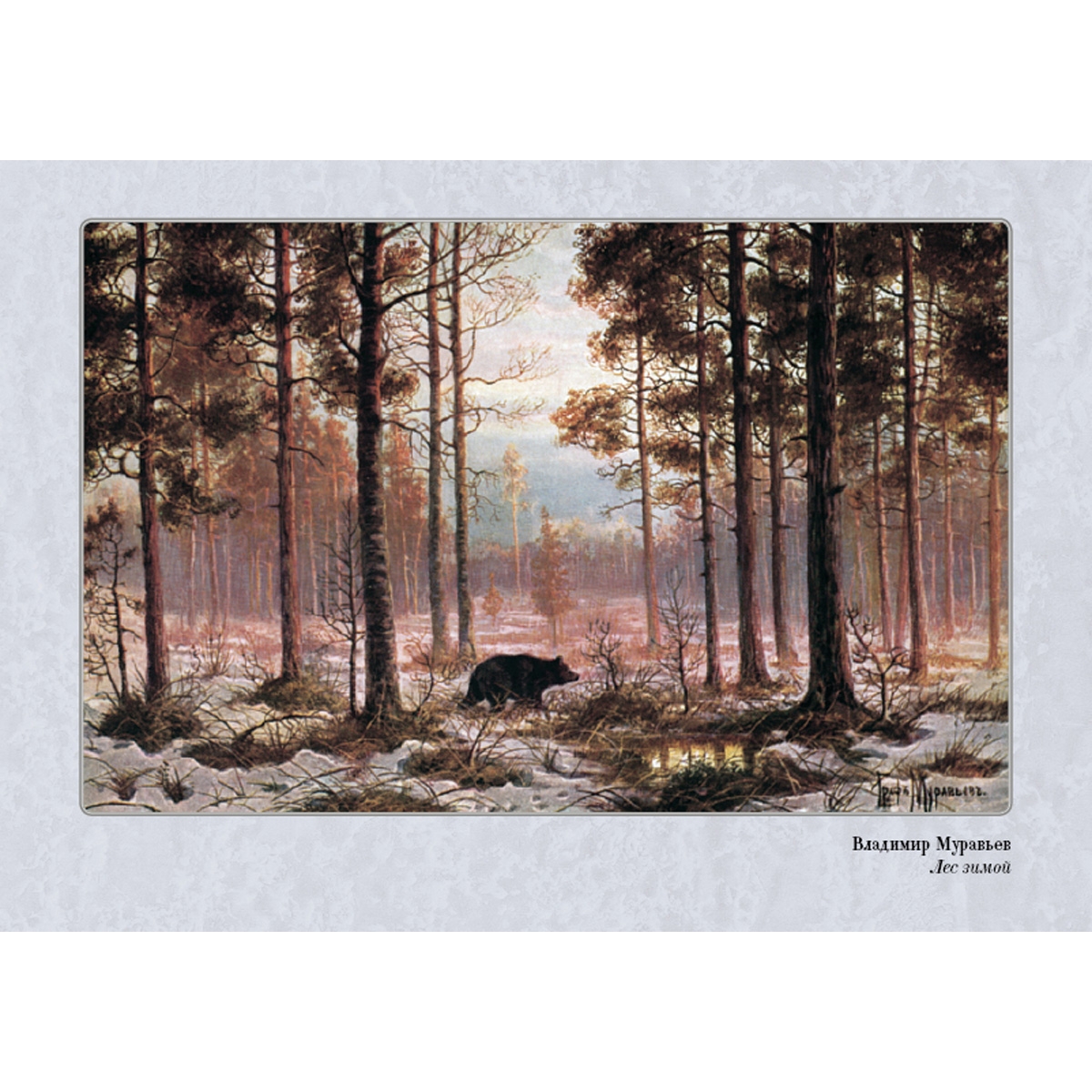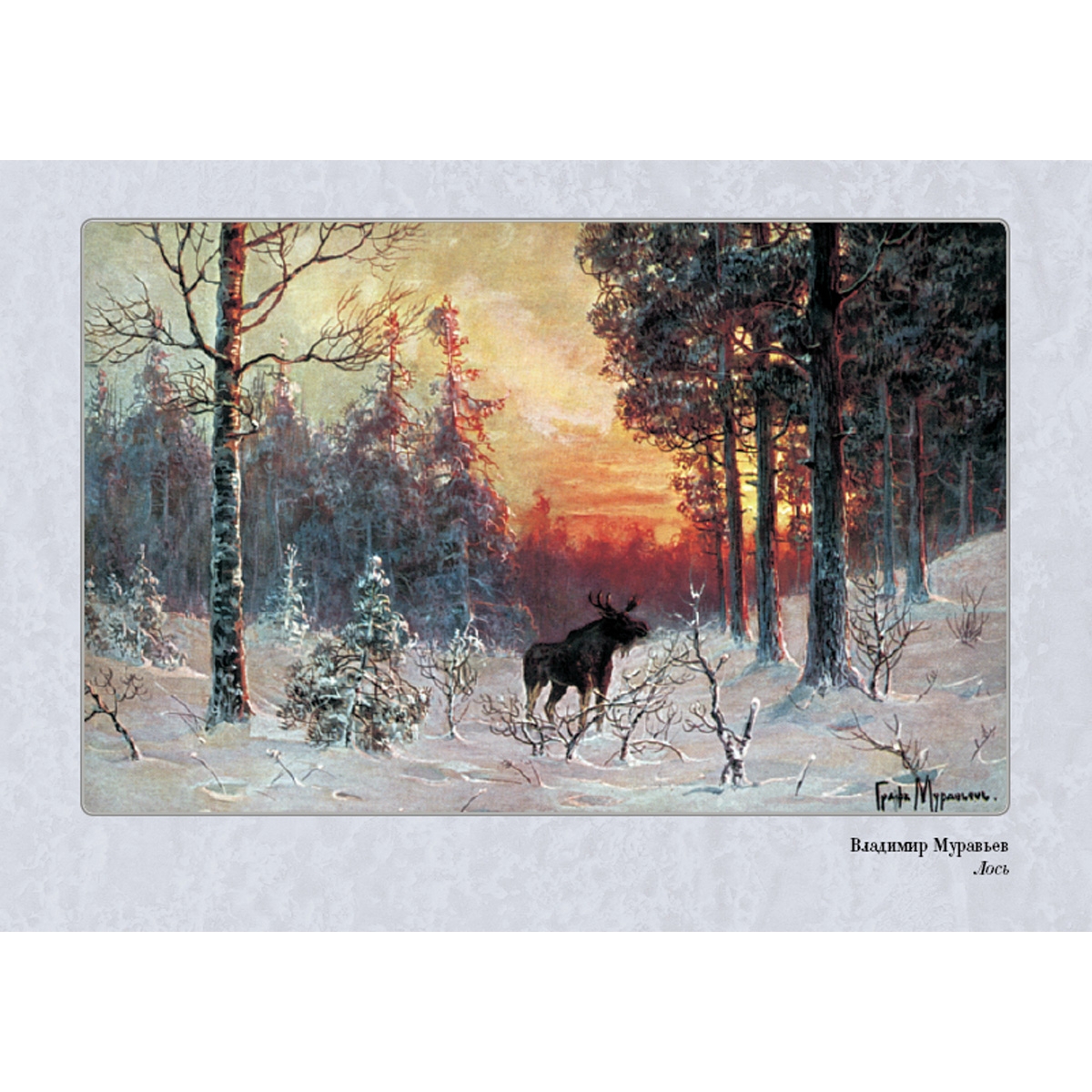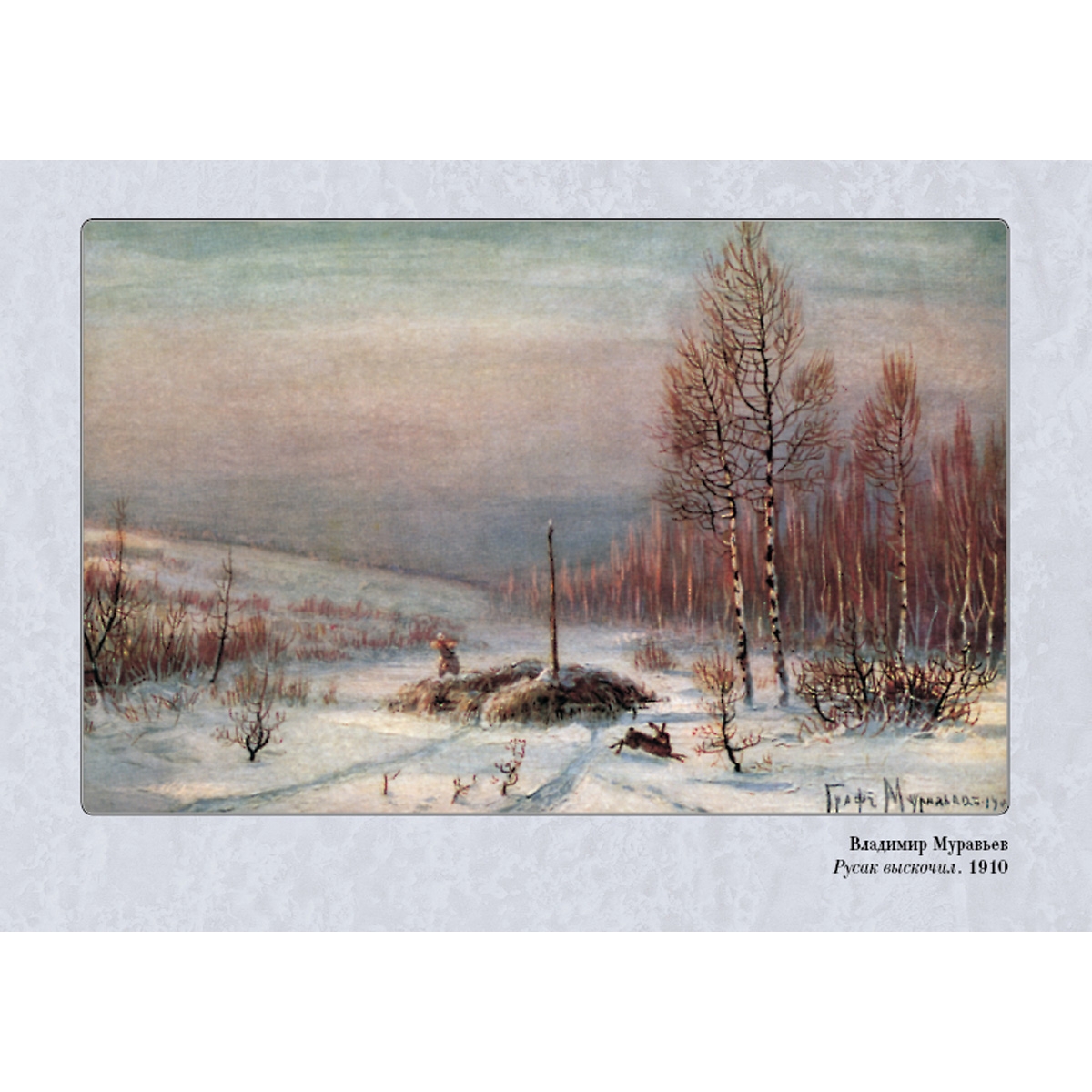 В.Л. Муравьев (1861–1940), граф по рождению, учился в Пажеском корпусе. Не закончив его, он поступил в Академию художеств вольноприходящим учеником. Состоял членом Санкт-Петербургского общества художников и Общества русских акварелистов. Публиковался в периодике, сохранились открытки с изображением его пейзажей. Он писал «медвежьи охоты» и тетеревиные тока, рассказывал в красках о повадках зверей и птиц. Однако на долгое время художник был несправедливо забыт. Но его произведения есть в региональных музеях, они хранятся в частных коллекциях и, глядя на его работы, мы понимаем: они написаны человеком, который всем сердцем любил русскую природу.