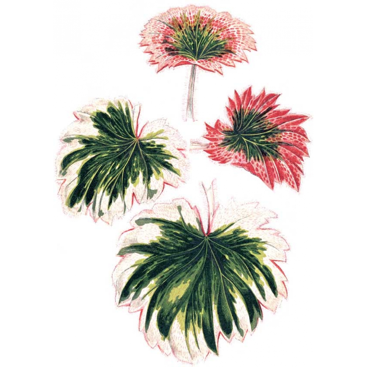 Данные открытки покажут вам одни из самых красивых растений с цветными листьями, завезенные еще в XIX столетии из различных экзотических стран. Однако, это не значит, что вы не сможете выращивать данные растения дома: эрантеум кроваво-красный, бегония, бересклет японский, аукуба и другие отлично подходит для украшения не только дома, но и парка, а попугайную траву и пекинскую капусту и вовсе можно употреблять в пищу.