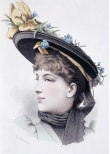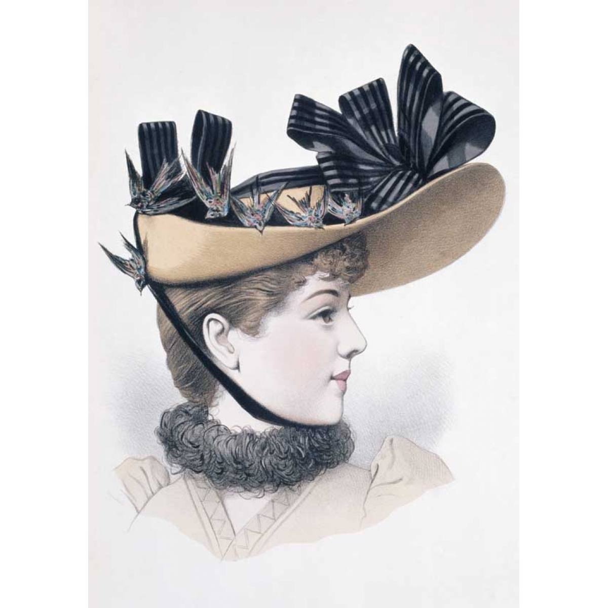 Набор открыток дает представление самых модных образцов шляпок 1890 года, представленных в журналах «Модистка» и «Вестник моды для модисток». Они позволят ближе познакомиться с материалами, расцветкой и элементами оформления дамских головных уборов, принятых в светских кругах эпохи правления императора Александра III.