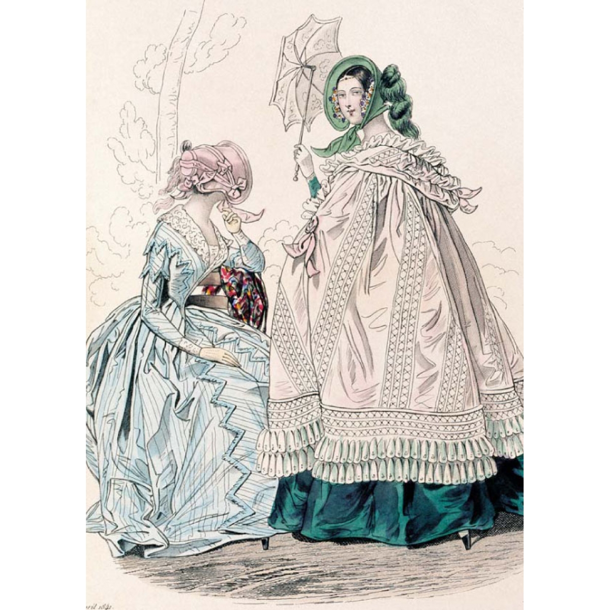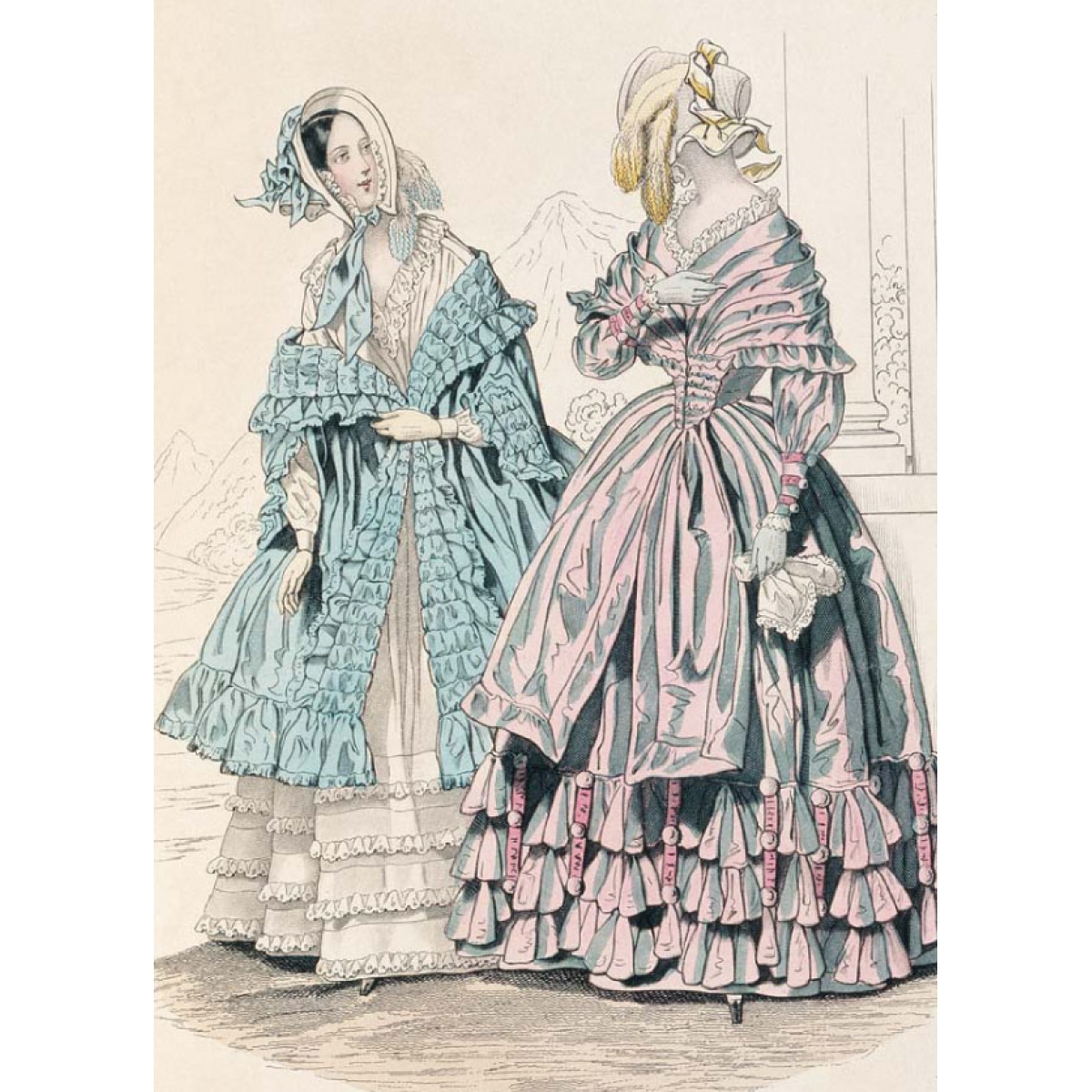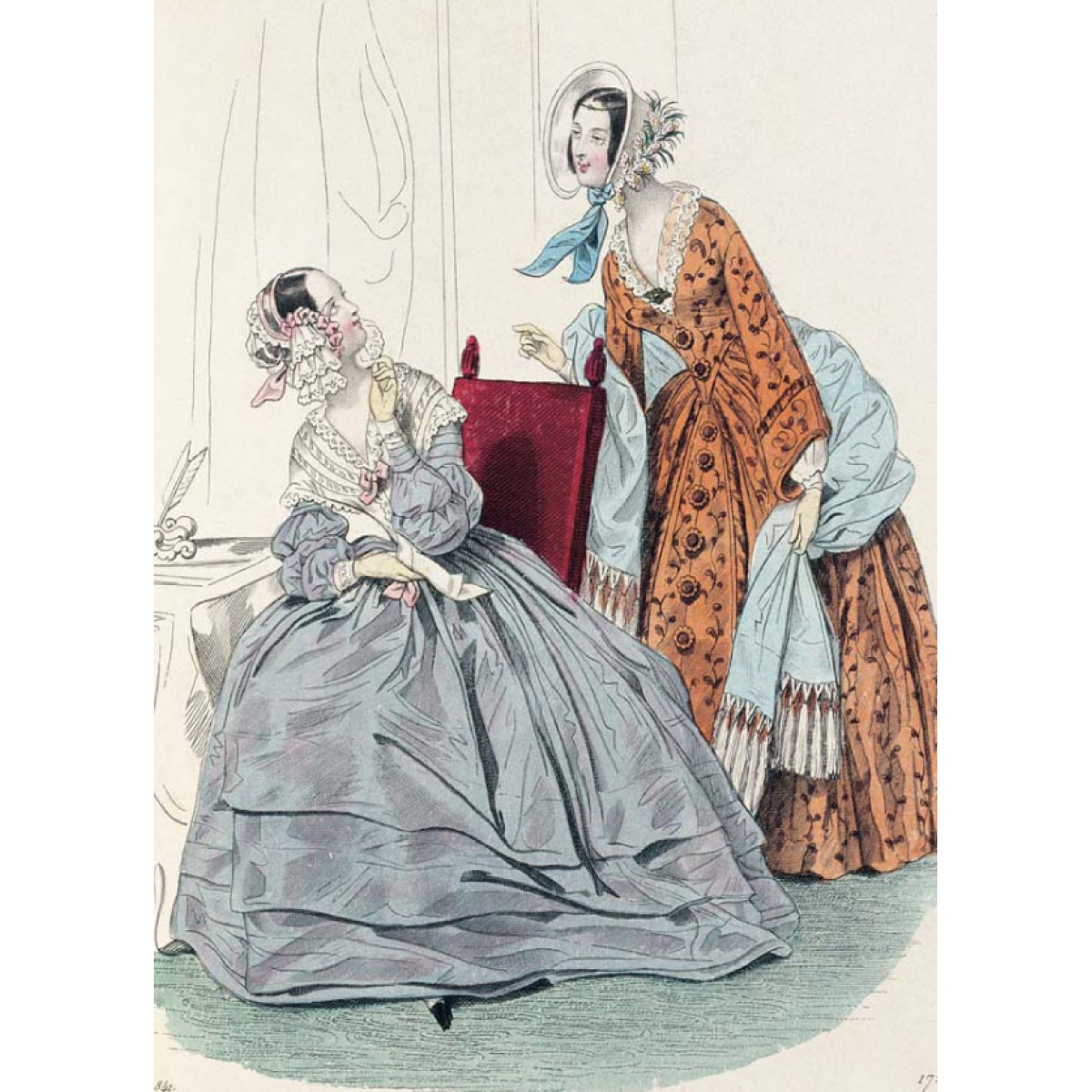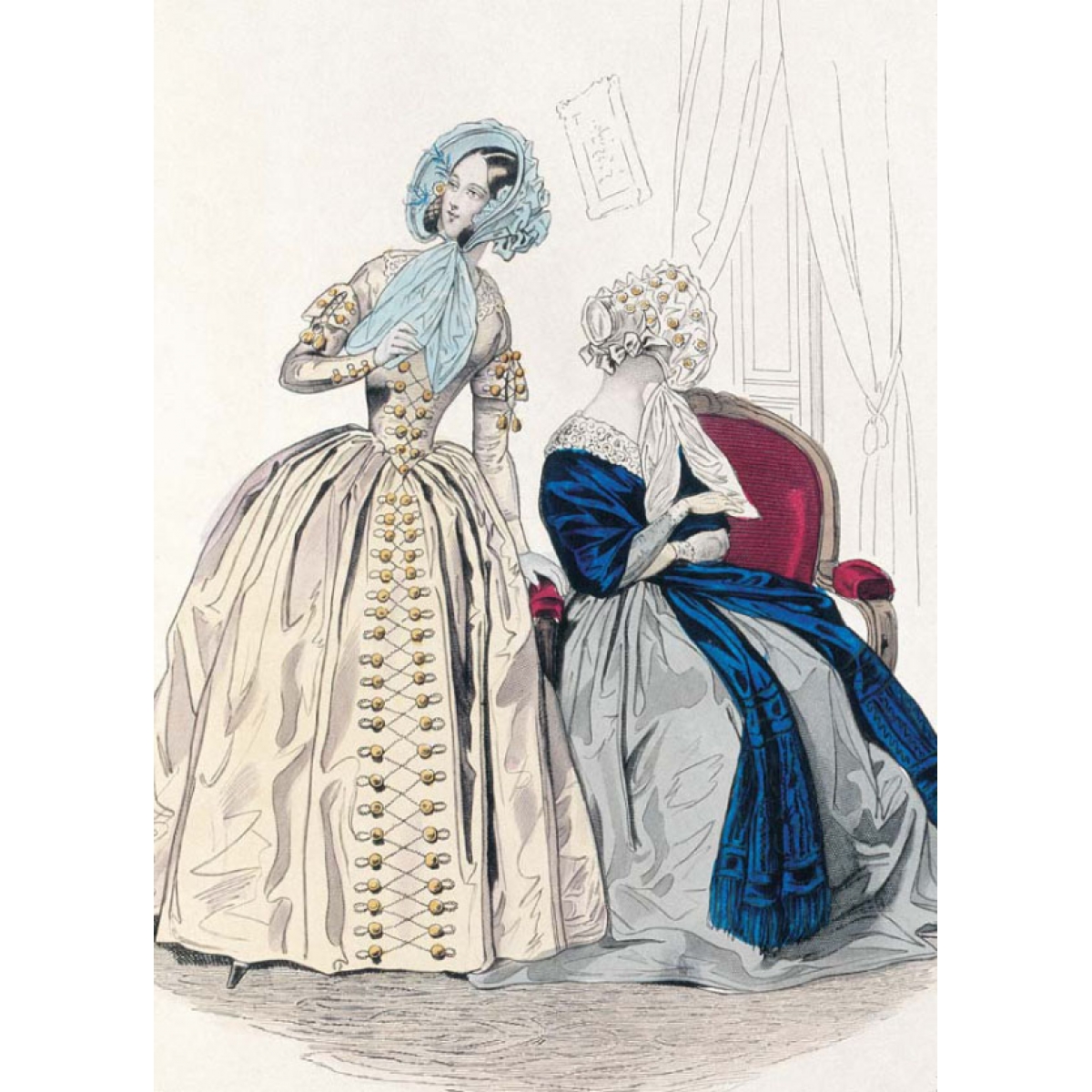 Набор открыток представляет избранные иллюстрации модных картинок из французских журналов «Le moniteur de la mode» и «Petit Courrier des Dames». Оба журнала издавались в Париже и были ориентированы на состоятельную публику. Сегодня эти красочные гравюры – бесценные исторические свидетельства ушедшей эпохи.
