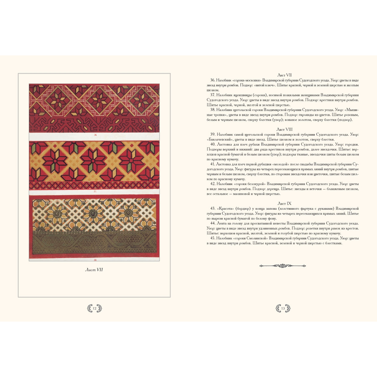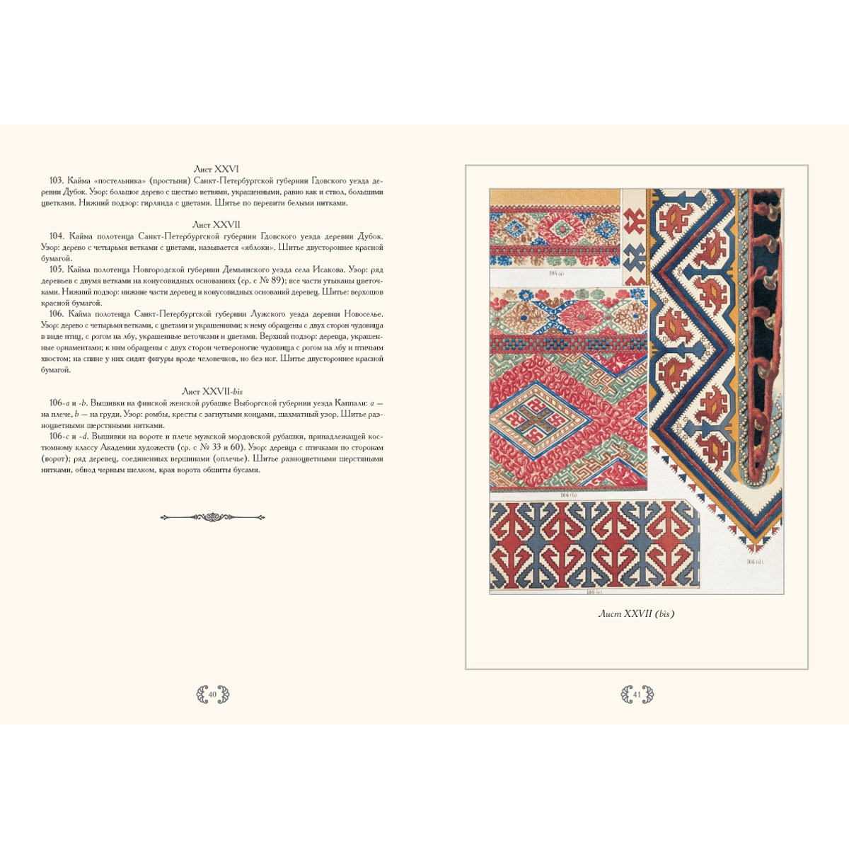 В альбоме представлены народные орнаменты, образцы которых были собраны в разных губерниях Российской империи и перерисованы во второй половине XIX века Русским обществом поощрения художников под руководством В.В. Стасова.