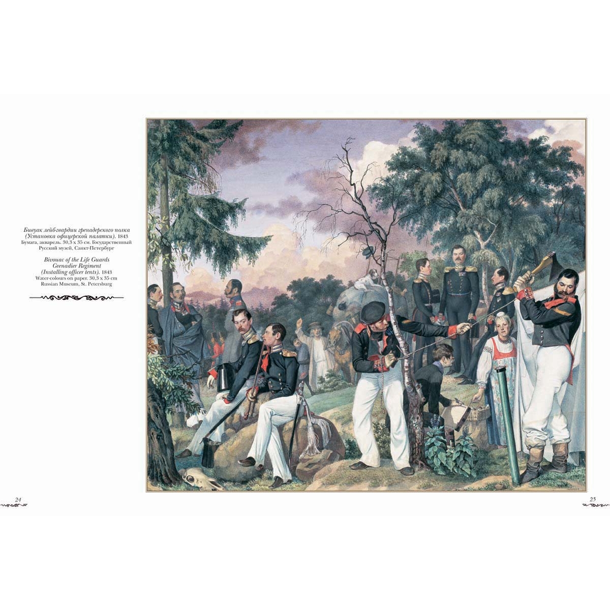 | Бивуак лейб-гвардии гренадерского полк (Установка офицерской палатки). 1843 | 24,25 |