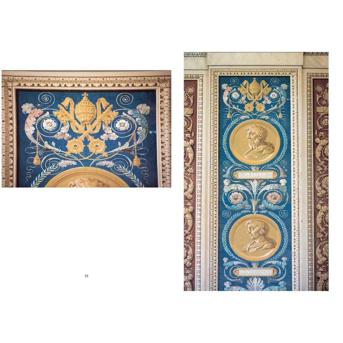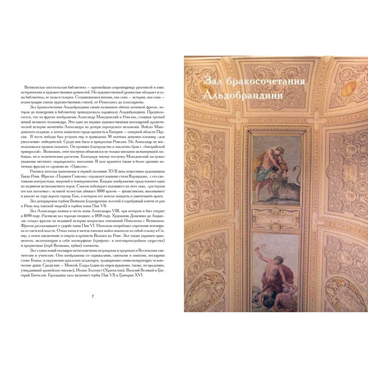 В книге показано декоративное убранство Зала бракосочетания Альдобрандини, Зала Александра и Зала славословий.