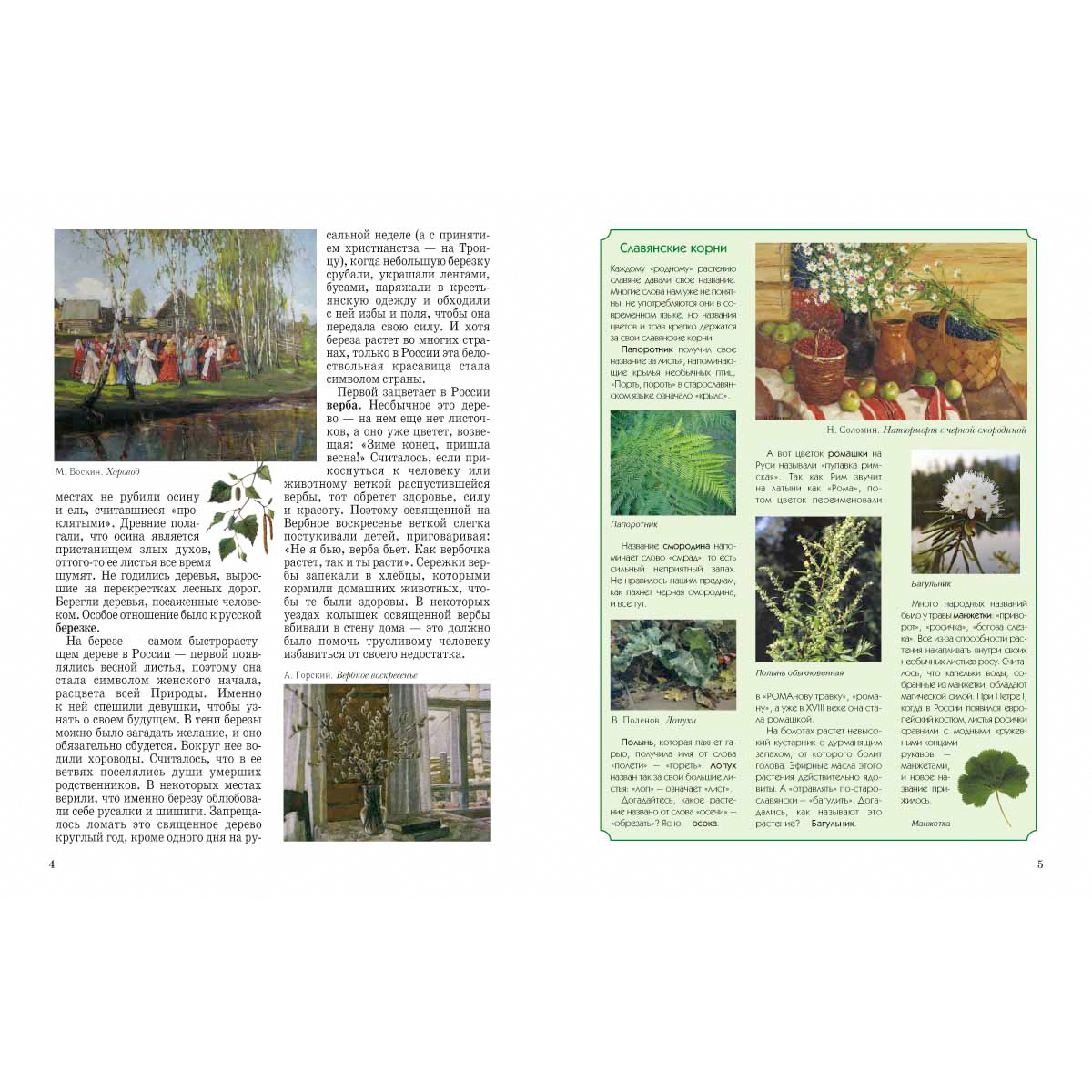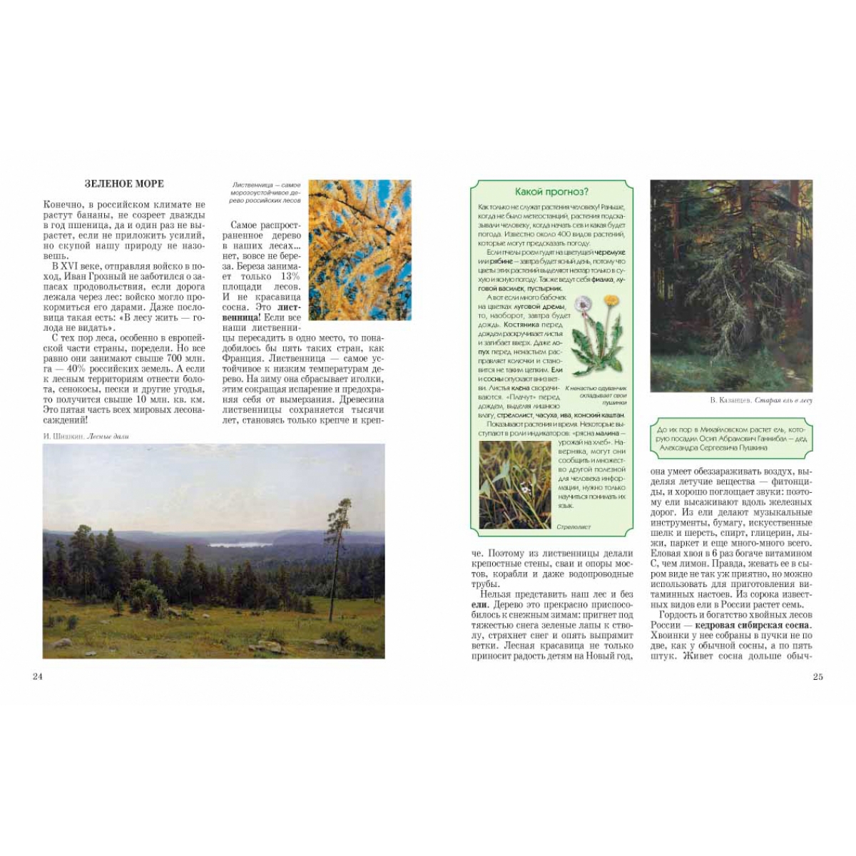 Природа нашей страны вдохновила многих русских художников на создание великих произведений, так что именно полотна живописцев украсили эту книгу. В издании есть и фотографии, которые так или иначе иллюстрируют главную мысль автора – тратить ресурсы природы надо с умом, заботясь о завтрашнем дне, оставляя потомкам здоровую, а не больную планету. Содержание Природа — живая 2 Северная страна 8 Живая и мертвая вода 16 Зеленое море 24 «Мы — одной крови… » 34 Природа — Родина — народ 42 Художники - А. Афонин, М. Боскин, Л. Бродская, А. Васнецов, М. Вишняк, Е. Волков, А. Герасимов, А. Горский, Г. Гуркин, В. Казанцев, П. Корин, А. Куинджи, И. Левитан, И. Лысенко, Г. Мясоедов, И. Прянишников, В. Поленов, Н. Рерих, Н. Соломин, Ф. Сычков, А. Шильдер, И. Шишкин. В. Щербаков и др об авторе Колпакова Ольга Валериевна родилась в Алтайском крае. Живет и работает в Екатеринбурге. Закончила Уральский государственный университет, факультет журналистики. Работала преподавателем масс-медиа в педагогической гимназии № 116 (г. Екатеринбург), редактором первого в России журнала «для любознательных детей и заботливых родителей», публикующего игры и методики для раннего развития и обучения детей «Витаминка». За разработку и осуществление проекта обучающего издания для малышей награждена благодарственной грамотой губернатора Свердловской области и премией «Профессиональный успех» (журнал «Космополитен»). Как начинающий автор в 1990 году была поощрена стипендией губернатора области и отделения Союза писателей Свердловской области. Является составителем и одним из авторов серии «Умные игры» (издательство «У-Фактория»), автором развивающей серии «Игра – дело серьезное» (по заказу губернатора Свердловской области и Федерации детских организаций), автором развивающих игр «Тайны Екатеринбурга» (по заказу администрации города) и «Святые места Урала» (по заказу Екатеринбургской епархии). Публикуется в литературных сборниках и в периодических изданиях («Костер», «Кукумбер», «Почитай-ка», «Ералаш», «Спокойной ночи, малыши», «Ежик» и др.). Первая книга выпущена в издательстве «Дрофа» в 2001 году. В данный момент является редактором газеты для детей «Тихая минутка», альманаха «Летучий кораблик», ведущей рубрики «Дети» в журнале «Будьте счастливы» и активным автором издательства «Белый город».
