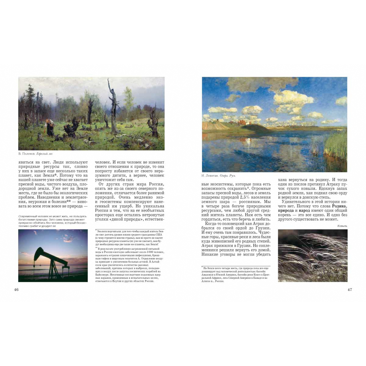 Книга содержит обширный материал о богатствах нашей страны – с севера на юг, с запада на восток. Животный мир, растения, водная стихия рассмотрены автором подробно и с учетом того, чтобы с книгой можно было работать школьникам, студентам, преподавателям школ и училищ. «Подборка» картин русских художников обогатила издание, сделало его полезным не только в информационном плане, но и в эстетическом. Учащиеся школ и училищ, преподаватели и родители – все смогут с пользой провести время вместе с нашей книгой.<BR>