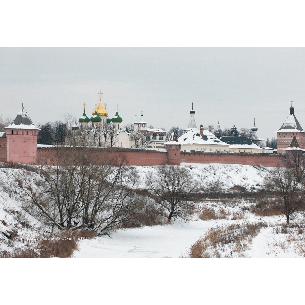Северный край города укреплен могучими стенами и башнями СвятоЕвфимиевского мужского монастыря, основанного в 1352 году как крепость для защиты от врагов. Современные стены и постройки сложились в ХVI–ХVII веках на богатые вклады царей и знати, в частности князей Пожарских. Князьполководец Дмитрий Пожарский похоронен в этом монастыре. Главный пятиглавый СпасоПреображенский собор (1594) расписан внутри по стенам и столбам великолепными фресками работы мастеров Гурия Никитина и Силы Савина. Замечательны и другие постройки монастыря: колокольня с примкнувшей звонницей, шатровая Трапезная церковь с ярусами кокошников, Проездная башня высотой 22 метра с искусным кирпичным декором.
