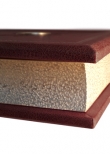 Французский цельнокожаный переплет. Ручная работа. Кожа переплетная «Elite» (Италия). Цвет «Винный». Форзац раздельный на кожаной слизуре. Обрез окрашенный и торшонированный . Тиснение - блинтовое, полиграфическая фольга. Каптал наборный шелковый, ручное плетение. Ляссе шелковая лента. Украшение переплета: ювелирные накладки - художественное литье, ручная работа - латунь, серебрение. |