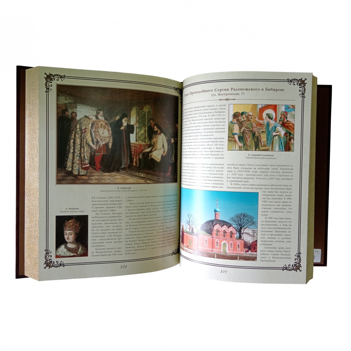 Хотя эта книга – не энциклопедия, автору удалось осветить все яркие и интересные религиозные центры столицы. Критериями для отбора были: а) давняя, насыщенная поучительными событиями история; б) связь с земной жизнью ярких исторических личностей. Переплет ручной работы. Натуральная переплетная кожа. Каптал из шелковых нитей. Ляссе шелковое. Обрез торшонированный золотой фольгой Украшение переплета: тиснение полиграфической фольгой, полноцветная печать на холсте.