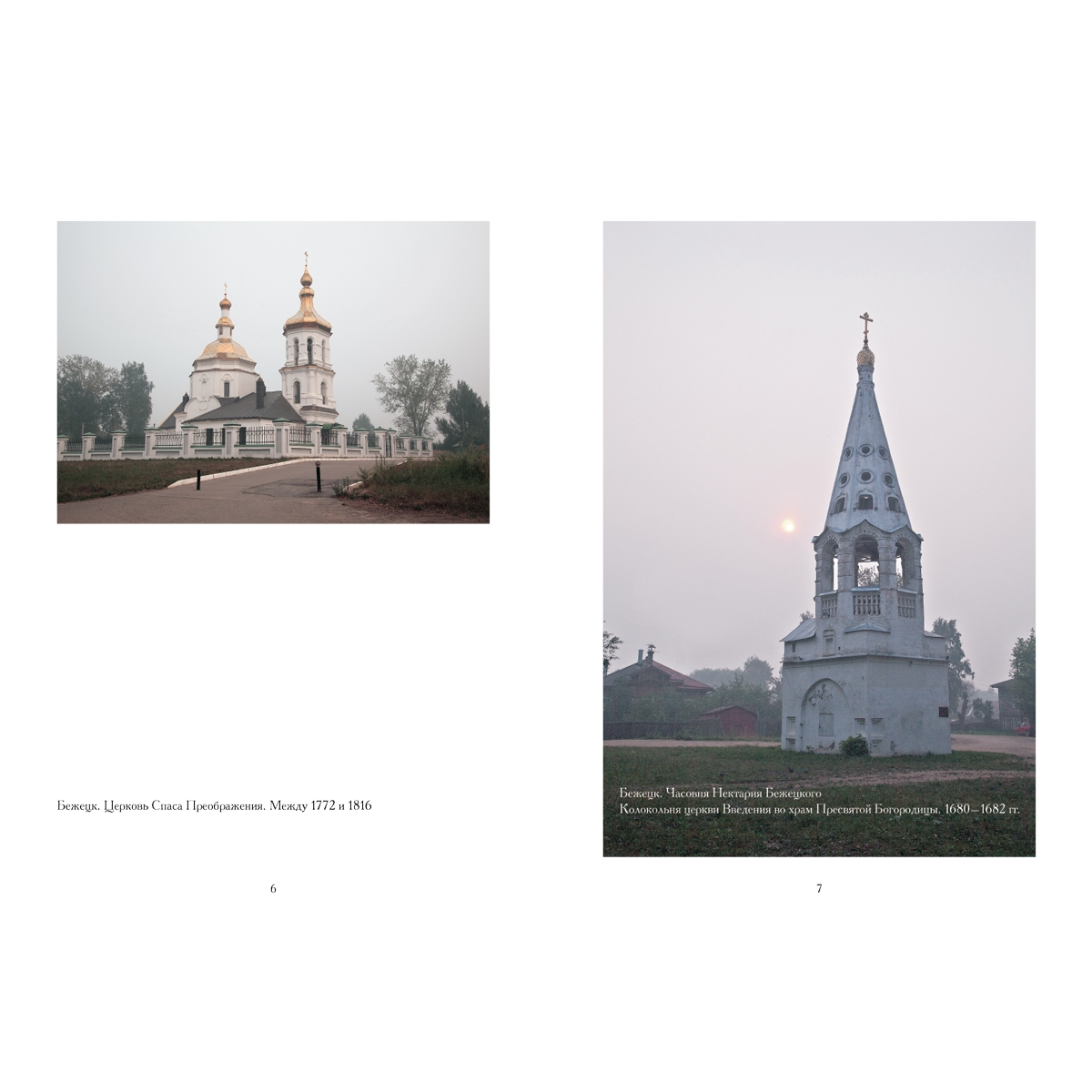 Старинные русские города Тверской области Тверь, Калязин, Кашин, Старица, Осташков и другие возникли благодаря множеству судоходных рек и озер и природному богатству этого края. С XIII века ведут свою историю многочисленные православные храмы и монастыри, которые создают неповторимое обаяние этих городов. В Тверской епархии в настоящее время числятся 35 монастырей и 836 церквей (многие пока в аварийном состоянии). Существующие храмы появились на месте деревянных XVII–XVIII веков, а также сменили, ставшие тесными, каменные храмы на более просторные и роскошные, «чтобы не хуже чем в столице». Работы поручались известным архитекторам, которые строили в модных тогда стилях барокко, классицизме и неорусском. Самые древние храмы, представленные в альбоме: церковь Покрова Пресвятой Богородицы Клобукова монастыря в Кашине, собор Успения Пресвятой Богородицы и церковь Иоанна Богослова в Старице, собор Троицы Живоначальной в Осташкове и др.