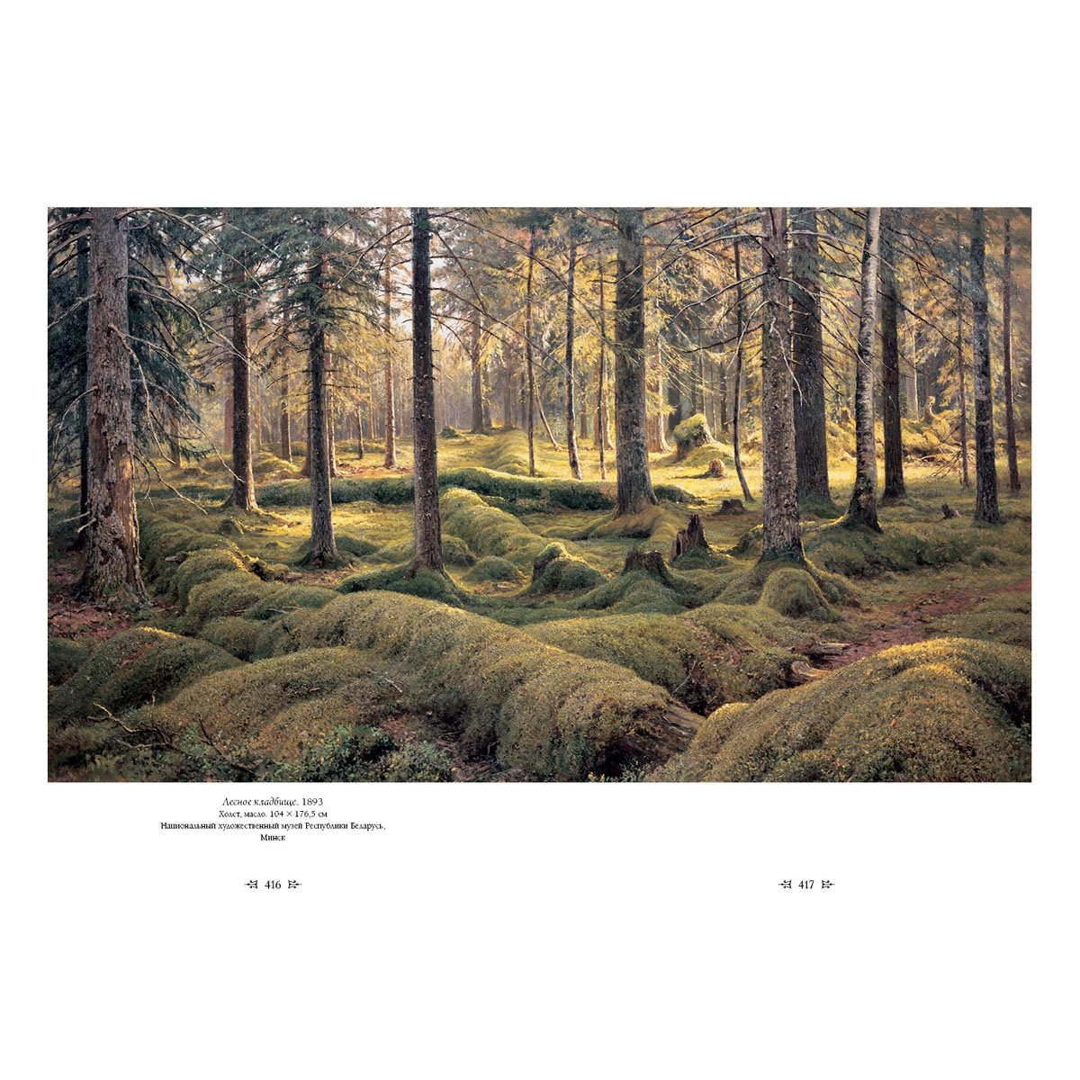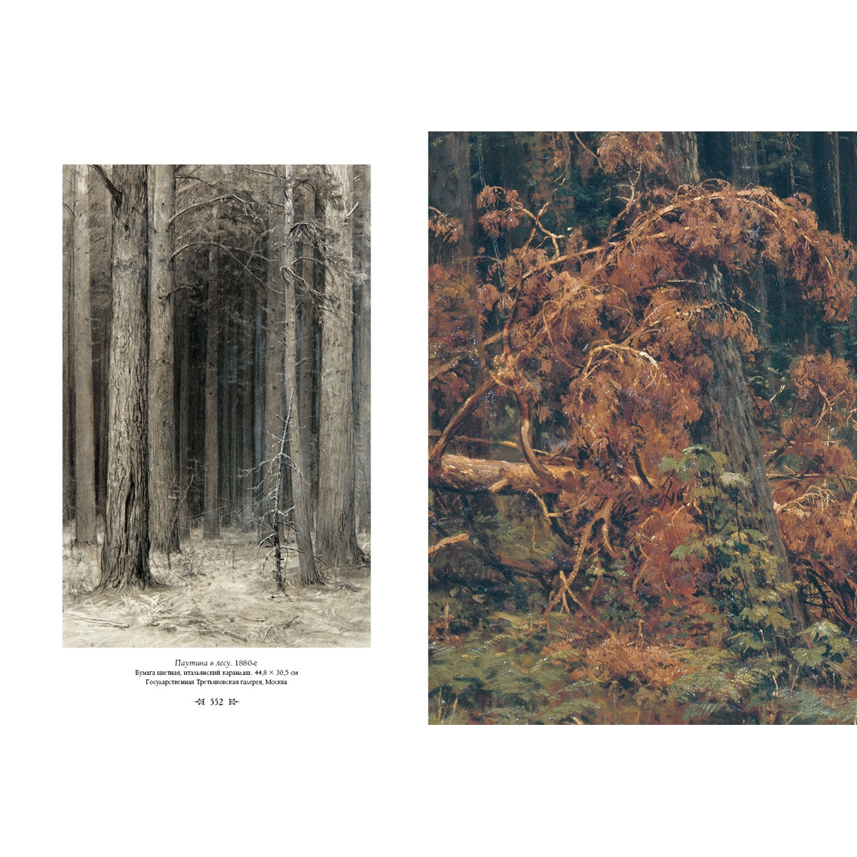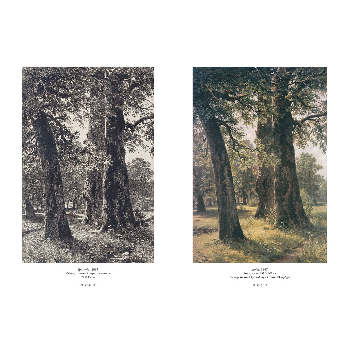 Творчество Ивана Шишкина – уникальное явление в пейзажной живописи. Он был наделен выдающимся талантом к художеству, уникальными способностями воспринимать конкретные воплощения природы, передавать в своих работах их ширь, величие и, в то же время, мельчайшие детали этих воплощений. Переплет ручной работы. Натуральная переплетная кожа. Каптал из шелковых нитей. Ляссе шелковое. Обрез торшонированный золотой фольгой. Украшение переплета: тиснение полиграфической фольгой двух цветов.