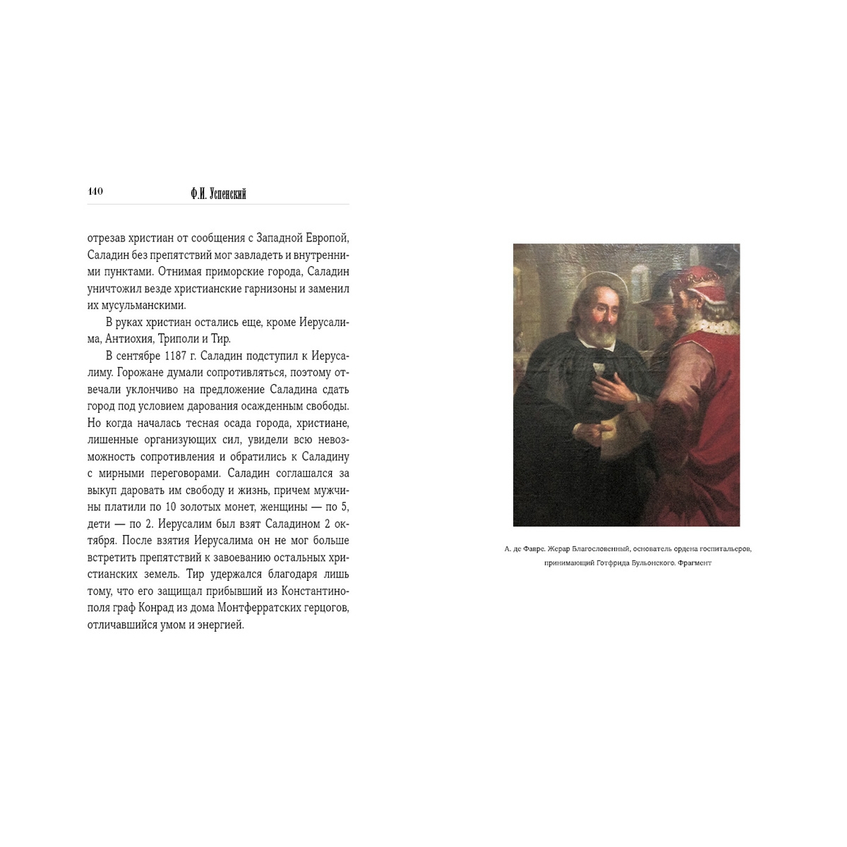 Репринтное издание. Ограниченный тираж- 10 экземпляров. Печать блока на дизайнерской бумаге с рисунками высокого разрешения. Иллюстрации проложены калькой. Эпоха крестовых походов обернулась сложностью «восточного вопроса» – борьбой Запада и Востока. Она и по сию пору существует из-за религиозных, политических и торговых интересов разных стран. Автор считал: России надлежит принять участие в его разрешении. Переплет ручной работы. Натуральная переплетная кожа. Каптал из шелковых нитей. Ляссе шелковое. Обрез торшонированный золотой фольгой. Украшение переплета: блинтовое тиснение, тиснение полиграфической фольгой.