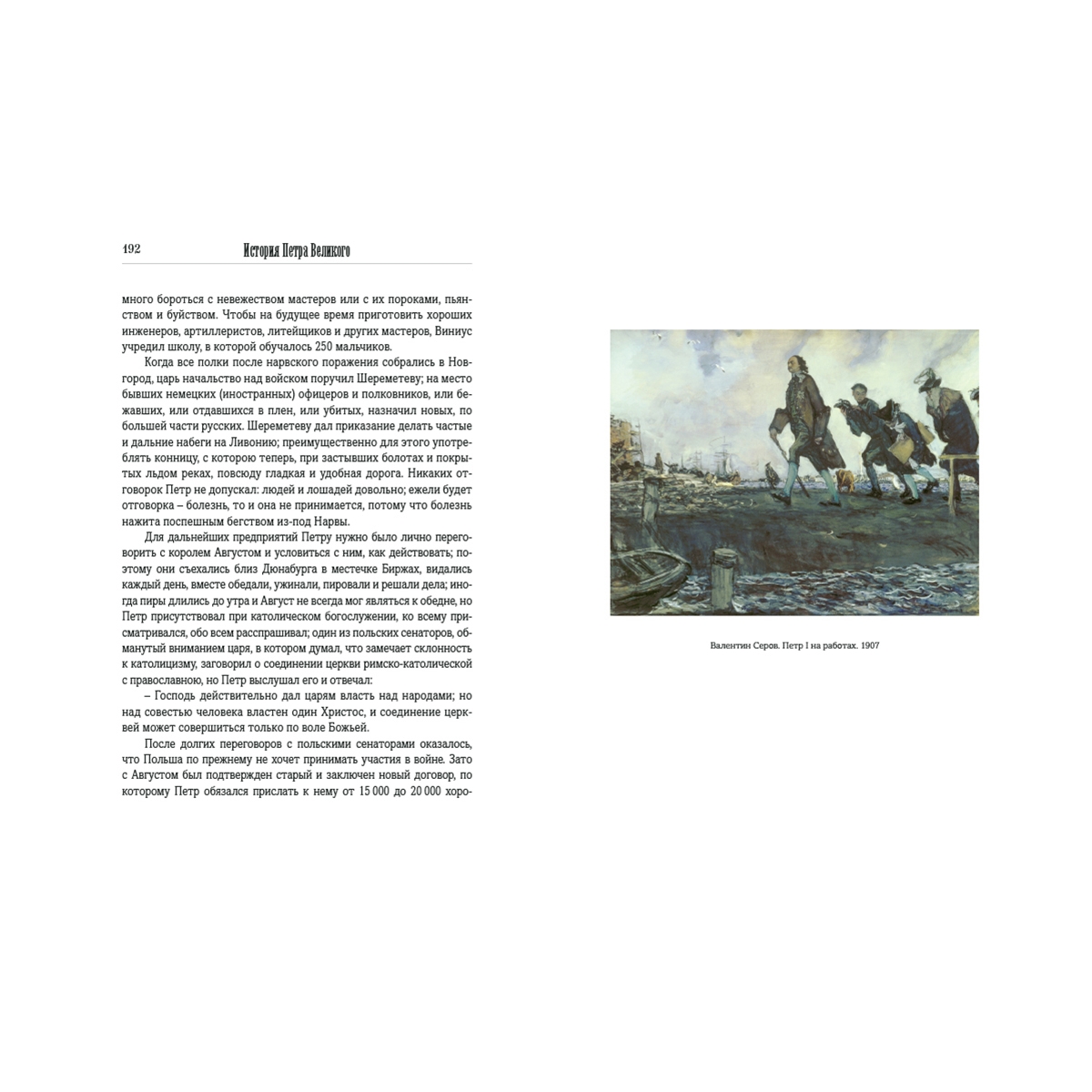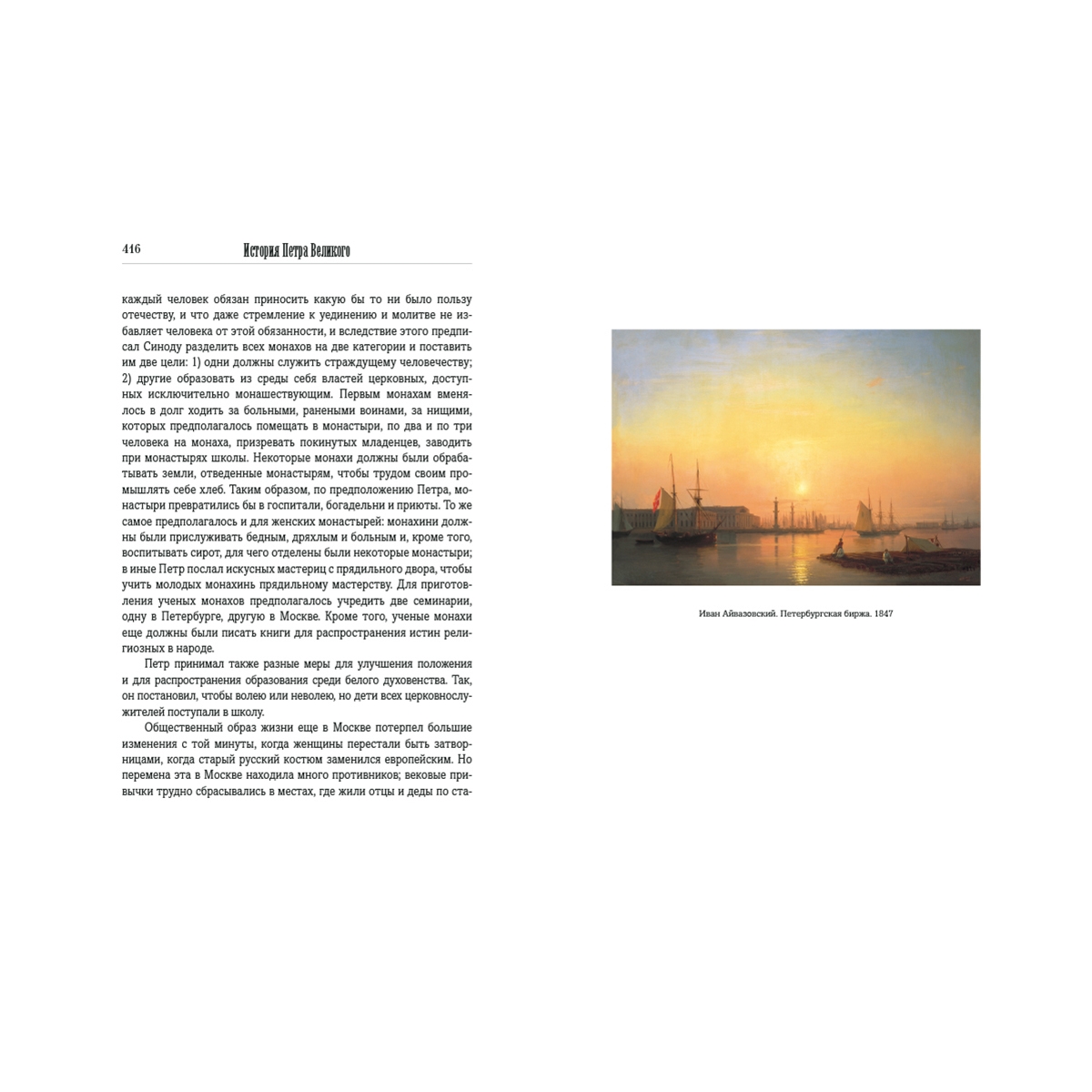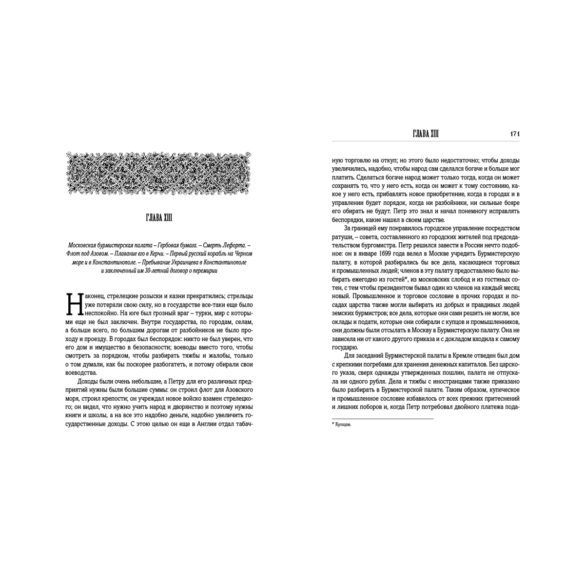 Репринтное издание. Ограниченный тираж- 10 экземпляров. Печать блока на дизайнерской бумаге с рисунками высокого разрешения. Иллюстрации проложены калькой. Труд, созданный в XIX веке, написан на основании конкретных фактов, но обо всем, что происходило в Петровскую эпоху, полную великих открытий и житейских парадоксов, рассказано живо и интересно. Подарочное издание в ручном кожаном переплете. Переплет ручной работы. Натуральная переплетная кожа. Каптал из шелковых нитей. Ляссе шелковое. Обрез торшонированный золотой фольгой. Украшение переплета: тиснение полиграфической фольгой в несколько цветов.