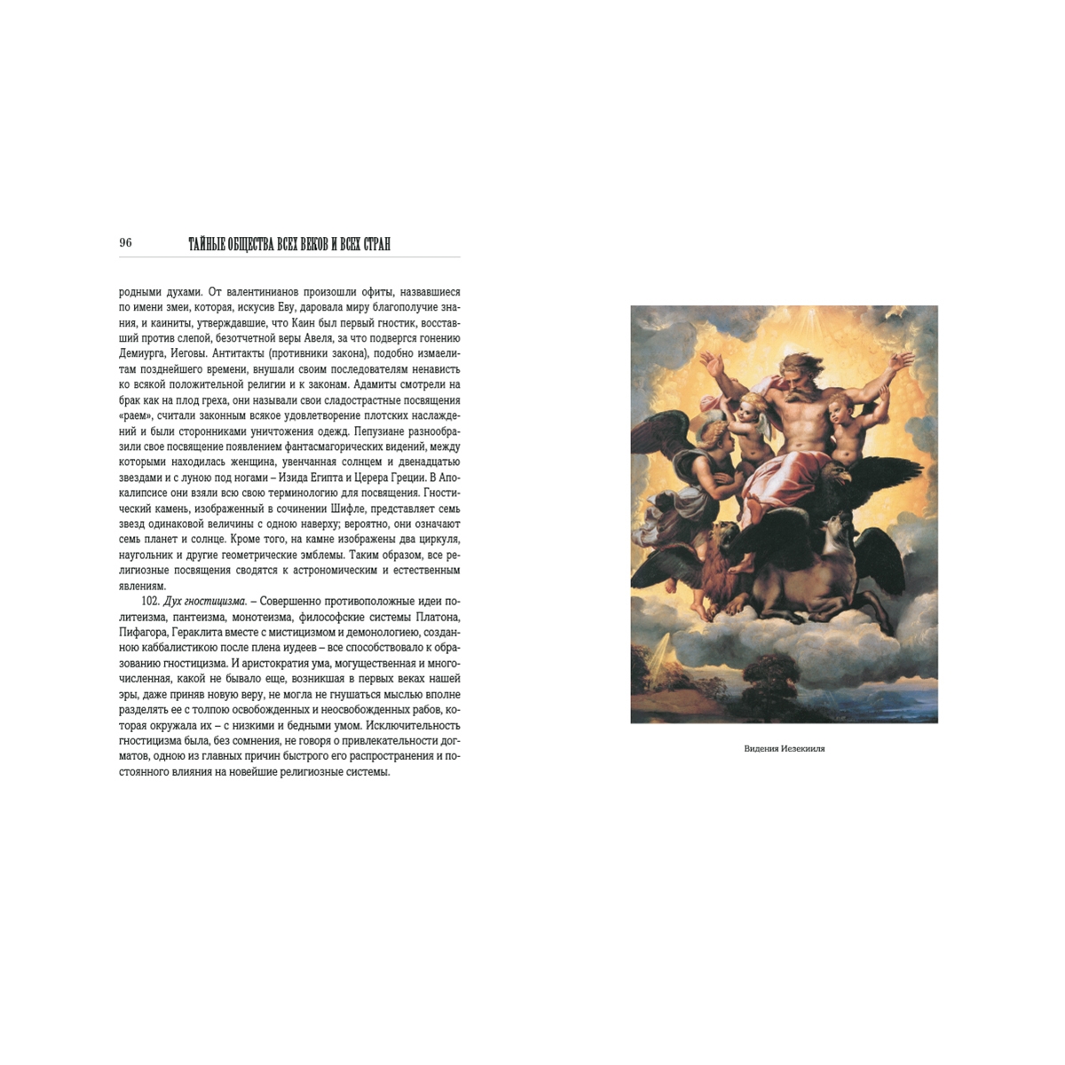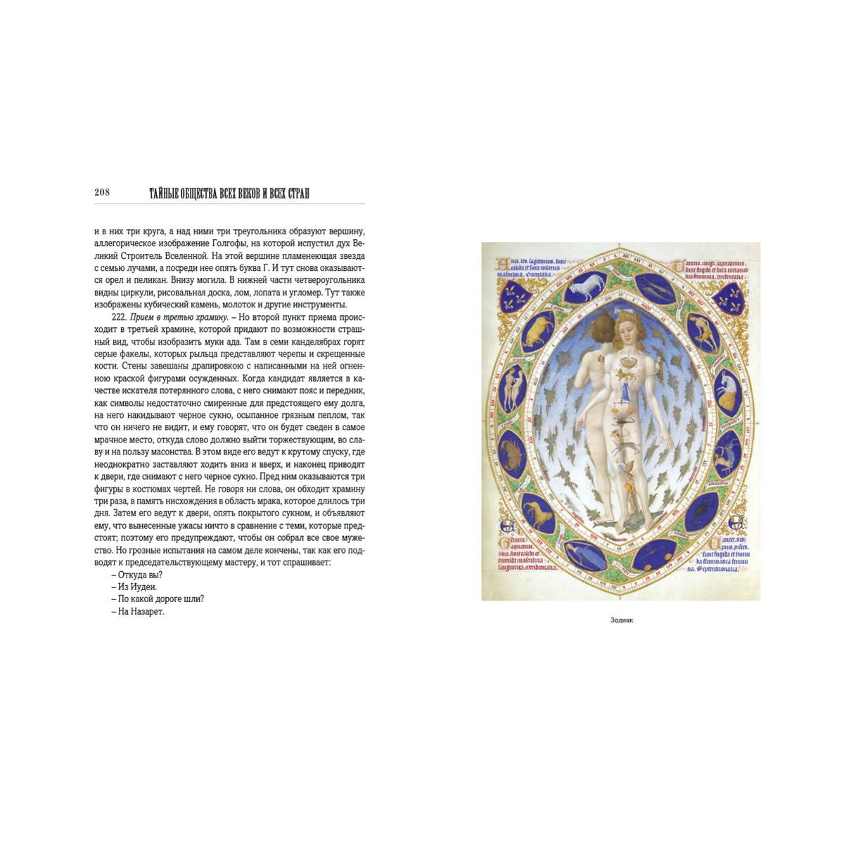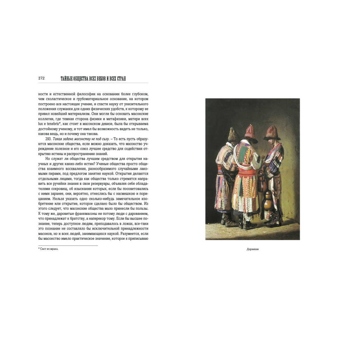 Предисловие 5 Введение 9 1. Смысл и свойство тайных обществ. 9 2. Классификация тайных обществ. 10 3. Религиозные общества. 10 4. Политические общества. 10 5. Цель политических обществ. 12 6. Религиозные тайные общества. 13 7. Самый совершенный человеческий тип. 13 8. Причины высокого умственного развития. 14 9. Первобытная культура. 15 10. Истинное учение о природе и существе. 16 11. Основные правила истинного познания древних. 17 12. Ключ к мистическому учению. 19 13. Суть мистического учения. 19 14. Как утратилось истинное знание. 19 15. Первоначальный дух мистерий и результат их упадка. 20 16. Мистерии с астрономической точки зрения. 22 17. Продолжение предыдущего. 23 18. Однообразие догматов. 23 19. Минование надобности в тайных обществах. 25 Книга I. ДРЕВНИЕ МИСТЕРИИ 28 I. Маги 31 20. Происхождение слова маг. 31 21. Древность магов. 31 22. Зороастр. 32 23. Учение Зороастра. 32 24. Поклонение огню. 35 25. Происхождение слова Deus, Бог. 35 26. Способ посвящения. 36 27. Миф о Рустаме. 38 II. Поклонение Митре 39 28. Мистерии Митры. 39 29. Происхождение культа Митры. 39 30. Догматы и пр. 40 31. Обряды посвящения. 40 32. Религии, происшедшие от магизма. 42 III. Брамины и гимнософисты 43 33. Простонародная вера в Индии. 43 34. Тайные учения. 43 35. Брама и Будда. 44 36. Аскетизм. 45 37. Гимнософисты. 46 38. Места, где совершались мистерии. 47 39. Посвящение. 47 39, а. Брам и Брама. 48 40. Неизреченное AUM. 48 41. Лингам. 49 42. Лотос. 49 IV. Египетские мистерии 51 43. Древность египетской цивилизации. 51 44. Храмы древнего Египта. 52 45. Египетские жрецы и цари. 53 46. Внешнее и внутреннее учение. 53 47. Египетская мифология. 54 48. Феникс. 55 49. Крест. 55 50. Места посвящения. 56 51. Порядок посвящения. 57 52. Мистерии Сераписа. 59 53. Мистерии Озириса. 59 54. Изида. 59 V. Превращения мифа об Изиде 61 55. Распространение египетских мистерий. 61 56. Дионисии, или вакхические мистерии. 61 57. Сабазийские мистерии. 62 58. Кабирийские мистерии. 62 59. Элевзинские мистерии. 63 60. Двери из рога и слоновой кости. 64 61. Отмена элевзинских таинств. 65 62. Тесмофории. 65 63. Цель греческих мистерий более нравственная, чем религиозная. 66 VI. Китайские и японские мистерии 67 64. Китайская метафизика. 67 65. Введение в китайские мистерии. 67 66. Параллель между буддизмом и католицизмом. 68 67. Лау-Тзе. 69 68. Новейшие китайские общества. 69 69. Японские мистерии. 70 70. Японское учение. 70 71. Лама. 71 VII. Мексиканские и перувианские мистерии 72 72. Коренные жители Америки. 72 73. Мексиканские божества. 72 74. Жестокость мексиканской религии. 73 75. Посвящение в мистерии. 74 76. Большие мистерии. 75 77. Человеческое жертвоприношение. 75 78. Облечение в окровавленные кожи. 76 79. Перувианские мистерии. 76 VIII. Друиды 78 80. Друиды, маги Запада. 78 81. Храмы. 78 82. Места посвящения. 79 83. Обряды. 79 84. Доктрины. 81 85. Политическая и судебная власть. 81 86. Жрицы. 82 87. Уничтожение. 83 IX. Скандинавские мистерии 84 88. Дротты. 84 89. Обряды. 85 90. Доказательства астрономического значения. 85 Книга II. ЭМАНАЦИОНИСТЫ 88 I. Каббалистика 89 91. Ее происхождение. 89 92. Ее развитие. 89 93. Время возникновения каббалистики. 90 94. Книга Иезирах. 90 95. Разные роды каббалистики. 91 96. Видения Иезекииля. 91 97. Сотворение мира из Ничего. 92 98. Распространение каббалистических идей. 93 II. Гностики 94 99. Характер гностицизма. 94 100. Доктрины. 94 101. Развитие гностицизма. 95 102. Дух гностицизма. 96 Книга III. РЕЛИГИЯ ЛЮБВИ 97 I. Сыны вдовы 99 103. Происхождение религии любви. 99 104. Манес. 100 105. Манихеизм. 100 106. Жизнь Манеса. 101 107. Развитие манихеизма. 101 108. Учение. 102 109. Распространение 