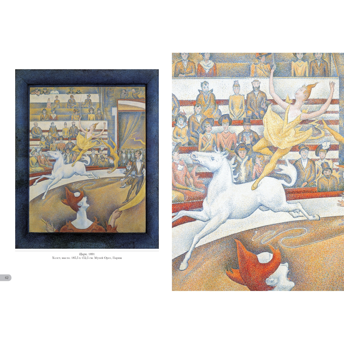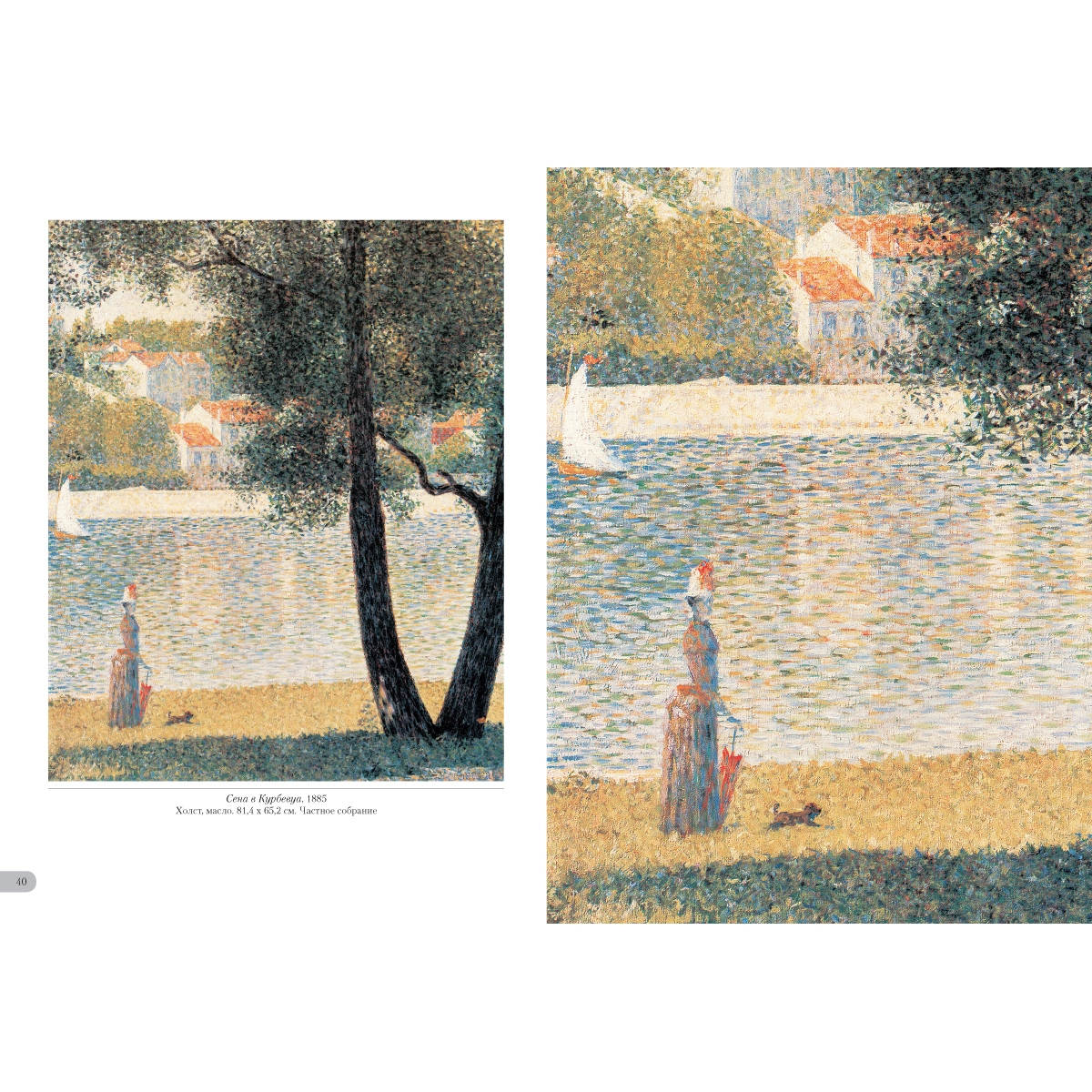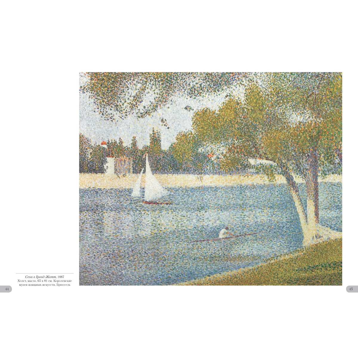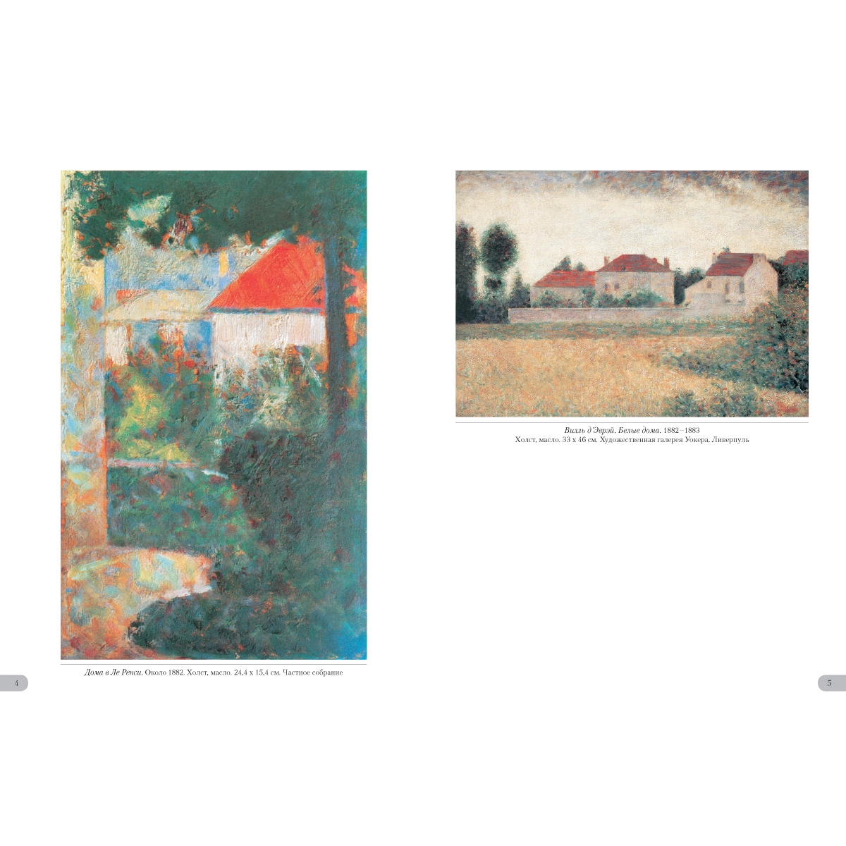 Жорж Сёра создавал картины с помощью научного и, как он считал, единственно возможного метода. Основоположник пуантилизма клал на полотно мазки чистых красок близко друг к другу, отчего возникал особенный цветовой эффект – глубокий и разнообразный. Он изгонял из своих работ всякое движение, долго трудился над композицией. И все для того, чтобы «зафиксировать вечность», а не «запечатлеть мгновение», как это делали импрессионисты. Новая система, придуманная Сёра, его и прославила. УКАЗАТЕЛЬ ПРОИЗВЕДЕНИЙ «Мария» в Онфлёре. 1886 50 Вилль д'Эврэй. Белые дома. 1882—1883 5 Воскресная прогулка на острове Гранд¬-Жатт. 1883–1886 14 Воскресная прогулка на острове Гранд¬-Жатт. Этюд. 1884–1885 30–31 Гавань в Онфлёре. 1886 51 Гранд-¬Жатт. Этюд. 1885 32–33 Дома в Ле Ренси. Около 1882 4 Жнец. 1881–1882 6 Канал в Гравелине. 1890 57 Канал в Гравелине. Вид в сторону моря. 1890 56 Канкан. 1889–1890 66 Купание в Аньере. 1884 8 ЛаМанш в Гранкампе. 1885 46–47 Лес в Понтобере. Около 1881–1882 7 Маяк в Онфлёре. 1886 53 Мыс дю Ок в Гранкане. 1885 48 Натурщицы. 1887–1888 68 Обнаженная натурщица. 1887 70 Парад-¬алле. 1887–1888 64–65 Пасмурная погода, Гранд¬-Жатт. 1888 52 Пейзаж в Гранд¬-Жатт. 1884 38–39 Пейзаж с фигурами. Этюд. 1884–1885 36–37 Пляж Ба Бутен в Онфлёре. 1886 49 Портан-¬Бессен. 1886 55 Портан-¬Бессен. Воскресенье. 1888 54 Пудрящаяся молодая женщина. 1888–1890 60 Пудрящаяся молодая женщина. 1889 59 Река Сена в Гранд-¬Жатт. 1888 43 Сена в Гранд¬-Жатт. 1887 44–45 Сена в Курбевуа. 1885 40 Сена. Берег реки. 1883 34–35 Утренняя прогулка. Этюд. 1885 42 Цветы в вазе. 1878–1879 3 Цирк. 1891 62 Эйфелева башня. 1889 58