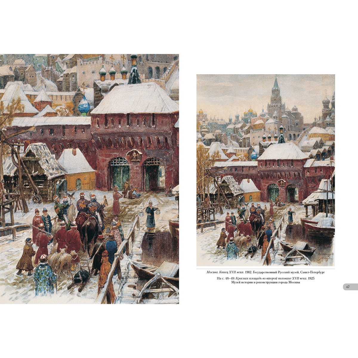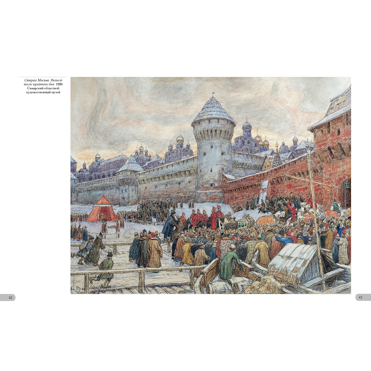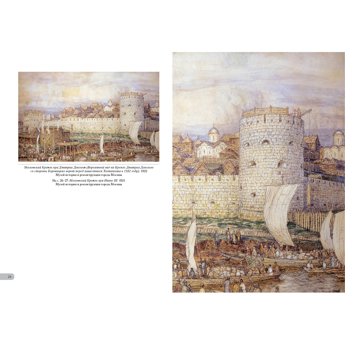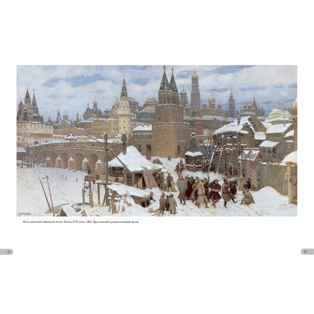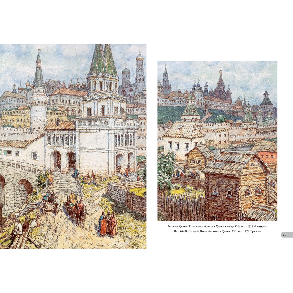 - Список художников и их полотен или именной указатель (если есть) УКАЗАТЕЛЬ ПРОИЗВЕДЕНИЙ В Московском Кремле. 1885…20–21 Всехсвятский каменный мост. Конец XVII века. 1901 …44–45 Гонцы. Ранним утром в Кремле. 1913 …16 Движение пешеходов и экипажей на Воскресенском мосту в XVIII веке. 1926…65 Книжные лавочки на Спасском мосту в XVIII веке. 1916…53 Красная площадь во второй половине XVII века. 1925…48–49 Крытый Воскресенский мост в конце XVI века. 1921. Фрагмент…54–55 Лубяной торг на Трубе в XVII веке. 1926 …66 Медведчики (Развлечение). Старая Москва. 1911…15 Москва середины XVII столетия. Москворецкий мост и Водяные ворота. 1900…40 Москва. Конец XVII века. 1902…47 Москва. Конец XVII столетия. На рассвете у Воскресенских ворот. 1900…38 Московский застенок. Конец XVI века (КонстантиноЕлиненские ворота московского застенка на рубеже XVI и XVII веков). 1912…36 Московский Кремль при Иване III. 1921…26–27 Московский Кремль при Иване Калите. 1921. Фрагмент…8–9 Московский Кремль при Дмитрии Донском (Вероятный вид на Кремль Дмитрия Донского со стороны Боровицких ворот перед нашествием Тохтамыша в 1382 году). 1922 …22 Мясницкие ворота. Уличное движение в XVII веке. 1926…68–69 Оборона Москвы от хана Тохтамыша. XIV век. 1918…32 Основание Москвы. Постройка первых стен Кремля Юрием Долгоруким в 1156 году. 1917 …4–5 Площадь Ивана Великого в Кремле. XVII век. 1903 …62 Расцвет Кремля. Всехсвятский мост и Кремль в конце XVII века. 1922 …56–57 Старая Москва. 1896 …34–35 Старая Москва. Разъезд после кулачного боя. 1900 …42–43 Строительство деревянных стен Кремля. XII век. 1903 …6 Татары идут. Конец XVI века (Идут! Набег татар на Москву). 1910 …33 ТроицеСергиева лавра. 1908–1913 …10