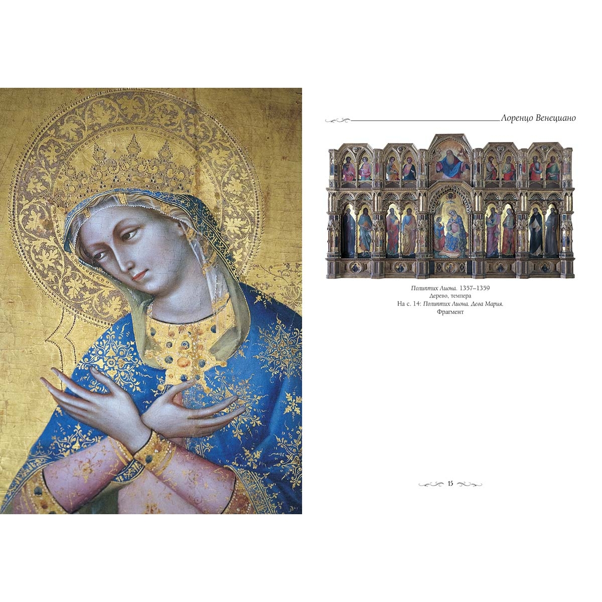- Список художников и их полотен или именной указатель (если есть) УКАЗАТЕЛЬ ПРОИЗВЕДЕНИЙ АЛЬБЕРЕНЬО, ЯКОБЕЛЛО Апокалипсис. Полиптих. 1360–1390 17 БАЗАИТИ, МАРКО Моление о чаше со святыми. 1510 или 1516 61 Призвание апостолов. 1510 63 Святой Георгий, убивающий дракона. 1520 62 БАСТИАНИ, ЛАЗЗАРО Рождество со святыми 31 БЕЛЛИНИ, ДЖЕНТИЛЕ Исцеление Пьетро деи Лодовики. Около 1501 40 Процессия на площади Святого Марка. 1496 38–39 Чудо реликвии Святого Креста на мосту Сан-Лоренцо. 1500 41 БЕЛЛИНИ, ДЖОВАННИ Мадонна с деревцами. 1487 37 Мадонна с Младенцем, Иоанном Крестителем и святой. 1500–1504 36 Мадонна со святыми. Алтарь Сан-Джоббе 1478–1488 33 Пьета. Около 1505 34–35 БЕЛЛИНИ, ЯКОПО Мадонна с Младенцем. Около 1455 26 БИССОЛО, ФРАНЧЕСКО Сретение Господне со святыми 64–65 БОКАЧЧИНО, БОКАЧЧО Мадонна с Младенцем и святыми. Около 1505 60 ВЕРОНЕЗЕ, БОНИФАЦИО Богач и Лазарь. Около 1540. Фрагмент 68–69 ВЕРОНЕЗЕ, ПАОЛО Аллегория битвы при Лепанто. Около 1572 89 Благовещение. 1578 90–91 Мадонна на троне с Младенцем и святыми. 1562–1564 92 Мистическое обручение святой Екатерины. Около 1575 93 Пир в доме Левия. 1573 96–97 Святой Иероним. 1566 88 Святой Петр посещает святую Агату в темнице. 1566. Фрагмент 56–57 ВИВАРИНИ, АЛЬВИЗЕ Мадонна с Младенцем и святыми. 1480. Фрагменты 28, 29 ВИВАРИНИ, АНТОНИО Мадонна с Младенцем на троне со святыми 1446. Триптих 22–23 ВИВАРИНИ, БАРТОЛОМЕО Рождество со святыми. Полиптих. 1475 25 ДЕЛЬ ФЬОРЕ, ЯКОБЕЛЛО Правосудие с архангелами Гавриилом и Михаилом. 1421. Левая панель 20 Правосудие с архангелами Гавриилом и Михаилом. 1421. Правая панель 21 Правосудие с архангелами Гавриилом и Михаилом. 1421. Центральная панель 19 ДЖАКОПО ДА МОНТАНЬЯНА Архангел Гавриил. Благовещение. 1494–1497. Фрагмент 42 Дева Мария. Благовещение. 1494–1497. Фрагмент 43 ДЖОВАННИ АГОСТИНО ДА ЛОДИ Омовение ног. 1500 58 ДЖОВАННИ Д,АЛЕМАНЬЯ Мадонна с Младенцем на троне со святыми 1446. Триптих 22–23 ДЖОВАННИ ДА БОЛОНЬЯ Мадонна дель Умилта со святыми и членами Братства Иоанна Евангелиста. 1381–1383 16 ДЖОРДЖОНЕ Гроза. Около 1505 51 КАРИАНИ, ДЖОВАННИ Мужской портрет. 1510–1520 67 КАРПАЧЧО, ВИТТОРЕ Прибытие святой Урсулы в Кельн. 1490 52 Чудо реликвии Святого Креста на мосту Риальто (Исцеление бесноватого на Риальто). 1494–1495 53 Принесение во храм. 1510 54 КАТАРИНО Коронация Марии с ангелами. 1375 12 КАТЕНА, ВИНЧЕНЦО Мадонна с Младенцем и святыми. 1470–1480 50 ЛОНГИ, АЛЕССАНДРО Портрет семейства прокуратора Луиджи Пизани. Около 1758 107 ЛОНГИ, ПЬЕТРО Аптекарь. Около 1752 109 Урок танцев. Около 1741 108 ЛОРЕНЦО ВЕНЕЦИАНО Полиптих Лиона. 1357–1359 15 Святой Стефан. Полиптих. Фрагмент 13 МАНСУЭТИ, ДЖОВАННИ ДИ НИККОЛО Святой Себястьян со святыми 59 МАНТЕНЬЯ, АНДРЕА Святой Георгий. Около 1446 30 МАРЦИАЛЕ, МАРКО Ужин в Эммаусе. 1506 44 НИКОЛО ДИ ПЬЕТРО Мадонна с Младенцем и ангелами и донатором. 1394. Фрагмент 18 ПАОЛО ВЕНЕЦИАНО Коронация Марии. Полиптих. Около 1350 9 ПОРДЕНОНЕ Святой Лоренцо Джустиниани со святыми. 1532 66 ПЬЕРО ДЕЛЛА ФРАНЧЕСКА Святой Иероним с донатором. Около 1450 27 РИЧЧИ, СЕБАСТЬЯНО Диана и Каллисто. 1712–1716 106 САРАЧЕНИ, КАРЛО Мария Магдалина. 1613 103 СТРОЦЦИ, БЕРНАРДО Портрет дожа Франческо Эриццо. Фрагмент 105 Портрет рыцаря Джованни Гримани. Около 1640 104 Трапеза в доме Симона. Около 1630. Фрагмент 100–101 ТИНТОРЕТТО, ЯКОПО Оплакивание Христа. Около 1560 87 Похищение тела святого Марка. 1562–1566 80 Принесение во храм. 1550–1555 81 Распятие. Фрагмент 86 Святой Марк спасает сарацина. 1562–1566 82 Сотворение животных. 1551–1552 78–79 Чудо святого Марка. 1548 83 ТИЦИ
