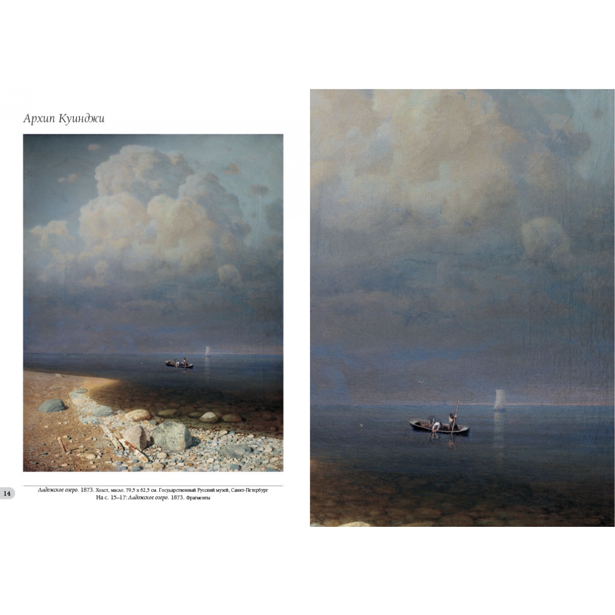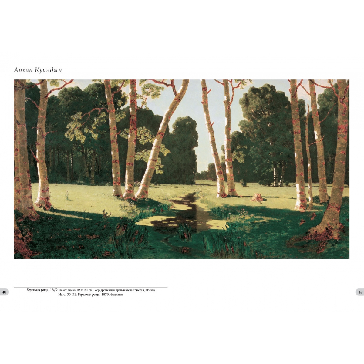 О его искусстве так отозвался И.Е. Репин: «Иллюзия света была его богом, и не было художника, равного ему в достижении этого чуда живописи». Картины Архипа Куинджи производили неизгладимое впечатление на его современников, но и до сих пор зрителей завораживают его полотна своим цветом и светом, таинственностью изображенных им природных явлений. В альбоме содержится большое количество увеличенных фрагментов картин, позволяющих разглядеть в деталях удивительную живопись Архипа Куинджи. - Список художников и их полотен или именной указатель (если есть) Ай-Петри. Крым. 1898–1908 131 Ай-Петри. Крым. 1898–1908. Фрагмент 132–133 Берег моря со скалой. 1898–1908 144–145 Березовая роща (Лес). 1880-е 80–81 Березовая роща. 1879 20 Березовая роща. 1879 48–49 Березовая роща. 1879. Фрагмент 50–51 Березовая роща. 1901 113 Березовая роща. 1901. Фрагмент 114–115 В Крыму. 1900–1905 116–117 В роще зимой. Этюд 74–75 В степи у Днепра. Конец 1870 140 Вечер на Украине. 1878–1901 96–97 Вечер на Украине. 1878–1901. Фрагмент 98–99 Вечер 82 Вечер. Фрагмент 83 Вечер. 1878 46 Вид Исаакиевского собора при лунном освещении (Исаакиевский собор при луне). 1869 6–7 Вид Исаакиевского собора при лунном освещении (Исаакиевский собор при луне). 1869. Фрагмент 8–9 Восход солнца. 1890–1895 157 Восход солнца. 1890–1895. Фрагмент 158–159 Голова крестьянина-украинца в соломенной шляпе. 1890–1895 112 Горный склон. 1887 78 Дарьяльское ущелье. 1890–1895 118–119 Деревня. Вечер. Конец 1870-х – 1880–е 32 Днепр утром. 1881 64–65 Днепр. 1901 66 Днепр. 1901. Фрагмент 67 Дубок. Между 1898 и 1908 108 Дубы. 1900–1905 106–107 Забытая деревня. 1874 30–31 Закат в лесу 92–93 Закат в степи на берегу моря. 1898–1908 102–103 Закат в степи. 1900 126–127 Закат. 1890–1895 79 Зима. 1890–1895 90 Зима. Закат 153 Кавказские горы 147 Кипарисы на берегу моря. Крым. 1887 76–77 Красный закат. 1905–1908 104 Крым. Море 2 Крым. Узун-Таш 120 Ладожское озеро. 1873 14 Ладожское озеро. 1873 15–17 Лес зимой 154 Лесные дали. 1900-е 141 Лов рыбы на Черном море. 1900 122–123 Лунная ночь 172–173 Лунная ночь на Днепре. 1880 56–57 Лунная ночь на Днепре. 1880. Фрагменты 58–59 Лунная ночь на Днепре. 1882 62 Лунная ночь на Днепре. 1882. Фрагмент 63 Лунная ночь на море. Между 1876 и 1890 155 Лунная ночь. 1898–1908 109 Море 105 Море 136 Море. Фрагмент 137 Море 148–149 Море. Крым. Этюд. 1898–1908 110–111 Москва. Вид на Кремль со стороны Москворецкого моста. 1882 68 Москва. Вид на Кремль со стороны Москворецкого моста. 1882. Фрагмент 69 Москва. Вид на Москворецкий мост, Кремль и храм Василия Блаженного. 1882 73 На Валааме. 1872 18 На Валааме. 1872. Фрагмент 19 На острове Валааме (Вид на Валааме). 1873 24–25 На острове Валааме (Вид на Валааме). 1873. Фрагменты 26–29 Ночное. 1905–1908 168–169 Ночное. 1905–1908. Фрагменты 170–171 Ночь на Днепре. 1882 60–61 Облака. 1900–1905 146 Облако 125 Облако. 1898–1908 142–143 Облако. Около 1896 128 Облако. Около 1896. Фрагмент 129 Облако. Этюд. 1895 164 Облако. Этюд. 1895. Фрагмент 165 Осенняя распутица. 1870 10 Осенняя распутица. 1870. Фрагменты 11–13 Осень. 1890–1895 70–71 После дождя 5 После дождя. 1879 52–53 После дождя. 1879. Фрагмент 54–55 После дождя. Радуга. 1900–е 124 Прибой в дождливый день. 1890–е 130 Пятна лунного света в лесу. Зима. 1898–1908 88 Пятна лунного света в лесу. Зима. 1898–1908. Фрагмент 89 Радуга. 1900–1905 160 Радуга. 1900–1905. Фрагменты 161–163 Радуга. Этюд. 1900–е 166–167 Ранняя весна. 1895 72 Розовое облако 121 Север. 1879 21 Север. 1879. Фрагмент 22–23 Снежные вершины. Кавказ. 1885–1890 152 Солнечные пятна на инее. 1876–1890 84 Солнечные пятна на инее. 1876–1890. Фрагмент 85 Солнечный день в лесу 33 Сосна 135 Степь (Нива). 1875 38–39 Степь (Нива). 1875. Фрагмент 40–41 Степь вечером 138