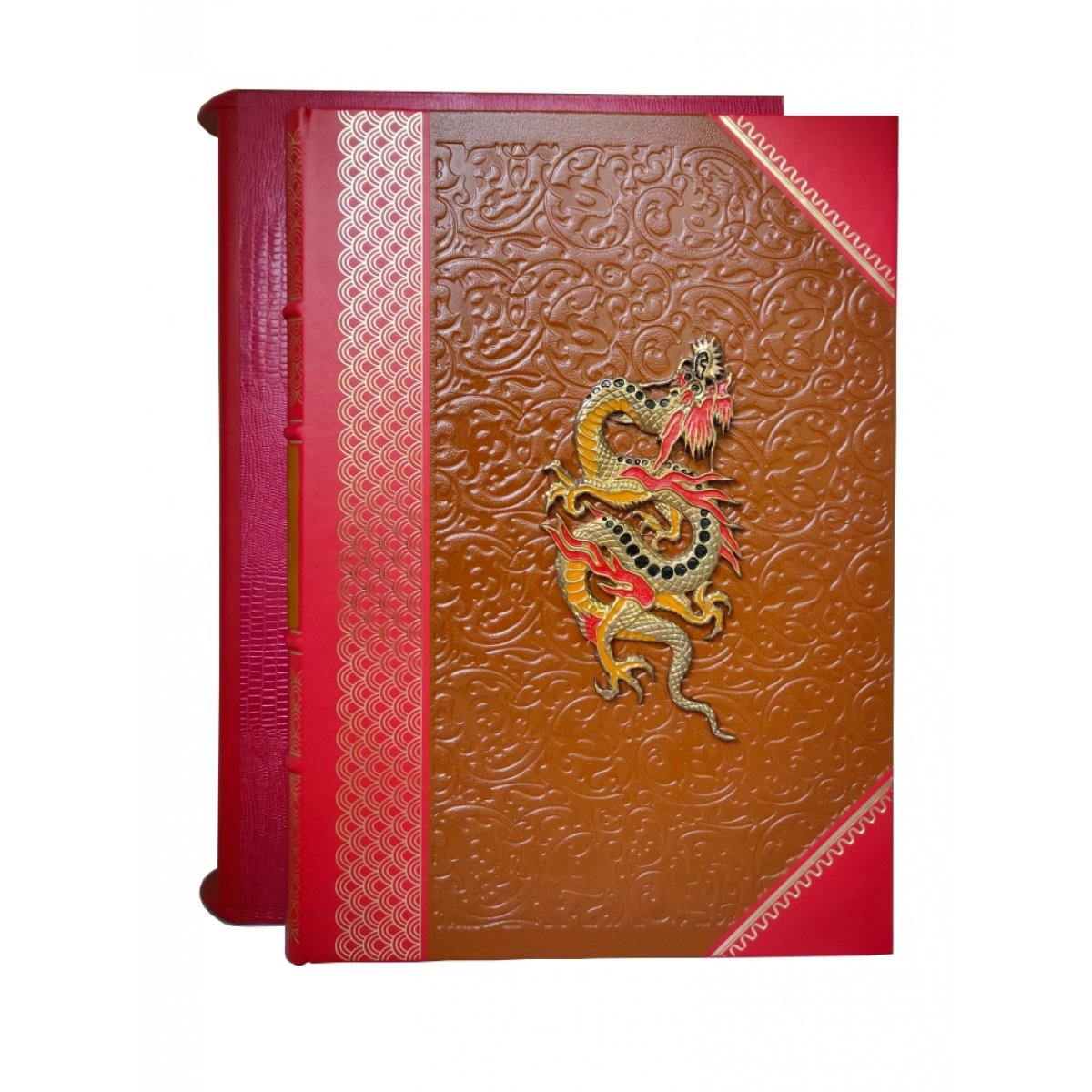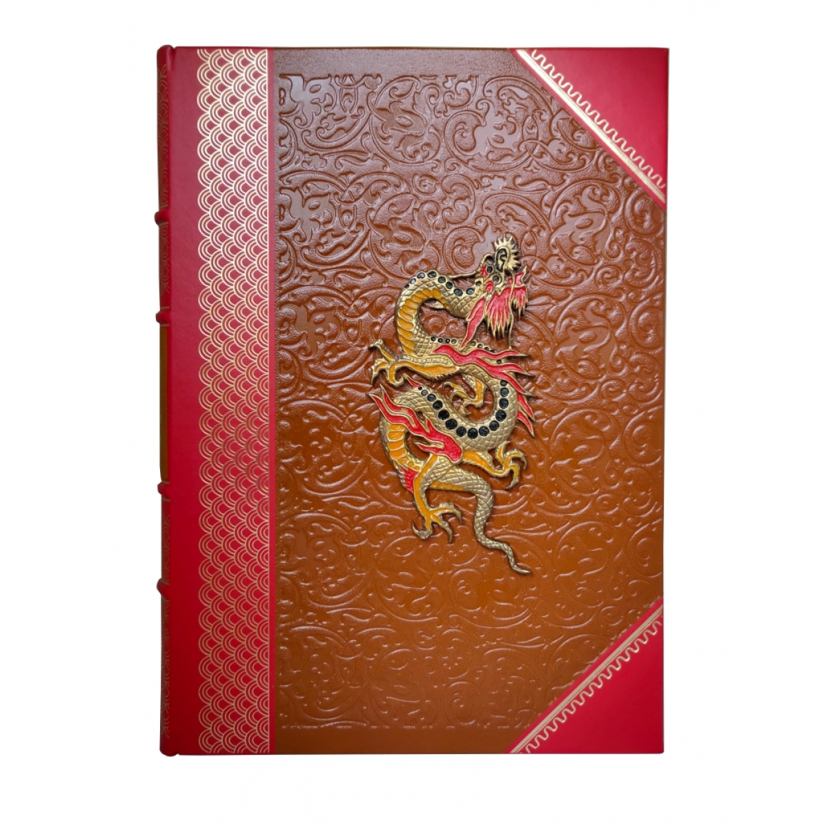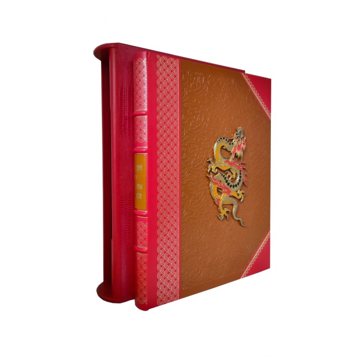Подарочное издание в ручном переплете из натуральной кожи. Сотни цветных иллюстраций - старинные гравюры и другие произведения китайского изобразительного искусства - наиболее ярко отражают древнюю культуру Поднебесной империи. Издание включает жизнеописание Конфуция, философский трактат Лунь-юй, содержащий афоризмы и высказывания знаменитого философа, разнообразные комментарии и варианты перевода Французский цельнокожаный переплет ручной работы на шнурах. Натуральная переплетная кожа. Форзац составной на кожаной слизуре. Дизайнерская бумага. Каптал двойной наборный, ручное плетение из шелковых нитей. Обрез торшорированный золотой фольгой. Ляссе шелковое. Тиснение полиграфической фольгой. Ювелирная накладка-художественное литье, эмаль.