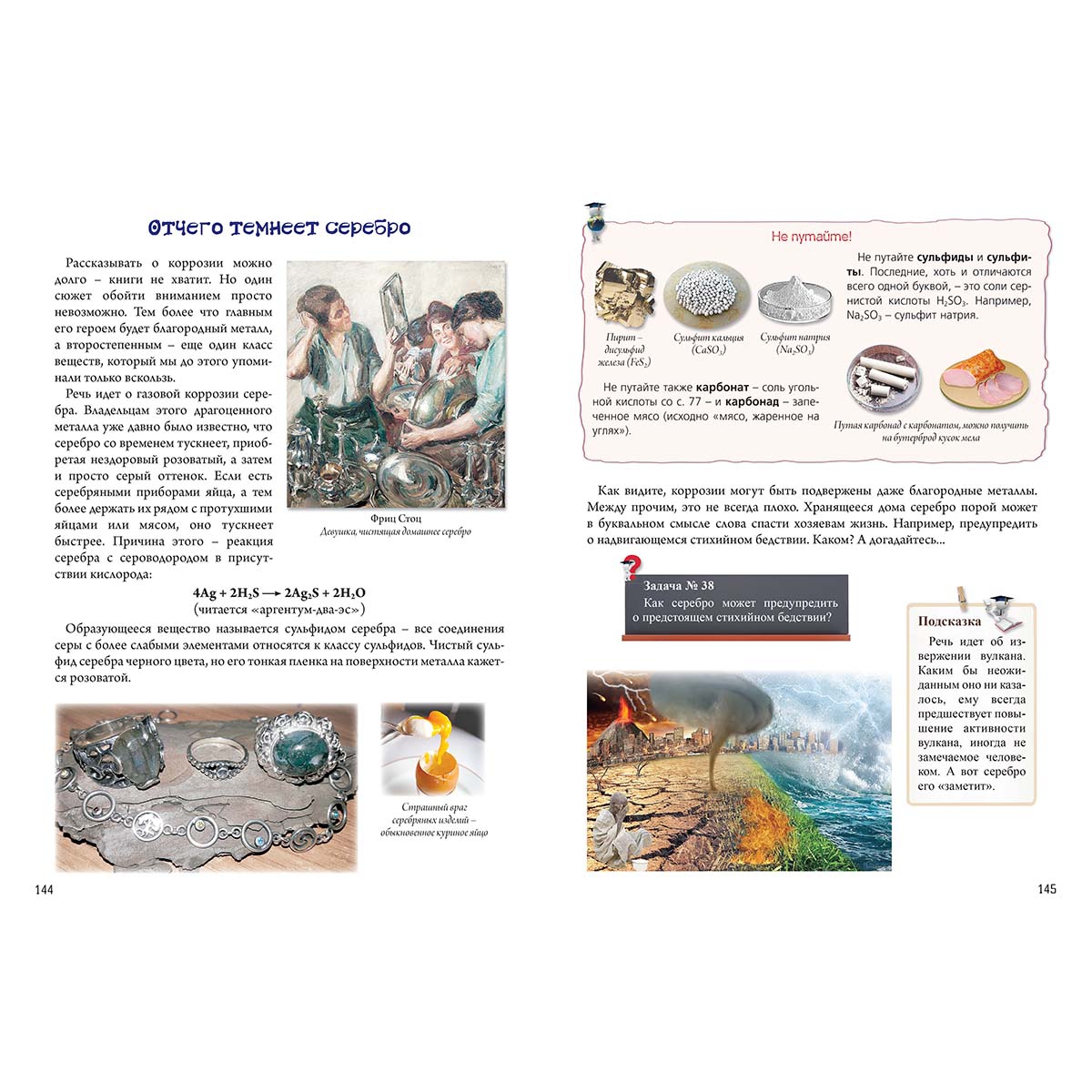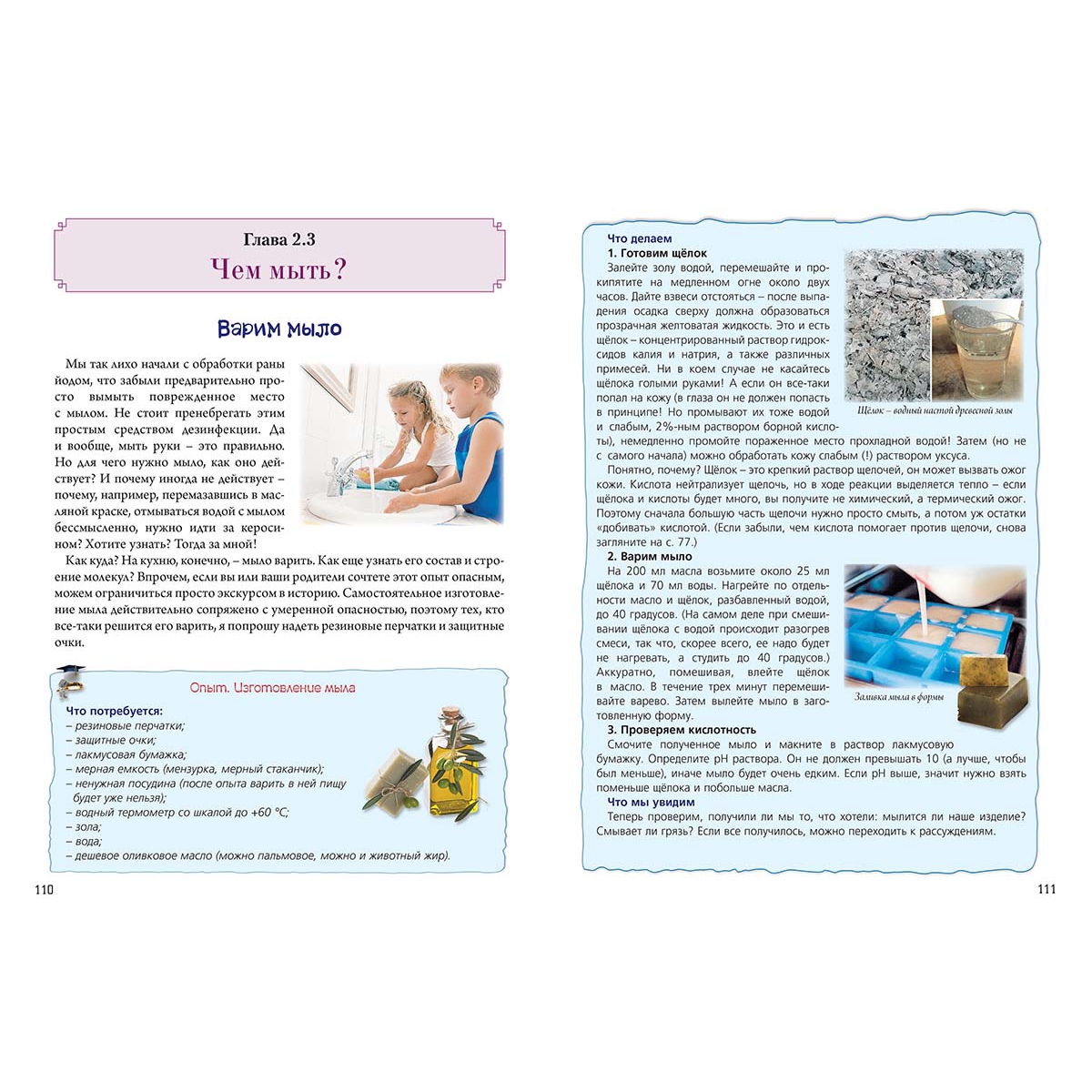 Очередная книга серии «Русская школа» адресована в первую очередь тем, кто начинает изучать химию или хочет познакомиться с ее основами. Однако и те, кто уже знаком с этой наукой, найдут в книге много нового и интересного. Она не только доступно и понятно объясняет сложные законы природы (в том числе за счет наглядных схем), помогает провести ряд интересных опытов, но и раскрывает химическую суть многих бытовых явлений: от отложений накипи в чайнике до выпекания пирогов и застывания краски. Большое внимание уделяется тому, как знание химии помогает охранять окружающую среду: уменьшать выбросы углекислого газа и вредных веществ, экономить энергетические и другие ресурсы. Кроме большого фактического материала, читателям предлагается более 60 задач, охватывающих различные разделы химии и области пересечения ее с физикой, биологией, геологией и даже миром искусства. К каждой задаче дается подсказка и развернутый ответ-объяснение. С этим необычным учебником химия больше никогда не покажется вам «сложным» или «скучным» предметом. Здесь вы найдете: • простые и понятные объяснения сложных явлений: от химической связи и окислительно-восстановительных реакций до полимеризации, изменения цвета и многих других химических процессов; • наглядные схемы, позволяющие легко разобраться в самых непростых законах мироздания; • увлекательные творческие задачи, снабженные подсказками и даже развернутыми ответами; • интересные и безопасные опыты, а также подробный и веселый рассказ о технике проведения не самых безопасных; • химические основы привычных бытовых явлений от выпечки разного вида теста до высыхания краски, застывания цемента и сжигания мусора; • рассказ о том, как химия помогает охранять окружающую среду, бороться с глобальным потеплением, уменьшать вредные выбросы, а также о том, была ли жизнь в «старое доброе время» химически чистой. А еще кроме собственно химии, вас ждут многочисленные «экскурсии» в область физики, биологии, геологии, искусствоведения и других наук. Содержание Часть 1. ЧТО ТАКОЕ ХИМИЯ? 3 Глава 1.1. Мороз по коже! 4 Пока горит свеча... 4 Береги глаз смолоду 12 Что мы пьем? 14 Глава 1.2. Молекулы и атомы 18 Первое знакомство 18 Кислород. Приятно познакомиться 21 Элементы и простые вещества 26 Глава 1.3. Чего хотят атомы 31 Печем кексы 31 Химический язык 36 Фуллерен и три углерода 45 Глава 1.4. Оксиды и кислоты 50 Оксид водорода и немного физики 50 Моя первая кислота 58 В мире грабителей 62 Пушонка и кипелка 70 Почему щелочь едкая? 73 «Кто кого сборет?» 76 Разгадка тайны накипи 79 В помощь садоводу-огороднику 82 Вы еще поучите маму пироги печь! 85 Часть 2. ХИМИЯ ЗДОРОВЬЯ 87 Глава 2.1. Дезинфекция 88 Цап-царапки 88 Нехорошо кислороду быть одному... 96 Глава 2.2. Периодическая таблица 101 Мистический порядок 101 Опасное родство 107 Глава 2.3. Чем мыть? 110 Варим мыло 110 Хвостатые амфибии 112 Часть 3. ХИМИЯ техники 119 Глава 3.1. Что такое металлы 120 Газ из топора 120 Отдам электрон в хорошие руки 126 Ослепителен и опасен 128 Ржавчина 131 Глава 3.2. Коррозия 135 Благородный? Не отдаст... 135 Краска-нестирайка 137 В кислоту, да покрепче 140 Спасительный корунд 143 Отчего темнеет серебро 144 Куда девался кислород? 147 Глава 3.3. Химия электричества 148 Ток от свечки 148 От Гальвани до Якоби 152 Вернуть кальций в строй! 156 Вольтов столб 157 Химия предупреждает: жадность опасна для жизни! 160 Электролиз 163 Галь
