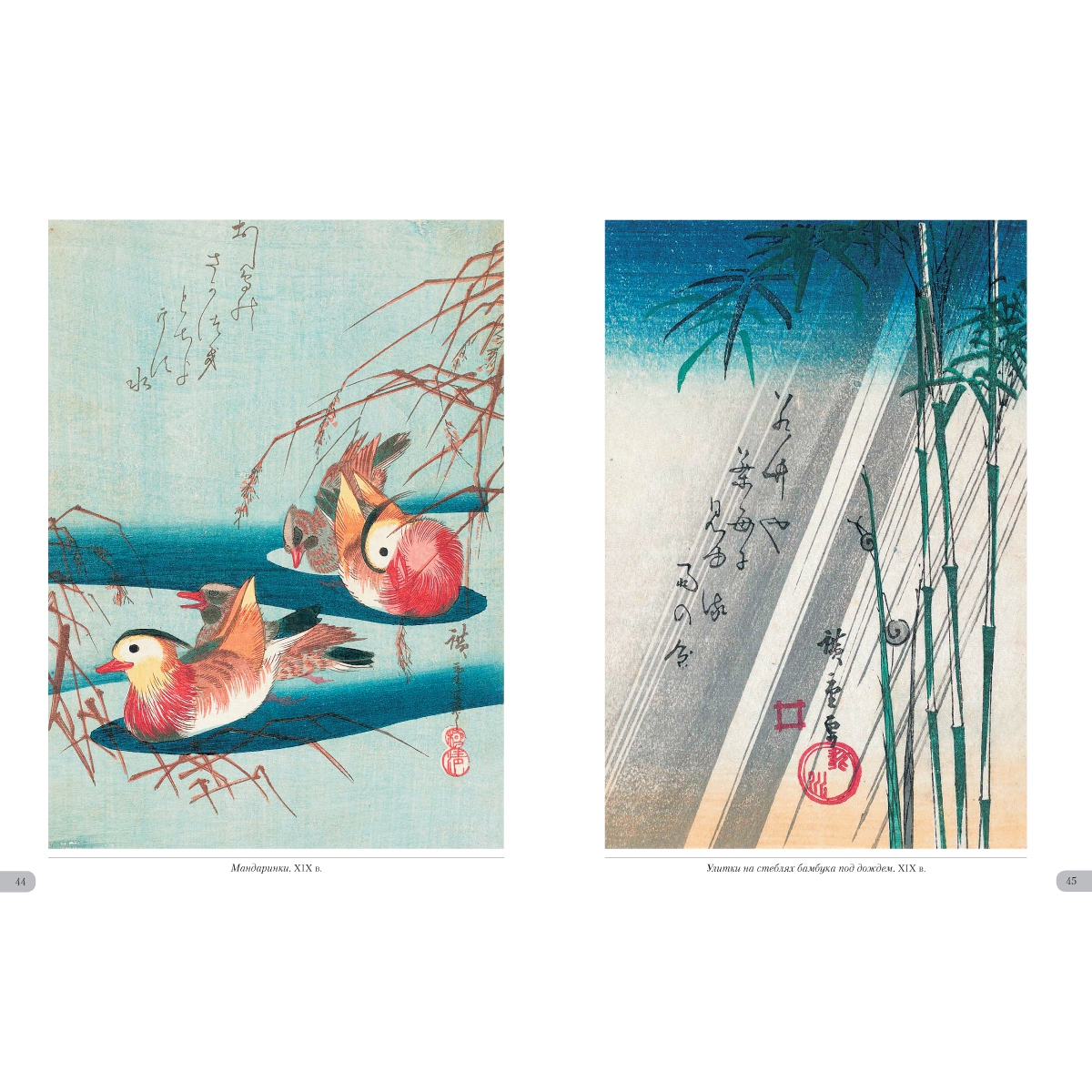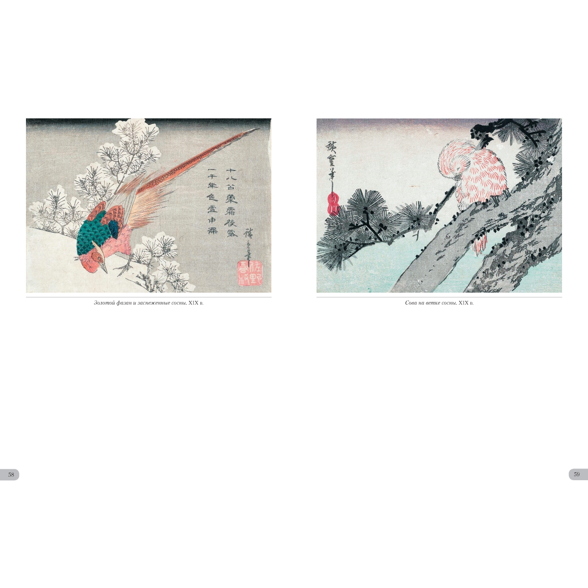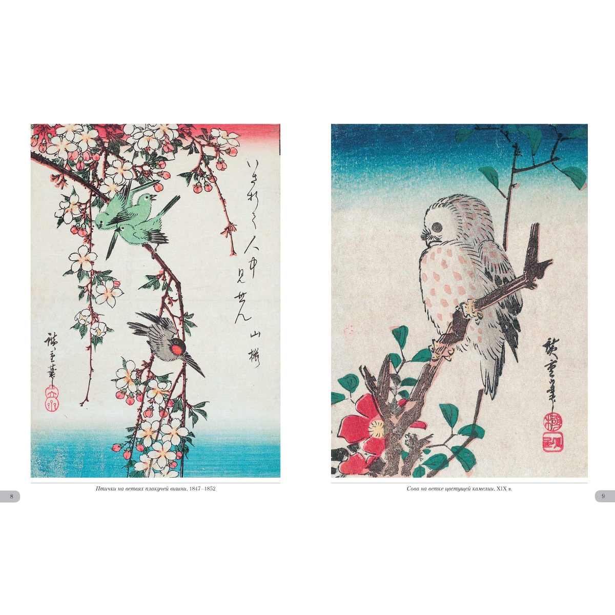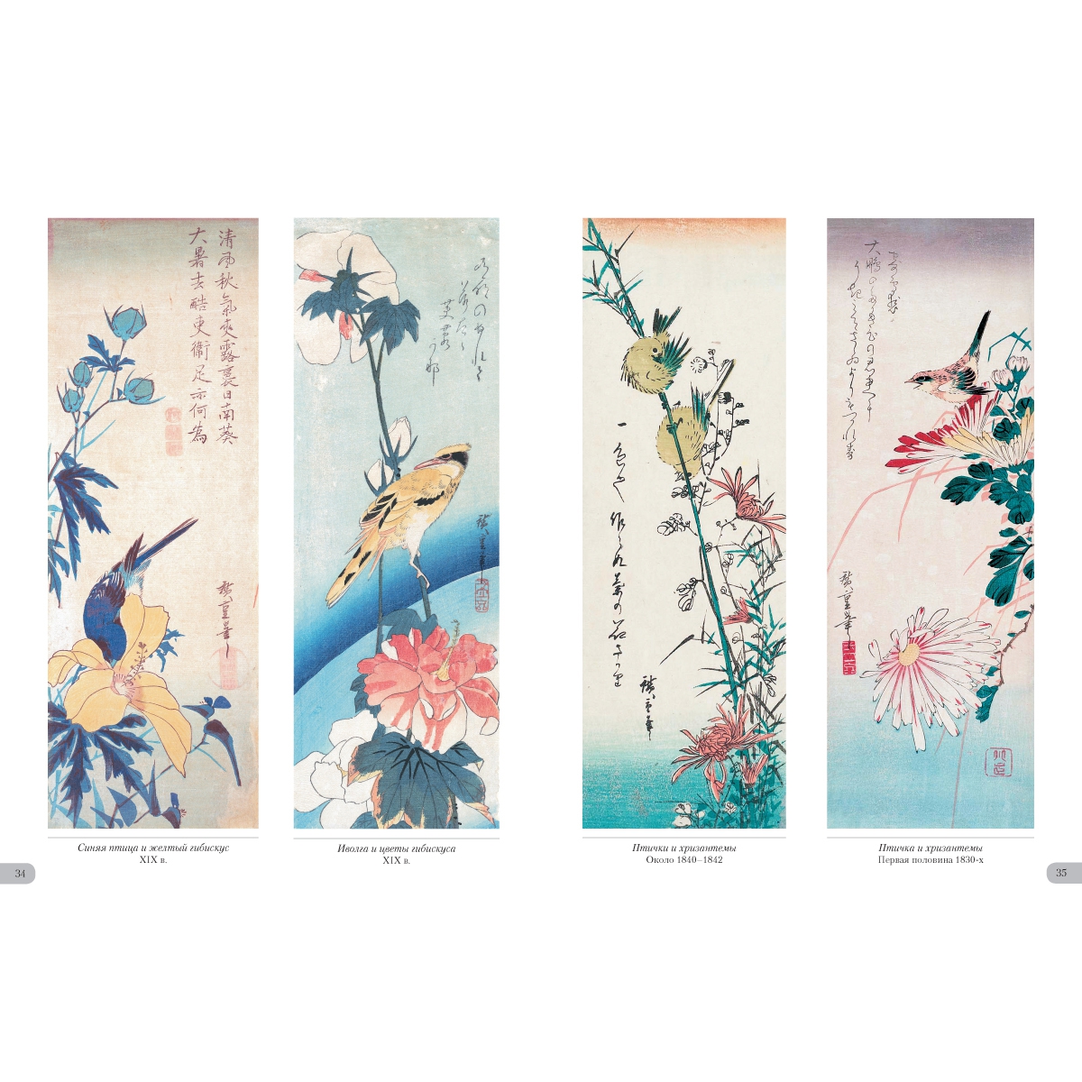 УКАЗАТЕЛЬ ПРОИЗВЕДЕНИЙ Бабочка и хризантема. XIX в. 36 Бекас и частуха. XIX в. 26 Белая цапля и ирисы. XIX в. 33 Белые мыши и волшебный молоток 2 Воробей на побеге бамбука. Вторая половина 1830х 41 Воробьи и заснеженный бамбук. XIX в. 57 Воробьи и камелия под снегом. XIX в. 4 Гвоздика. Около 1836 31 Гуси на фоне полной луны. Первая половина 1830x 49 Длиннохвостая синица на побегах плюща. Около 1835 48 Журавль и астры. XIX в. 22 Журавль, пролетающий над волнами. XIX в. 52 Журавль. Около 1831–1833 47 Золотой фазан и заснеженные сосны. XIX в. 58 Иволга и цветы гибискуса. XIX в. 34 Канарейка, ласточки и цветущая глициния. 1847–1852 25 Керрия и лягушки. Около 1832 32 Колокольчики и ласточка. Около 1833 21 Кряквы и камыши. Около 1843 60 Ласточки, зимородок и цветы пиона. Около 1838 20 Майна на ветке цветущей аронии. XIX в. 7 Мандаринка под снегом. 1847–1852 51 Мандаринки и заснеженный бамбук. 1840–1844 53 Мандаринки под снегом. 1854 50 Мандаринки. XIX в. 44 Обезьянка и ветка клена. XIX в. 39 Павлин на клене. Около 1833 48 Перепелки и цветы мака. Около 1835 30 Петух, зонтик и ипомеи. Около 1830 28 Попугай на ветке цветущей сливы. XIX в. 6 Птица и цветы махровой вишни. XIX в. 19 Птичка и хризантемы. XIX в. 40 Птичка и хризантемы. Первая половина 1830х 35 Птичка и цветущий ирис. XIX в. 30 Птичка и цветы махровой вишни. XIX в. 5 Птичка на ветке глицинии. Около 1835 23 Птичка на ветке камелии. XIX в. 17 Птичка на ветке керрии. 1854 16 Птичка на ветке цветущей сливы. XIX в. 14 Птичка на цветке желтого гибискуса. XIX в. 3 Птички и хризантемы. Около 1840–1842 35 Птички на ветвях плакучей вишни. 1847–1852 8 Птички на ветке цветущей камелии. XIX в. 13 Рисовка на цветке клематиса. Около 1835–1839 29 Рыбки, утка и леспедеца. Вторая половина 1830х 27 Синяя птица и желтый гибискус. XIX в. 34 Синяя птица на ветке шиповника. XIX в. 15 Сова на ветке клена. XIX в. 37 Сова на ветке сосны. XIX в. 59 Сова на ветке цветущей камелии. XIX в. 9 Сова на сосне. Середина 1830х 56 Сокол на ветке сосны, увитой плющом. XIX в. 49 Сокол на ветке сосны. 1852 42 Сокол на сосне, покрытой снегом. 1840–1842 60 Сокол на сосне. Середина 1830х 46 Сокол, воробей и нарциссы. Середина 1830х 10 Сорока и цветы азалии. XIX в. 11 Трясогузка и цветущая частуха. XIX в. 31 Улитки на стеблях бамбука под дождем. XIX в. 45 Фазан на заснеженной сосне. XIX в. 54 Фазан на заснеженной сосне. XIX в. 55 Фазан на заснеженном склоне. XIX в. 61 Фазан на заснеженном склоне. Около 1840 62 Хризантемы и белоглазка. XIX в. 38 Хризантемы. 1843–1847 43 Цапли среди ирисов. Около 1837 24 Цветущая вишня. XIX в. 18 Цветущая слива. 1842–1843 12