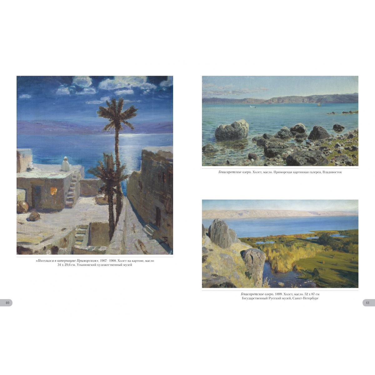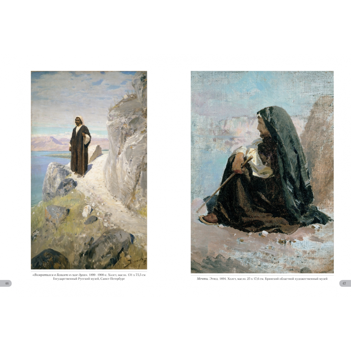- Список художников и их полотен или именной указатель (если есть) УКАЗАТЕЛЬ ПРОИЗВЕДЕНИЙ «Возвратился в Галилею в силе духа». 1890–1900е 46 «Поселился в капернауме Приморском». 1907–1908 40 Был в пустыне. 1909 53 В Назарете. 1882 24–25 В Палестине. 1899 7 Возвестила радость плачущим. 1899–1909 68–69 Воскрешение дочери Иаира. 1870–1871 28 Воскрешение дочери Иаира. 1871 30–31 Генисаретское озеро 41 Генисаретское озеро. 1880е 38–39 Генисаретское озеро. 1899 41 Голгофа 66 Голгофа («Стояли в дали») 64–65 Голова фарисея. Этюд. 1884 59 Дорога в Назарет 8 Дочь Пилата 67 За кого Меня почитают люди. 1900 55 И был там. 1890–1900е 26 Иерихонский поток. 1882 5 Иерусалим с западной стороны. Яффские ворота и цитадель. Этюд. 1882 6–7 Избиение первенцев египетских. 1865 4 Иоанн и Иаков. 1900е 27 Исполнялся премудрости. 1896–1909 9 Кана. 1883 23 Левий Матфей. 1900е 52 Марфа приняла Его в дом свой. 1890–1900е 60 Мертвое море. 1882 5 Мечты (На горе). 1890–1900е 48 Мечты. 1894 49 Мечты. Этюд. 1894 47 На Тивериадском (Генисаретском) озере. 1888 44–45 Отречение Петра 66 Палестина. Нагорная проповедь. 1890–1909 22 Палестинский пейзаж. 1880е 42 Палестинский этюд. Камни на Генисаретском озере. 1887 37 Повинен в смерти. 1906 62–63 Пошла в Нагорную страну. 1894 35 Пределы Тирские. 1911 55 Привели детей. 1890–1900е 54 Сидящий Христос. Этюд. 1888 58 Среди учителей. 1896 10–11 Среди учителей. Эскиз. 1890–1900е 9 Сцена в храме 54 Тайная вечеря 61 Тивериада. 1882 6 Тивериадское (Генисаретское) озеро. 1881–1882 43 Тивериадское озеро 43 У подножия горы 23 Учитель, где Ты живешь? 1900–1910е 53 Христос в Гефсиманском саду. 1890–1900е 61 Христос и грешница (Кто без греха?). 1888 56–57 Христос и Мария Магдалина 34 Христос на берегу Генисаретского озера. 1890е 36–37 Христос на Генисаретском озере. 1910е 27 Христос Спаситель 70