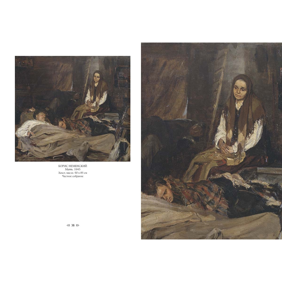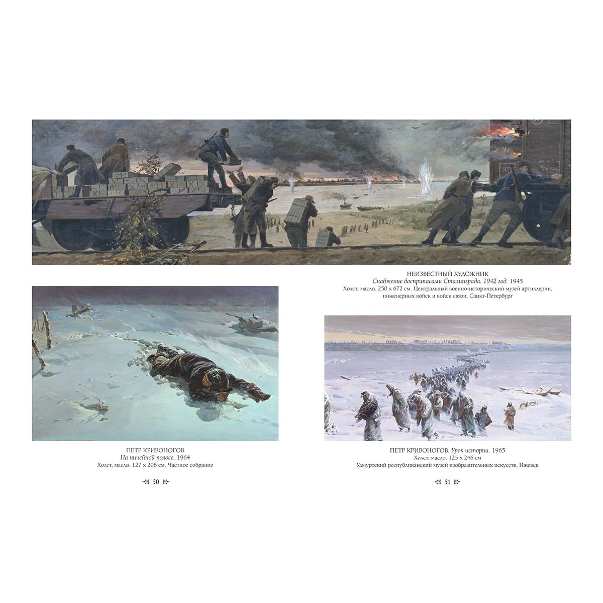 СПИСОК ИЛЛЮСТРАЦИЙ: ГАВРИЛОВ, ВЛАДИМИР За родную землю 7 ГЕРАСИМОВ, АЛЕКСАНДР Тегеранская конференция руководителей трех держав. 1945 68–69 ГЕРАСИМОВ, СЕРГЕЙ Мать партизана. 1943 41 ГОЛОВАНОВ, ЛЕОНИД Дойдем до Берлина! Плакат. 1944 80 За честь жены, за жизнь детей, за счастье родины своей, за наши нивы и луга – убей захватчика-врага! Плакат. 1942 44 Красной Армии – слава! Плакат. 1945 98 ГОРСКИЙ, АНДРЕЙ Без вести пропавший. 1946 год. 1962 109 ДЕЙНЕКА, АЛЕКСАНДР Оборона Севастополя. 1942 34 Окраина Москвы. Ноябрь 1941. 1941 20 Сбитый ас. 1943 60 Перед наступлением. 1943 31 ЖУКОВ, НИКОЛАЙ Бей насмерть! Плакат. 1942 45 Минута молчания. 1943 3 Отстоим Москву! Плакат. 1941 17 КЛИМАШИН, ВИКТОР Отстоим Москву! Плакат. 1941 17 Стой. И ты победишь! Плакат. 1941 22 КОСТЕЦКИЙ, ВЛАДИМИР Возвращение. 1945–1947 107 КРИВОНОГОВ, ПЕТР «Будьте прокляты!». 1942 6 Брест. 1941 год. 1959 9 В районе Корсунь-Шевченковский. 1944 75 За Родину. 1942 30 Защитники Брестской крепости. 1950-е 14 Защитники Брестской крепости. 1951 10–11 Зверства немцев в Речицах. 1942 32 Капитуляция Берлина. 1946 99 Комиссар Брестской крепости. Эскиз. 1950 15 Корсунь-Шевченковское побоище. 1944 75 На Курской дуге. 1949 64–65 На ничейной полосе. 1964 50 Не забудем, не простим! 1942–1943 55 Немцы пришли. Эскиз. 1943 8 Победа. 1948 96–97 Поединок. 1964 62 Проклятие и смерть гитлеровским мерзавцам! Плакат. 1942 54 Рейд конников Доватора. 1942 26 Рейхстаг. Этюд. 1945 94 Советская конница в боях под Москвой. 1949 27 Урок истории. 1965 51 Штурм Рейхстага. 1966 93 КУГАЧ, МИХАИЛ Возвращение. 2002 110 Встреча в пути. 1990 66–67 После победы. 2002 104–105 Прощание. 2002 5 КУРГУЗОВА-МИРОШНИК, НАТАЛЬЯ Дети войны. 1983–1989 33 Моцарт. 2007 90 МАЛЬЦЕВ, ПЕТР Адмирал Николай Герасимович Кузнецов. 1942 25 Штурм Сапун-горы. 1958 81 МИРОШНИК, КОНСТАНТИН Дети войны. 1983–1989 33 Моцарт. 2007 90 МИХАЙЛОВ, АЛЕКСЕЙ Пленные немцы в Москве. Июнь 1944 года. 1979 86 МОИСЕЕНКО, ЕВСЕЙ Победа. 1970–1972 95 НЕИЗВЕСТНЫЙ ХУДОЖНИК Ладожская ледовая трасса. 1945 24 Снабжение боеприпасами Сталинграда. 1942 год. 1945 50–51 Форсирование реки Висла 25-м гвардейским инж-саперным батальоном 31 июля 1944 года в районе Кемика-Хотеска. 1944 89 НЕМЕНСКИЙ, БОРИС Горящий Берлин. 27 апреля 1945 года. 1945 92 Дыхание весны. 1955 73 Дыхание весны. Вариант картины. 1955 74 Земля опаленная. 1957 56 Мать. 1945 38 Машенька. 1956 59 Машенька. Этюд 58 О далеких и близких. 1950 84–85 Последнее письмо. 1975 106 НЕПРИНЦЕВ, ЮРИЙ «Пей, сынок, пей!». 1957 63 Вот солдаты идут. 1970. Фрагмент 46–47 Отдых после боя. 1955 70–71 Трамвай идет на фронт. 1961 23 ПИМЕНОВ, ЮРИЙ Весна 1945 года 88 Военный хлеб. Москва 1941. 1972–1973 21 САМОХВАЛОВ, АЛЕКСАНДР Сталинградцы. 1947 49 СЕРОВ, ВЛАДИМИР Балтийский десант. 1942 16 ТОИДЗЕ, ИРАКЛИЙ Освободим Европу от цепей фашистского рабства! Плакат. 1945 87 Родина-мать зовет! Плакат. 1941 4 ХМЕЛЬКО, МИХАИЛ «За великий русский народ!». 1947–1949 102–103 Триумф победившей Родины. 1949 100–101 ЮОН, КОНСТАНТИН Парад на Красной площади в Москве 7 ноября 1941 года. 1949 18–19