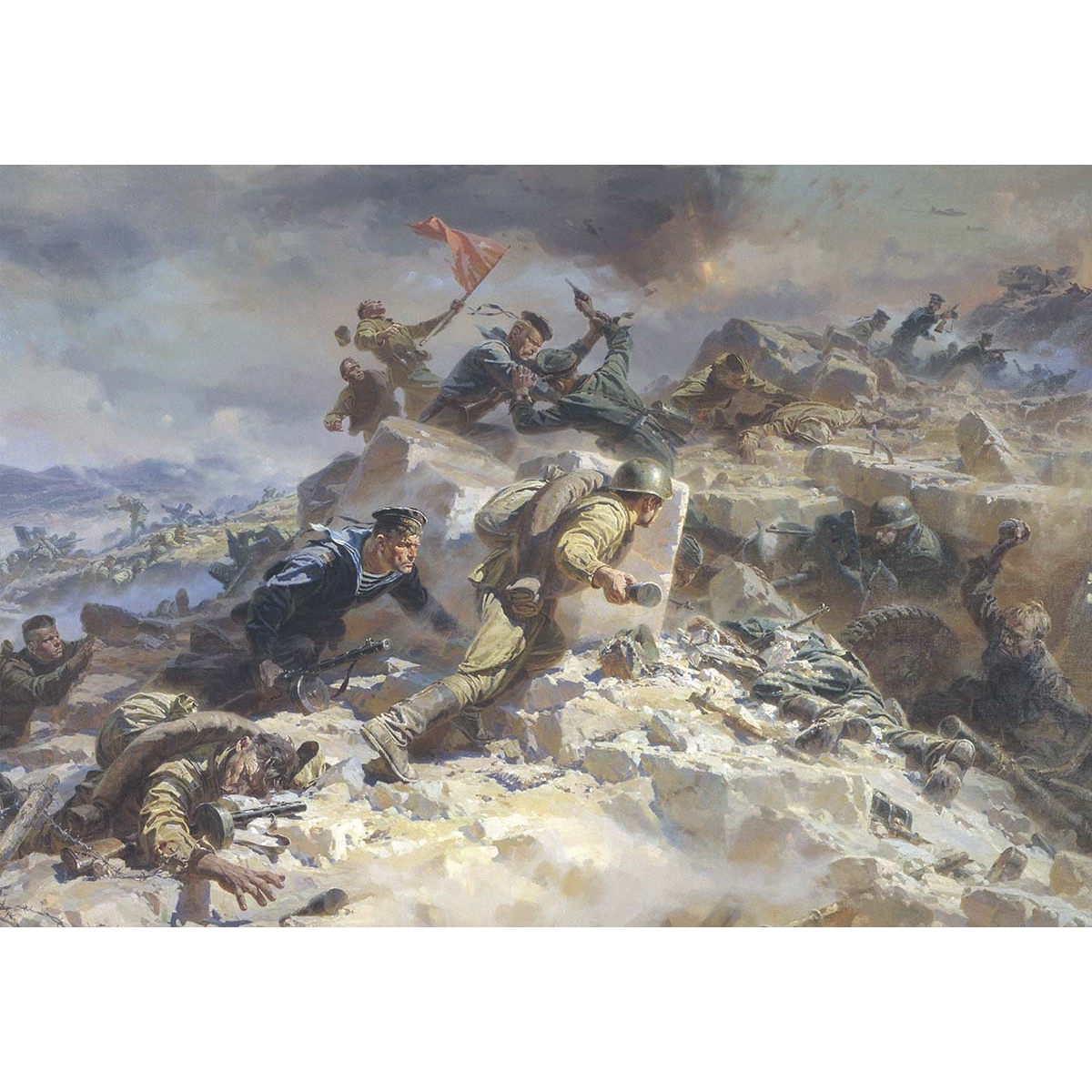 СПИСОК ИЛЛЮСТРАЦИЙ: ГАВРИЛОВ, ВЛАДИМИР За родную землю 7 ГЕРАСИМОВ, АЛЕКСАНДР Тегеранская конференция руководителей трех держав. 1945 68–69 ГЕРАСИМОВ, СЕРГЕЙ Мать партизана. 1943 41 ГОЛОВАНОВ, ЛЕОНИД Дойдем до Берлина! Плакат. 1944 80 За честь жены, за жизнь детей, за счастье родины своей, за наши нивы и луга – убей захватчика-врага! Плакат. 1942 44 Красной Армии – слава! Плакат. 1945 98 ГОРСКИЙ, АНДРЕЙ Без вести пропавший. 1946 год. 1962 109 ДЕЙНЕКА, АЛЕКСАНДР Оборона Севастополя. 1942 34 Окраина Москвы. Ноябрь 1941. 1941 20 Сбитый ас. 1943 60 Перед наступлением. 1943 31 ЖУКОВ, НИКОЛАЙ Бей насмерть! Плакат. 1942 45 Минута молчания. 1943 3 Отстоим Москву! Плакат. 1941 17 КЛИМАШИН, ВИКТОР Отстоим Москву! Плакат. 1941 17 Стой. И ты победишь! Плакат. 1941 22 КОСТЕЦКИЙ, ВЛАДИМИР Возвращение. 1945–1947 107 КРИВОНОГОВ, ПЕТР «Будьте прокляты!». 1942 6 Брест. 1941 год. 1959 9 В районе Корсунь-Шевченковский. 1944 75 За Родину. 1942 30 Защитники Брестской крепости. 1950-е 14 Защитники Брестской крепости. 1951 10–11 Зверства немцев в Речицах. 1942 32 Капитуляция Берлина. 1946 99 Комиссар Брестской крепости. Эскиз. 1950 15 Корсунь-Шевченковское побоище. 1944 75 На Курской дуге. 1949 64–65 На ничейной полосе. 1964 50 Не забудем, не простим! 1942–1943 55 Немцы пришли. Эскиз. 1943 8 Победа. 1948 96–97 Поединок. 1964 62 Проклятие и смерть гитлеровским мерзавцам! Плакат. 1942 54 Рейд конников Доватора. 1942 26 Рейхстаг. Этюд. 1945 94 Советская конница в боях под Москвой. 1949 27 Урок истории. 1965 51 Штурм Рейхстага. 1966 93 КУГАЧ, МИХАИЛ Возвращение. 2002 110 Встреча в пути. 1990 66–67 После победы. 2002 104–105 Прощание. 2002 5 КУРГУЗОВА-МИРОШНИК, НАТАЛЬЯ Дети войны. 1983–1989 33 Моцарт. 2007 90 МАЛЬЦЕВ, ПЕТР Адмирал Николай Герасимович Кузнецов. 1942 25 Штурм Сапун-горы. 1958 81 МИРОШНИК, КОНСТАНТИН Дети войны. 1983–1989 33 Моцарт. 2007 90 МИХАЙЛОВ, АЛЕКСЕЙ Пленные немцы в Москве. Июнь 1944 года. 1979 86 МОИСЕЕНКО, ЕВСЕЙ Победа. 1970–1972 95 НЕИЗВЕСТНЫЙ ХУДОЖНИК Ладожская ледовая трасса. 1945 24 Снабжение боеприпасами Сталинграда. 1942 год. 1945 50–51 Форсирование реки Висла 25-м гвардейским инж-саперным батальоном 31 июля 1944 года в районе Кемика-Хотеска. 1944 89 НЕМЕНСКИЙ, БОРИС Горящий Берлин. 27 апреля 1945 года. 1945 92 Дыхание весны. 1955 73 Дыхание весны. Вариант картины. 1955 74 Земля опаленная. 1957 56 Мать. 1945 38 Машенька. 1956 59 Машенька. Этюд 58 О далеких и близких. 1950 84–85 Последнее письмо. 1975 106 НЕПРИНЦЕВ, ЮРИЙ «Пей, сынок, пей!». 1957 63 Вот солдаты идут. 1970. Фрагмент 46–47 Отдых после боя. 1955 70–71 Трамвай идет на фронт. 1961 23 ПИМЕНОВ, ЮРИЙ Весна 1945 года 88 Военный хлеб. Москва 1941. 1972–1973 21 САМОХВАЛОВ, АЛЕКСАНДР Сталинградцы. 1947 49 СЕРОВ, ВЛАДИМИР Балтийский десант. 1942 16 ТОИДЗЕ, ИРАКЛИЙ Освободим Европу от цепей фашистского рабства! Плакат. 1945 87 Родина-мать зовет! Плакат. 1941 4 ХМЕЛЬКО, МИХАИЛ «За великий русский народ!». 1947–1949 102–103 Триумф победившей Родины. 1949 100–101 ЮОН, КОНСТАНТИН Парад на Красной площади в Москве 7 ноября 1941 года. 1949 18–19 |