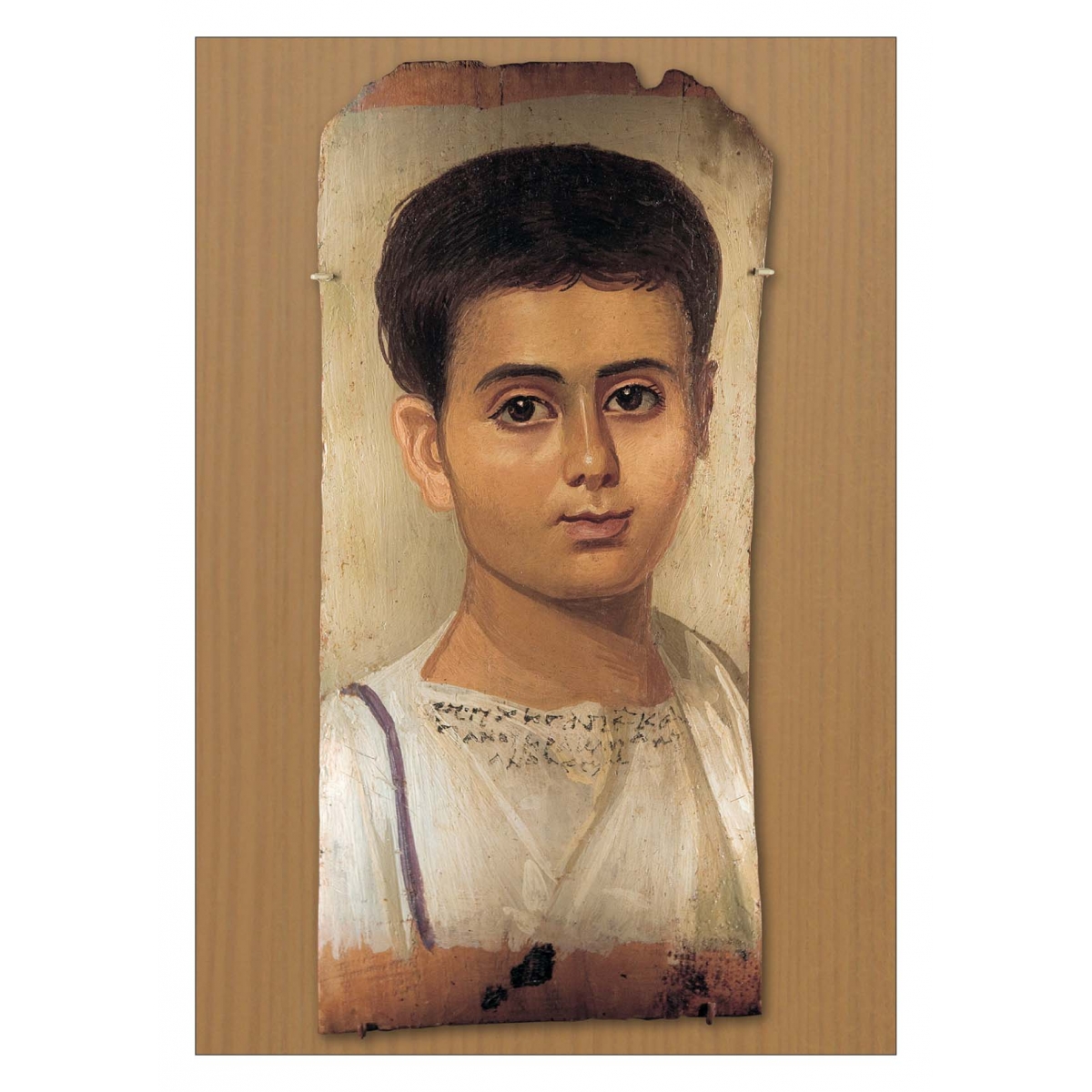 Список открыток, вошедших в набор: 1. Портрет юноши в золотом венке. II в. 2. Портрет молодой женщины 3. Портрет мужчины в золотом венке 4. Портрет молодой женщины в красном. Около 90–120 5. Портрет мальчика, подписанный Евтихий. Около 100–150 6. Портрет бородатого мужчины. Начало III в. 7. Женщина с сережками. Около 100–105 8. Mужчина с родинкой на носу. Около 130–150 9. Портрет молодой женщины в позолоченном венке. 120–140 10. Человек с узким лицом. Около 140–170 11. Аристократка. Около 150 12. Портрет юноши в золотом венке. Начало II в. На обложке: Портрет женщины из Антинаполиса. Около 100–117 |