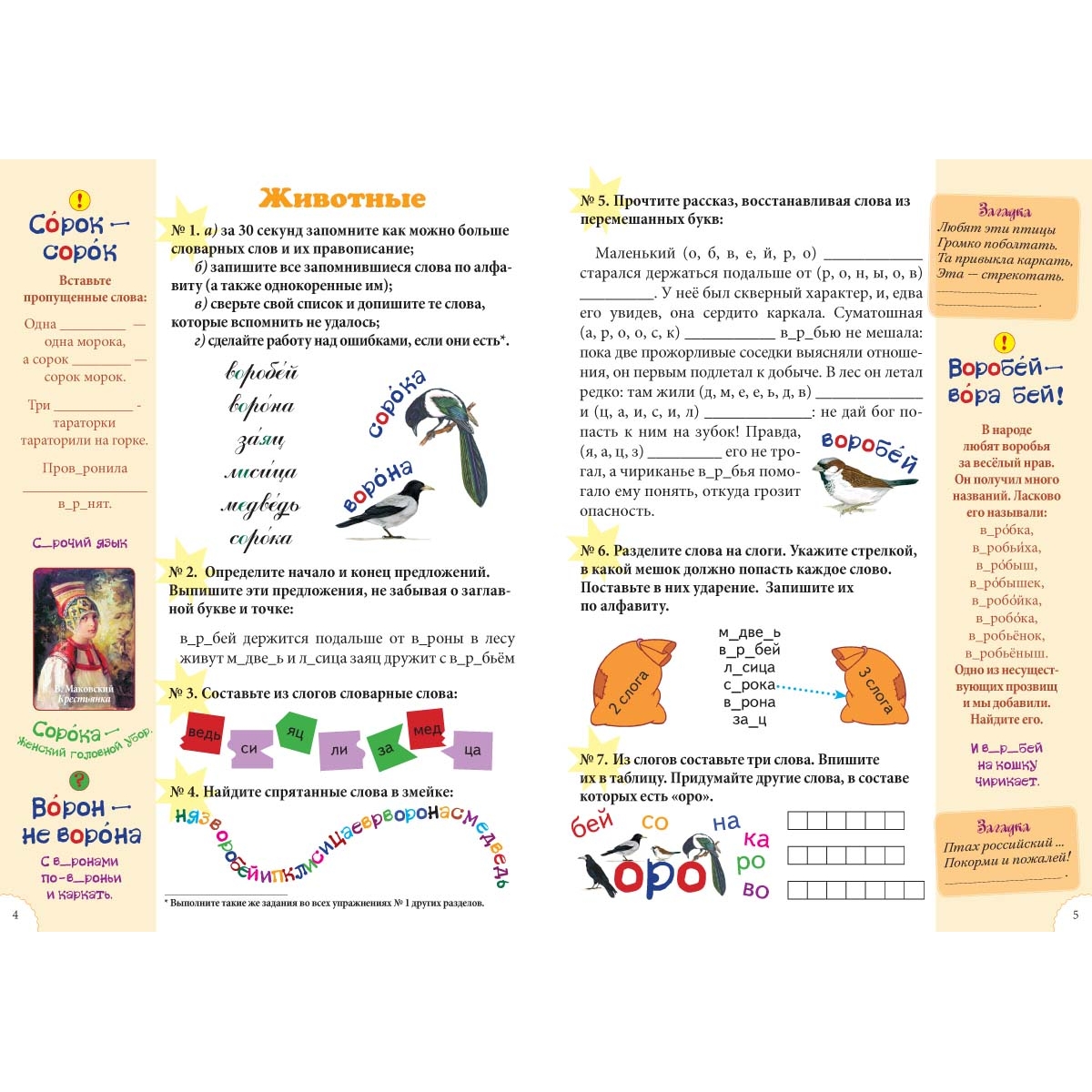 Учить словарные слова — работа, которая чаще всего не вызывает энтузиазма ни у учителей ни у учеников и порой воспринимается как рутина. Данное пособие поможет разнообразить словарную работу на уроках и дома. Материал, приведенный в нем, превратит непростую, и порой безрезультатную, работу в полезное и интересное занятие, расширит представления детей о русском языке. С помощью словарных слов дети узнают, что такое этимология, родственные и устаревшие слова, синонимы. Ну и, конечно, хорошо запомнят сами слова, их написание.